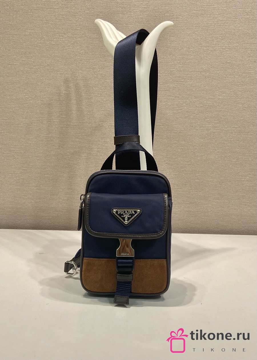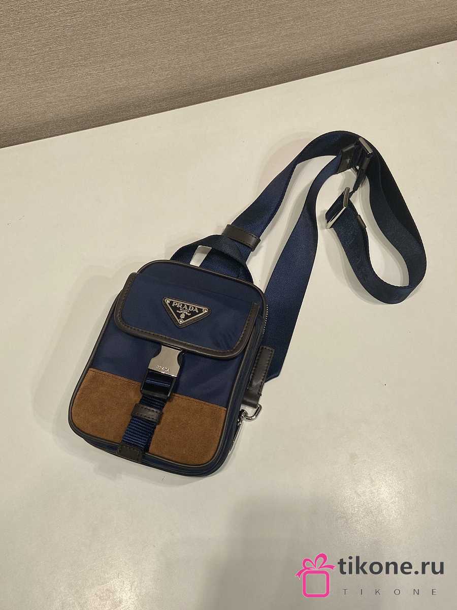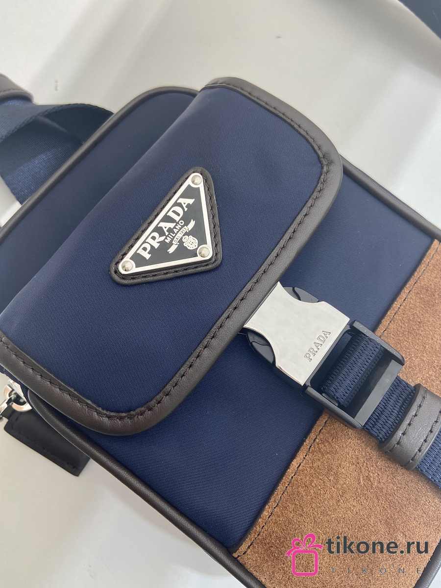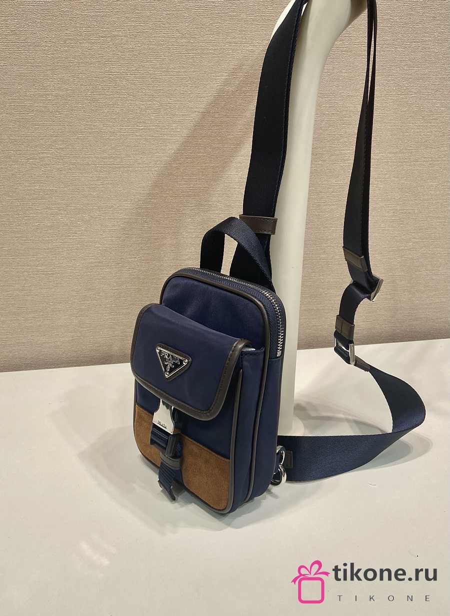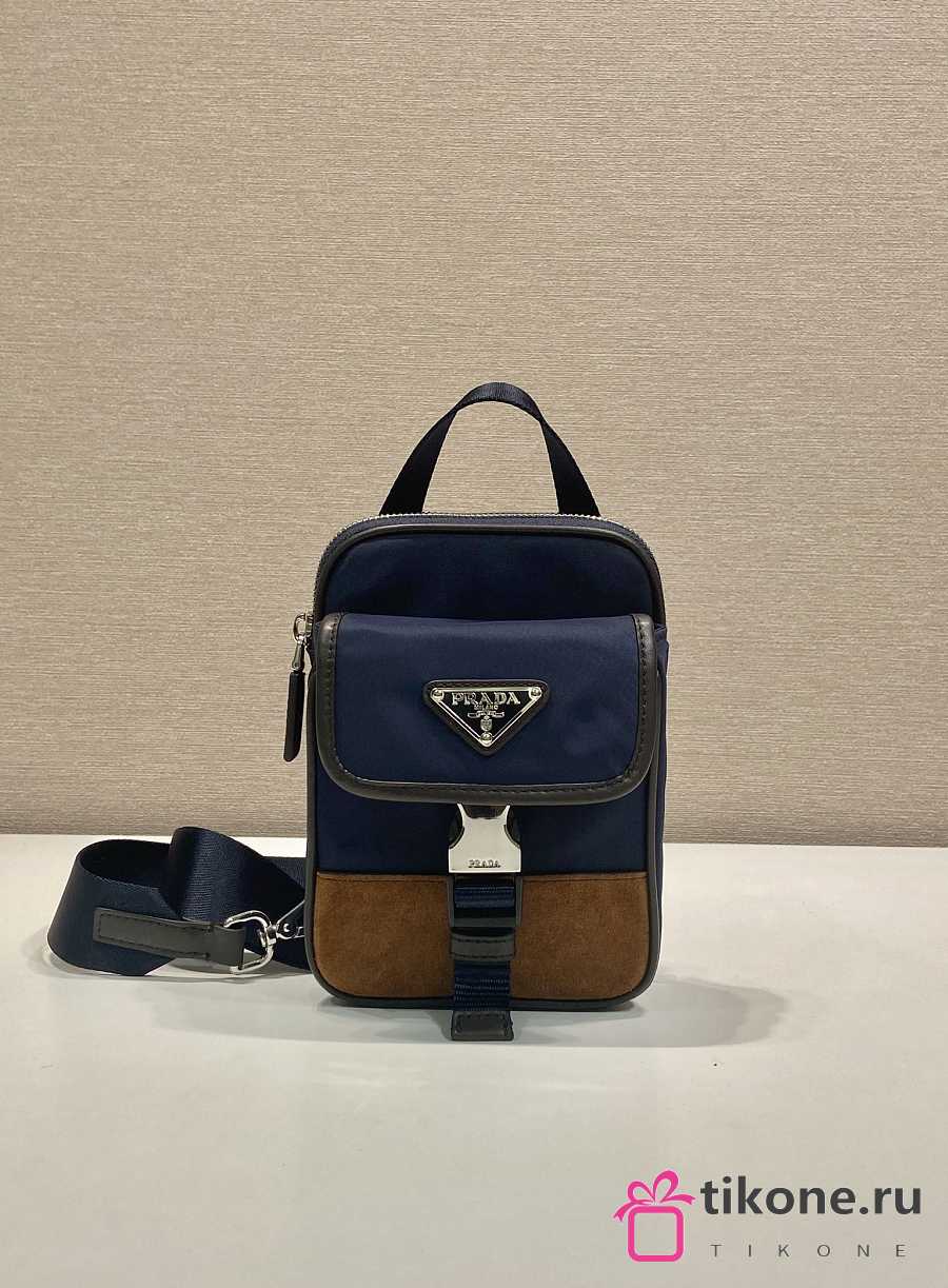 Prada Re-Nylon And Leather Smartphone Case Blue/Coffee 2ZH194 - 17x11.5x4.5cm