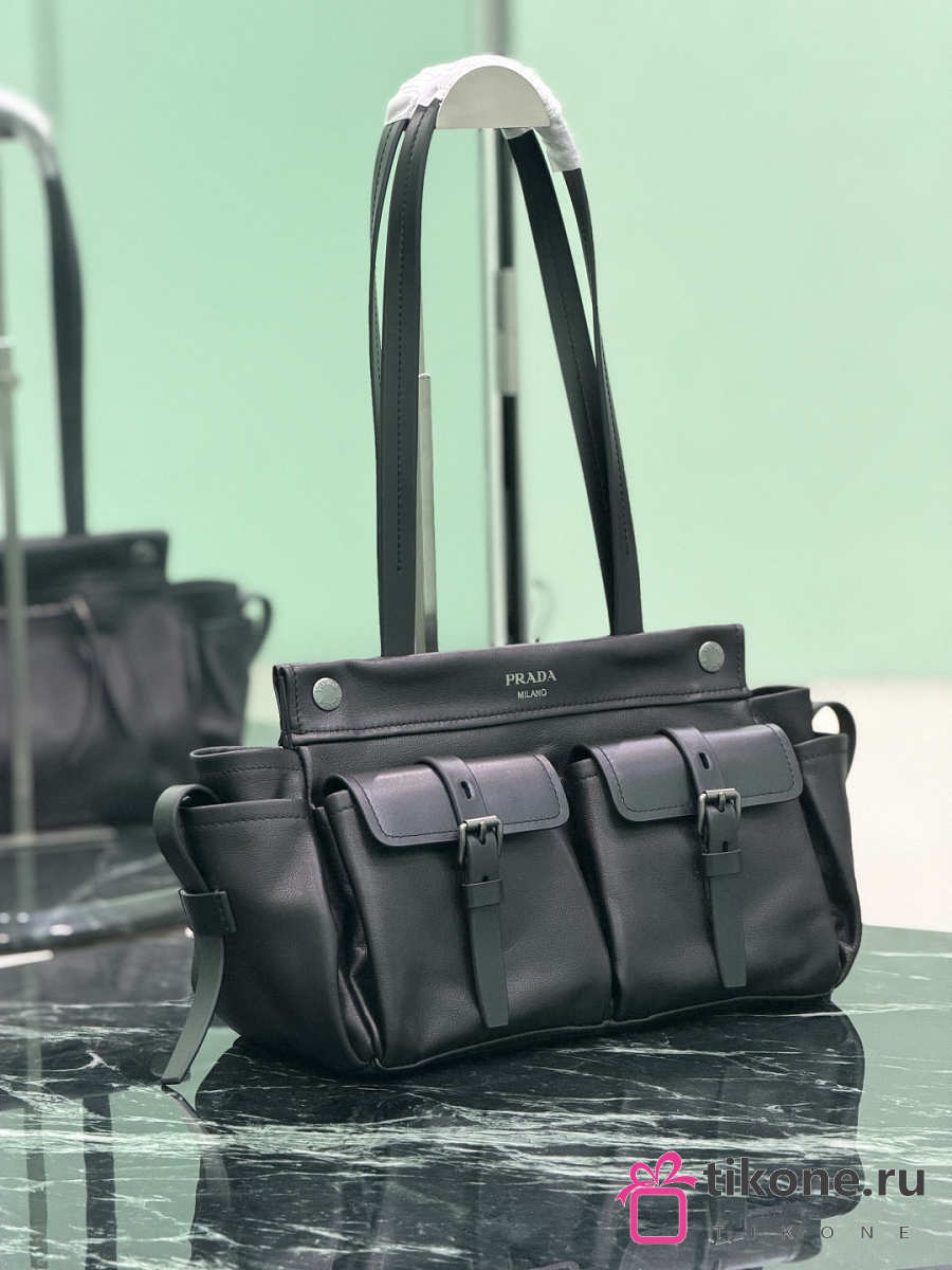 Prada Route Medium Leather Tote Bag Black 1BG645 - 30x22x15cm