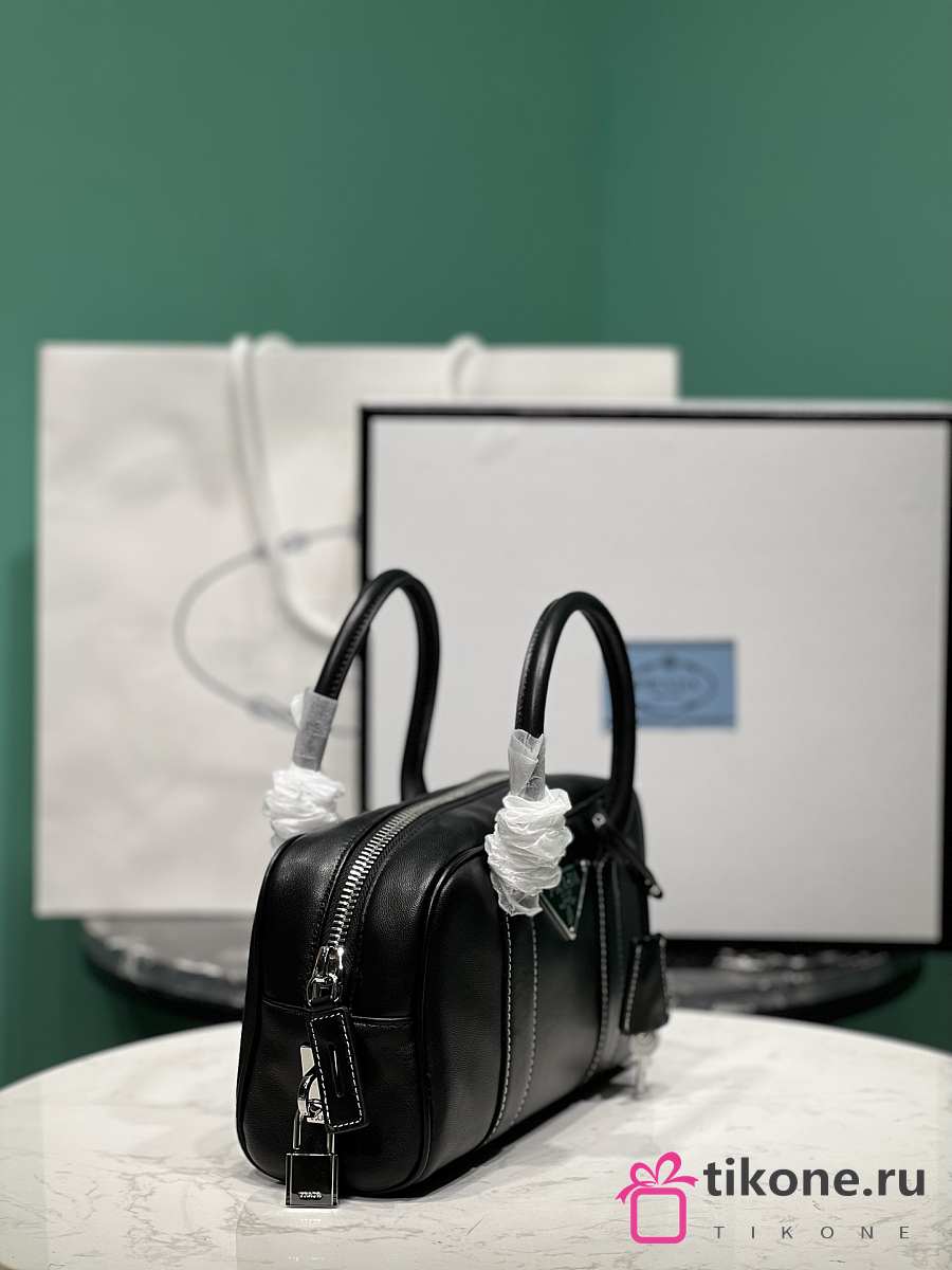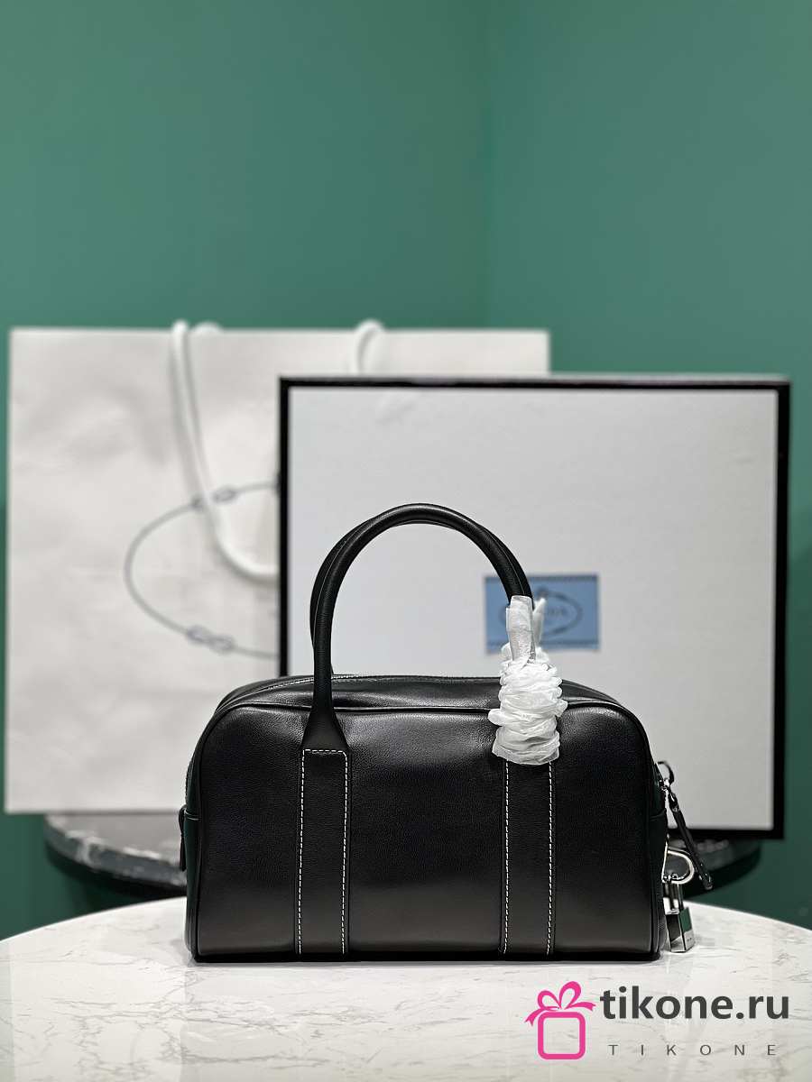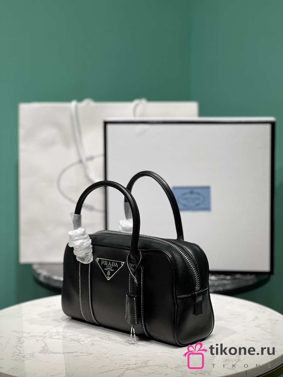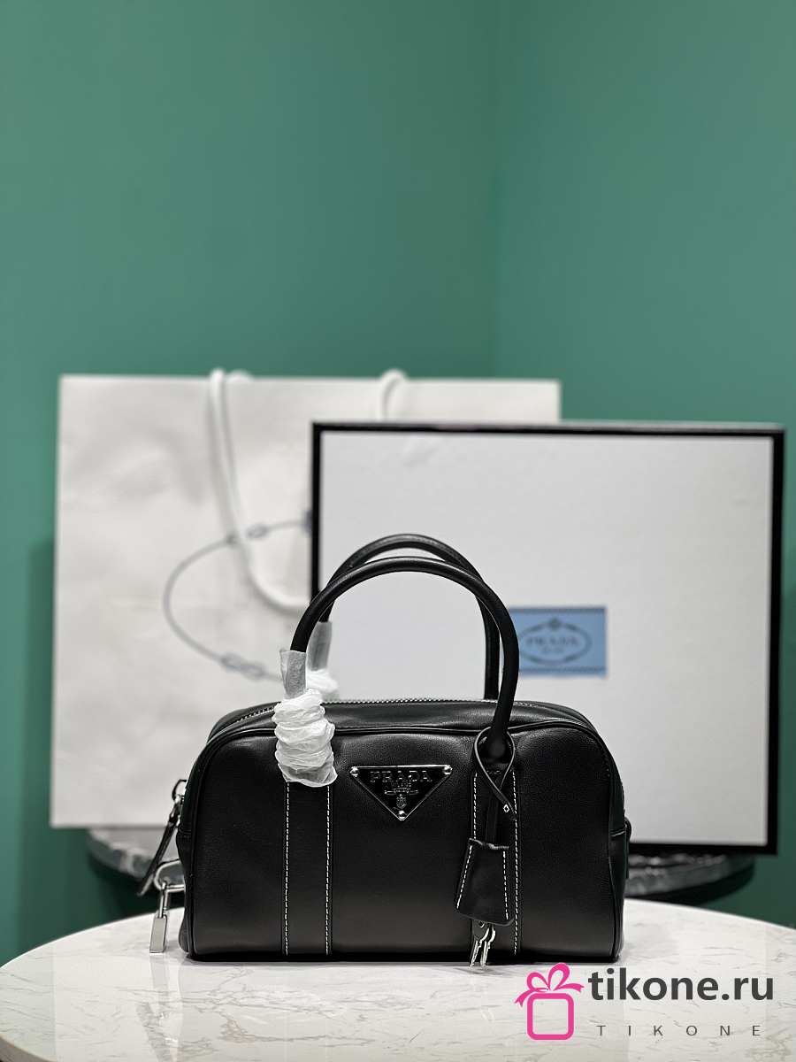 Prada Saffiano Leather Boston Bag Black with Contrast Stitching Black - 24x15x5cm