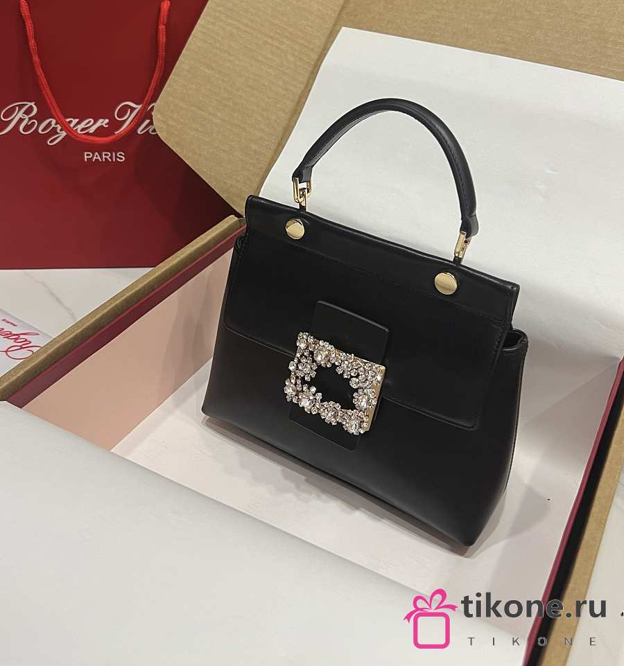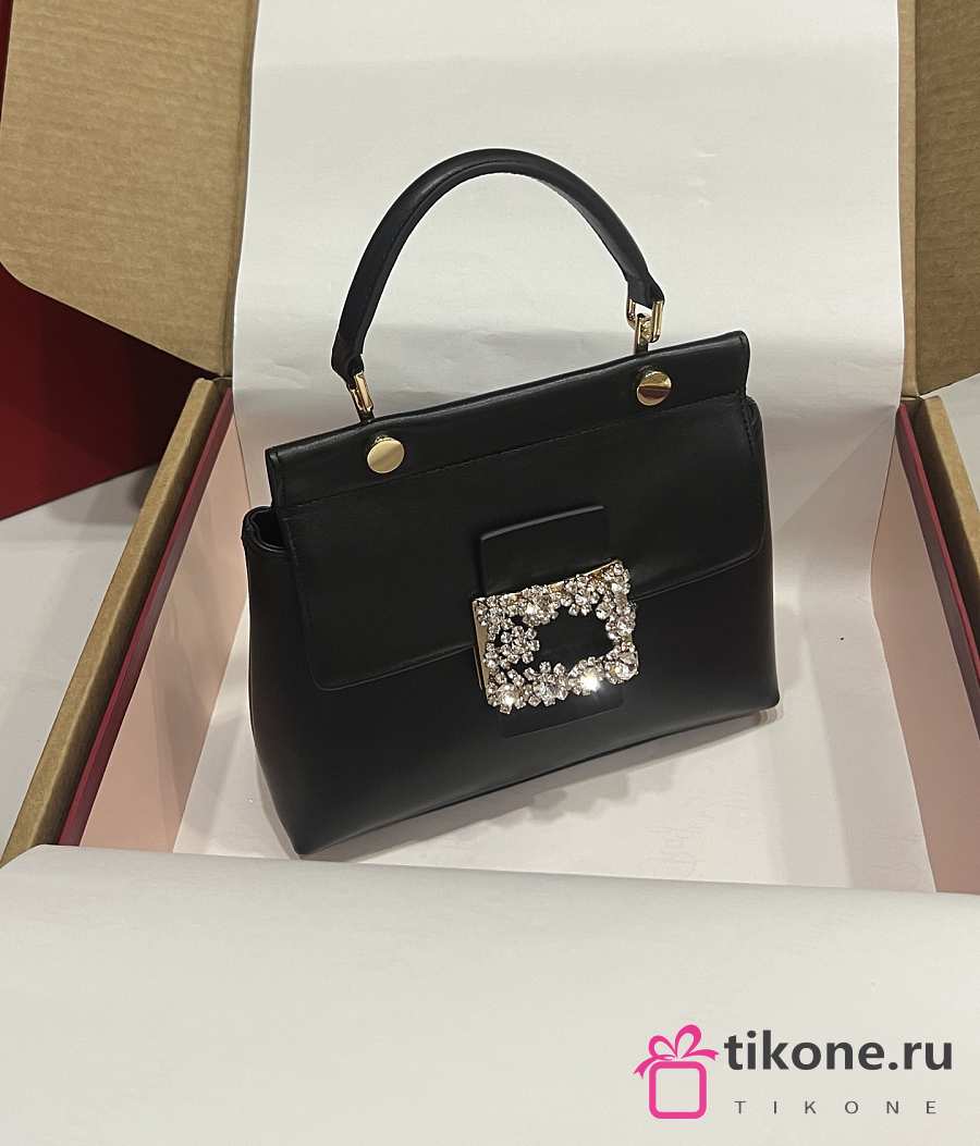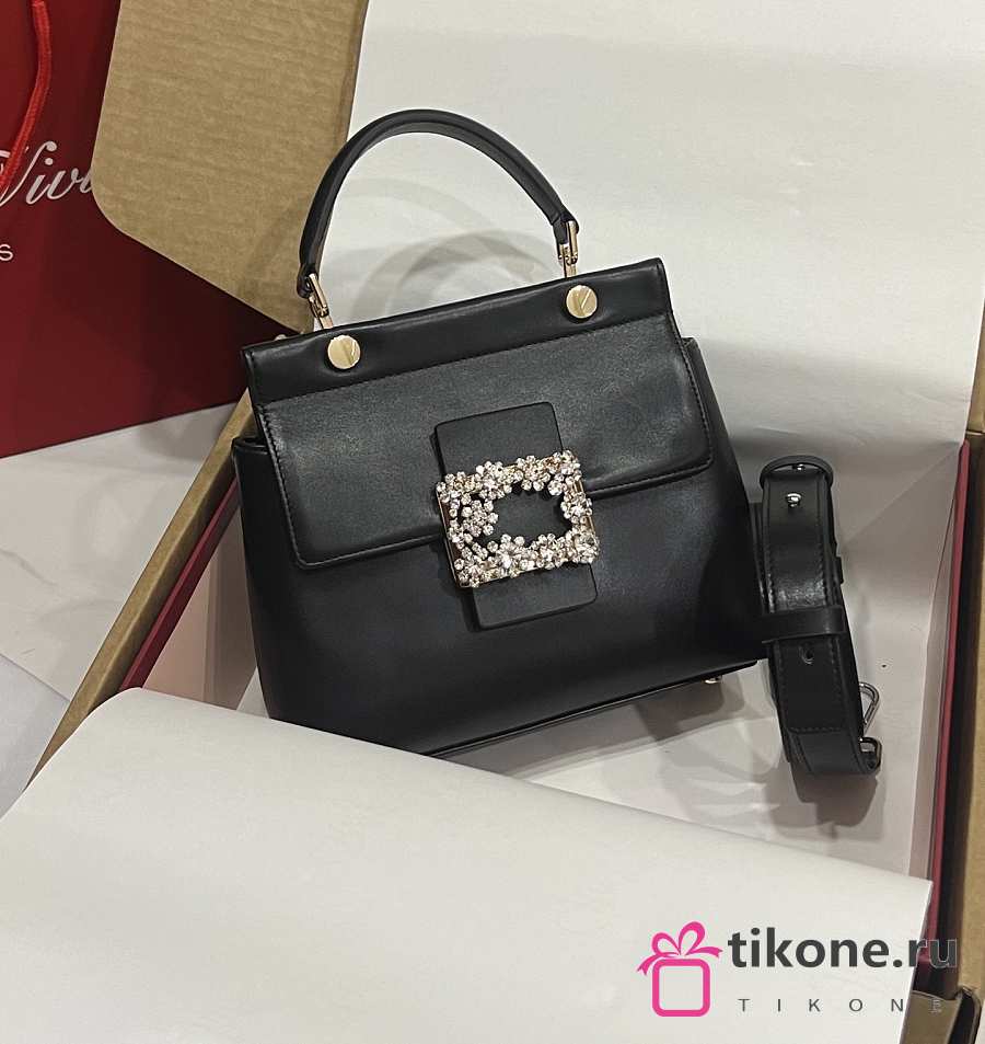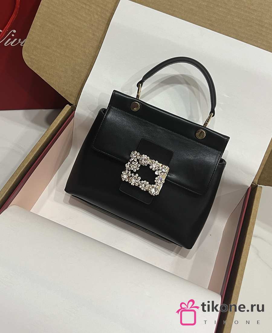 Roger Vivier Cabas Efflorescence Mini Bag in Leather Black - 21.5x17x8cm