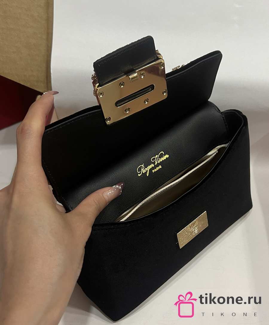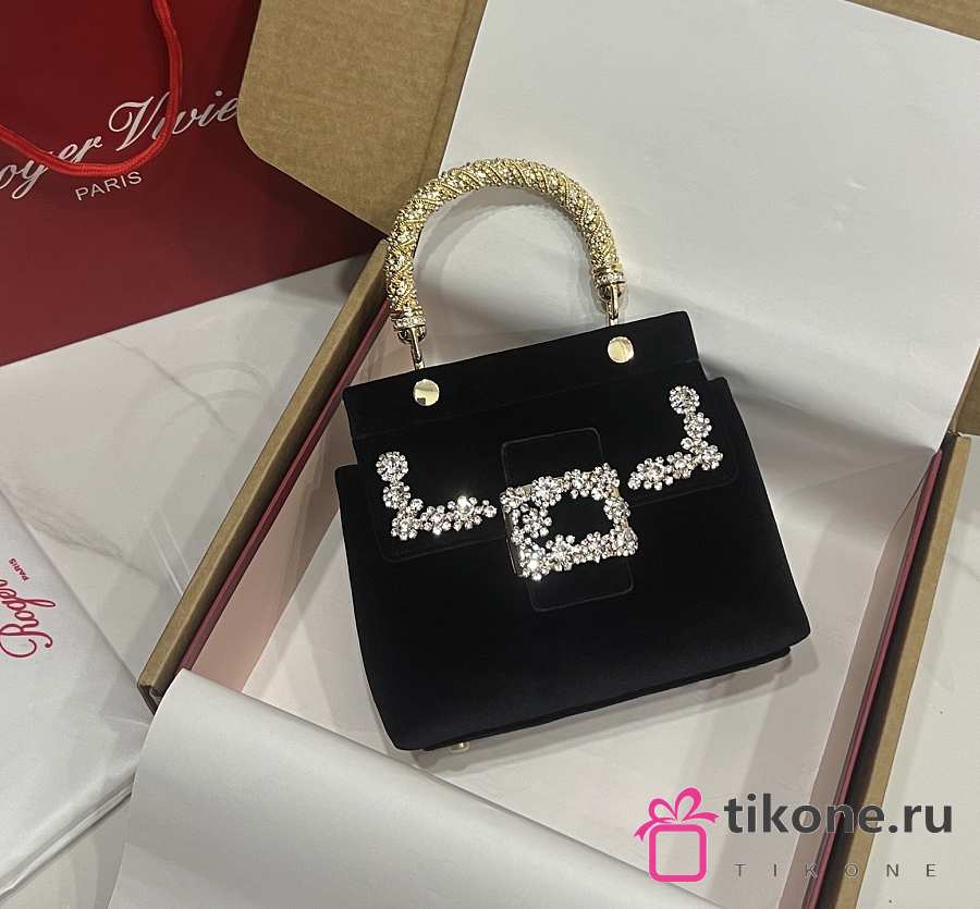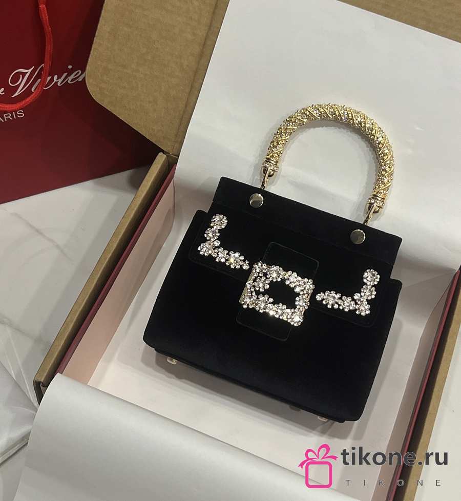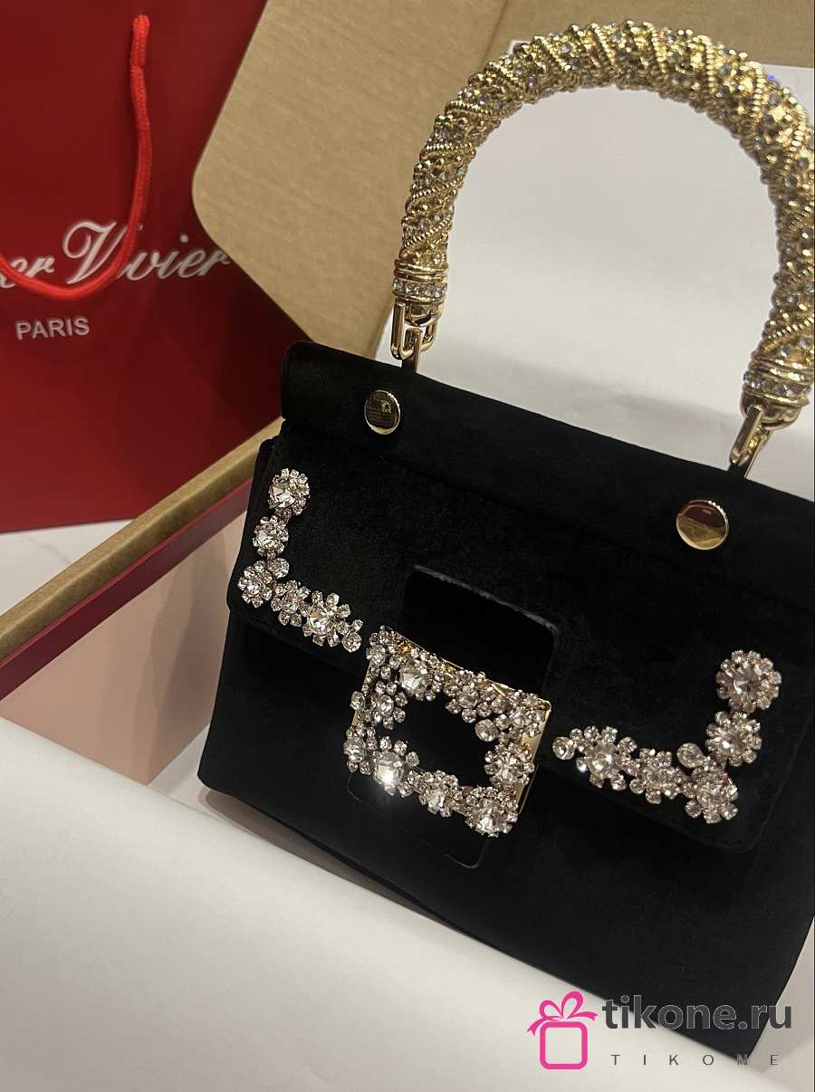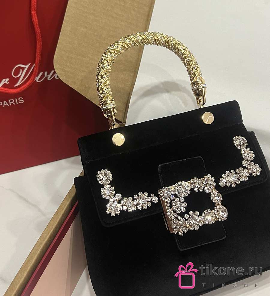 Roger Vivier Cabas Jewel Efflorescence Mini Bag in Velvet Black - 19x12x6cm