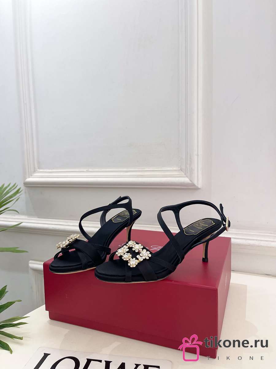 Roger Vivier Efflorescence Sandals In Satin Black 6.5cm