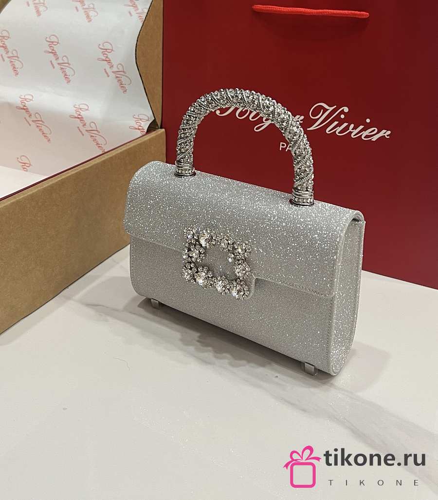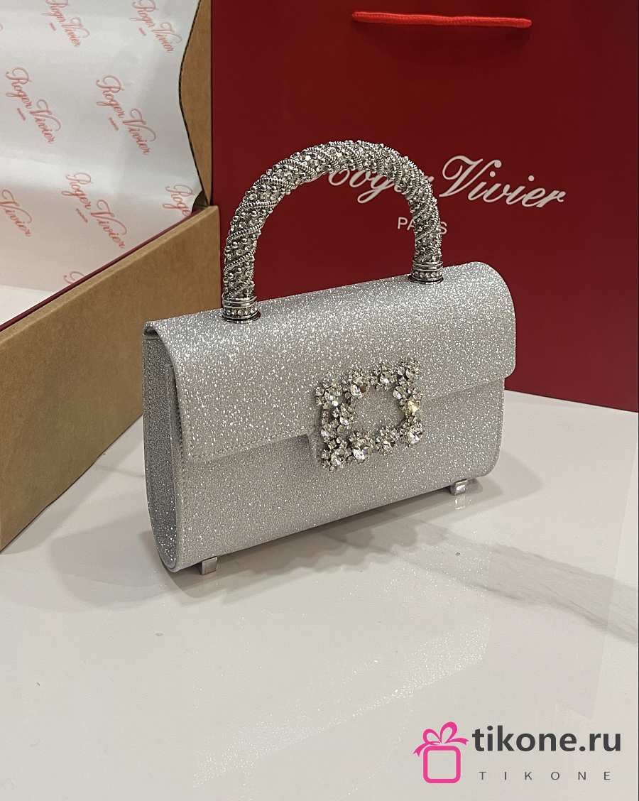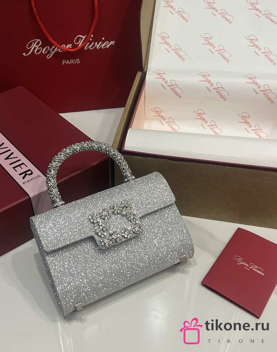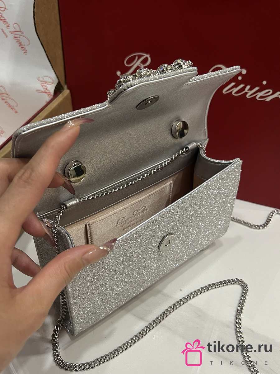 Roger Vivier Jewel Efflorescence Mini Bag in Glitter Silver - 19x12x6cm