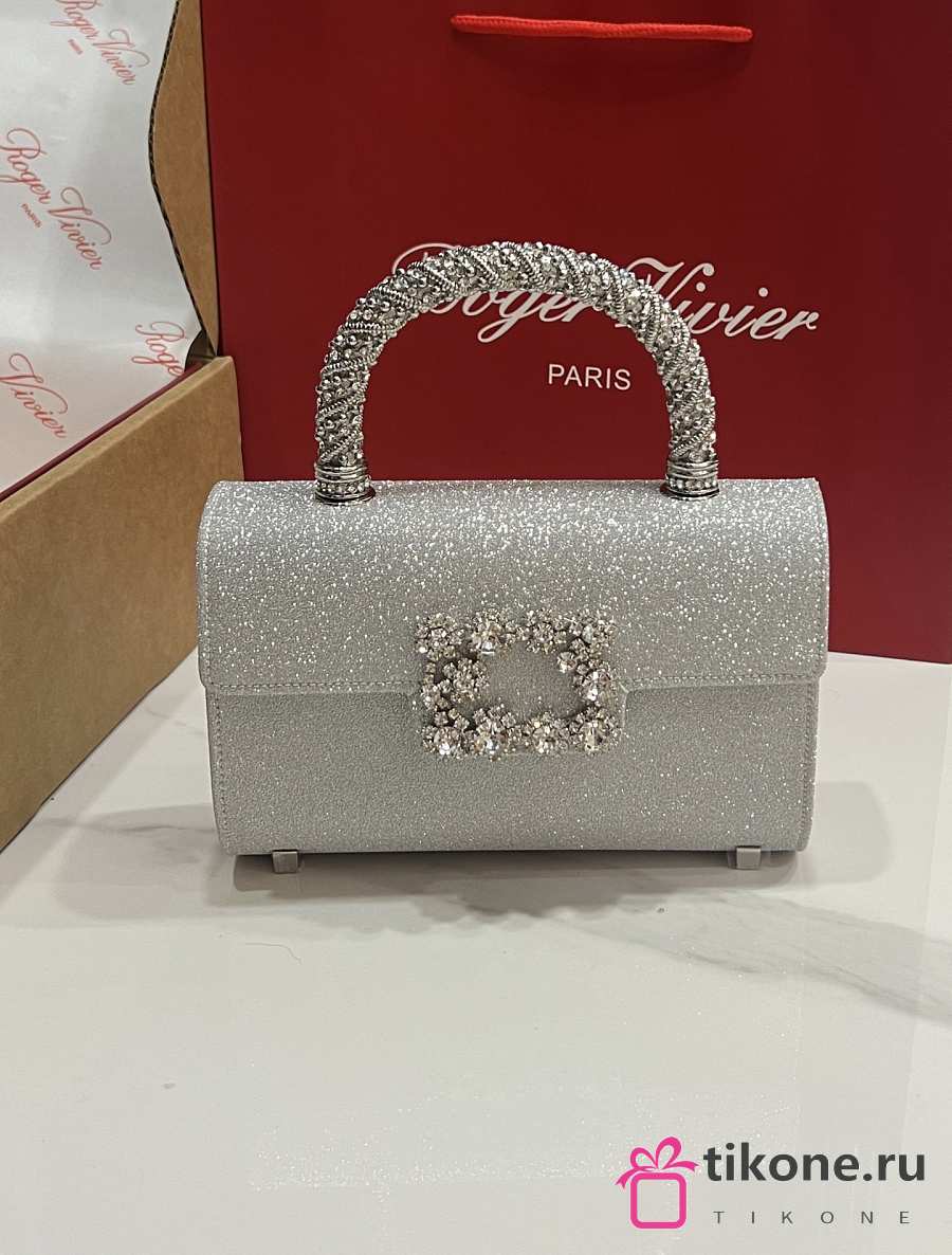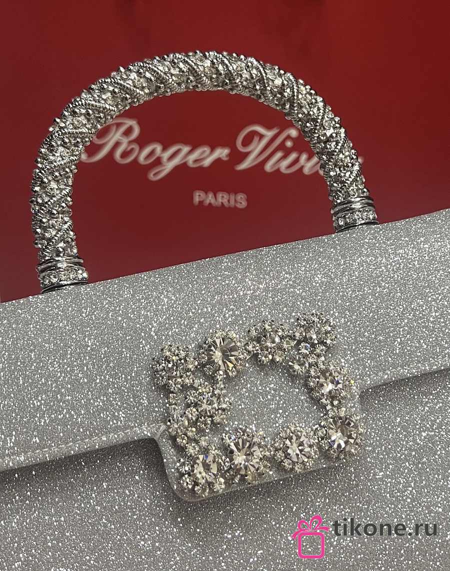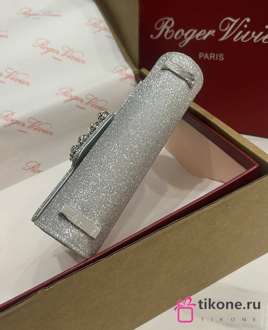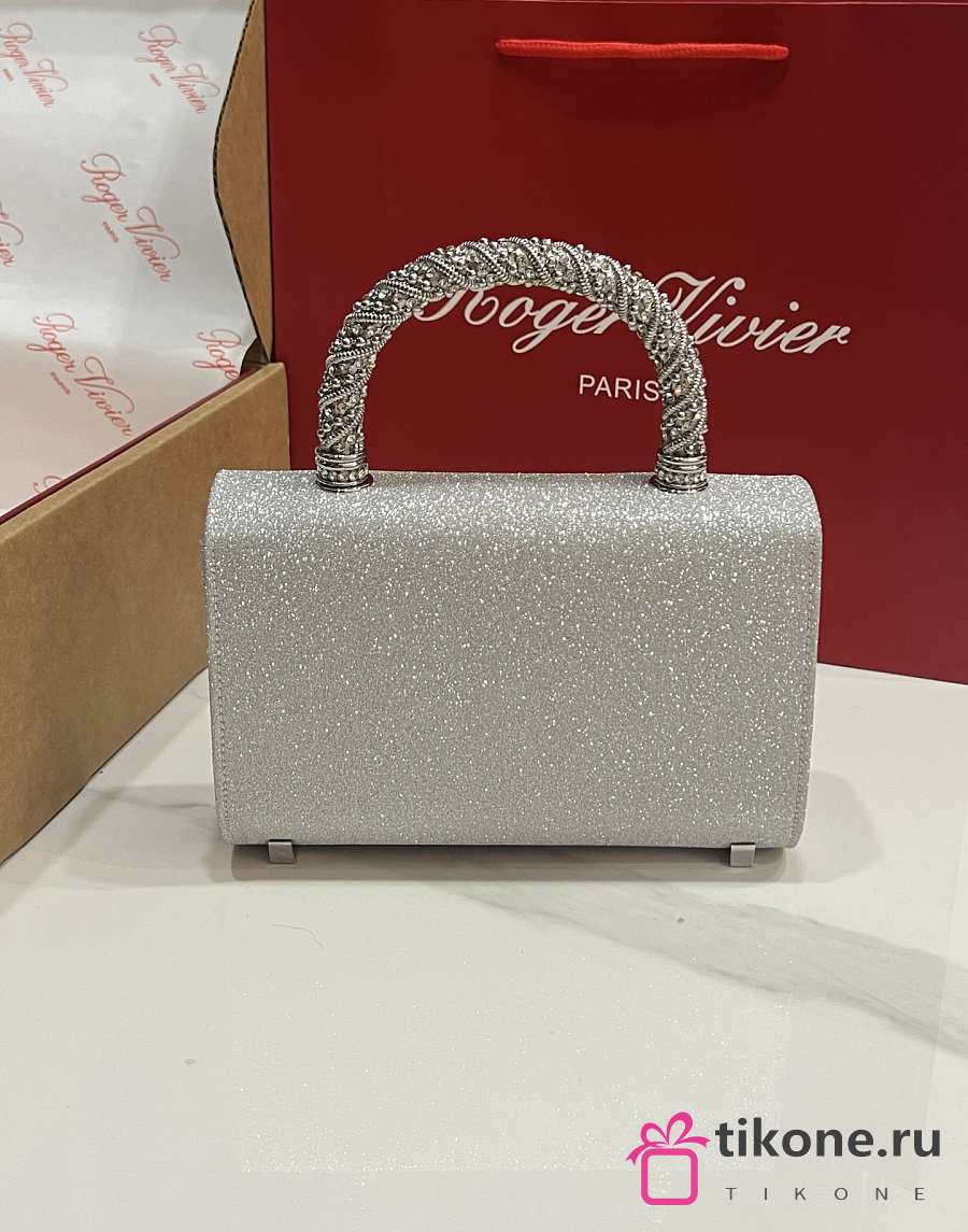 Roger Vivier Jewel Efflorescence Mini Bag in Glitter Silver - 19x12x6cm