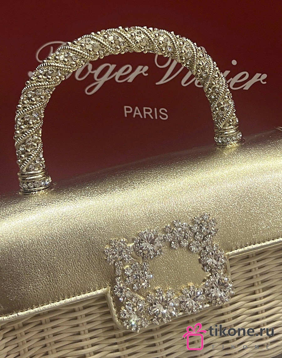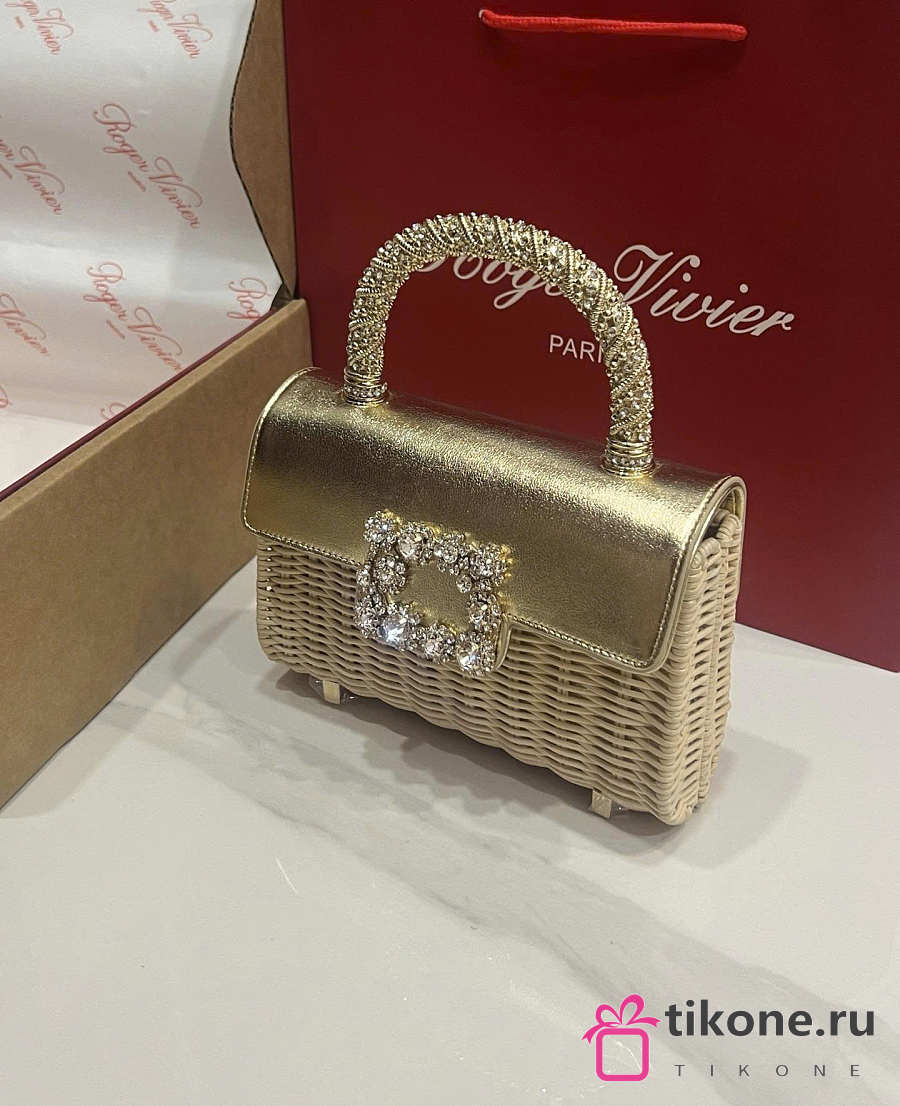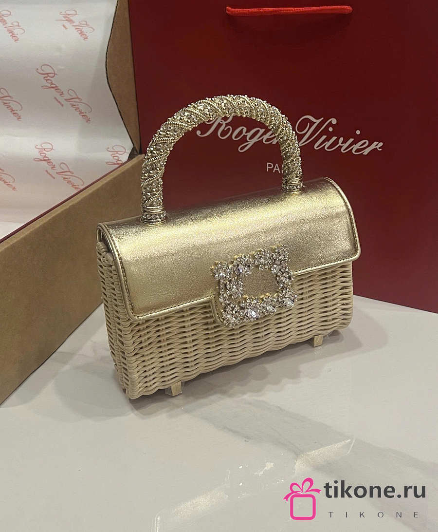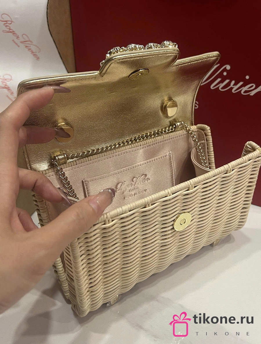 Roger Vivier Jewel Efflorescence Mini Bag in Leather and Rattan Gold - 19x12x6cm