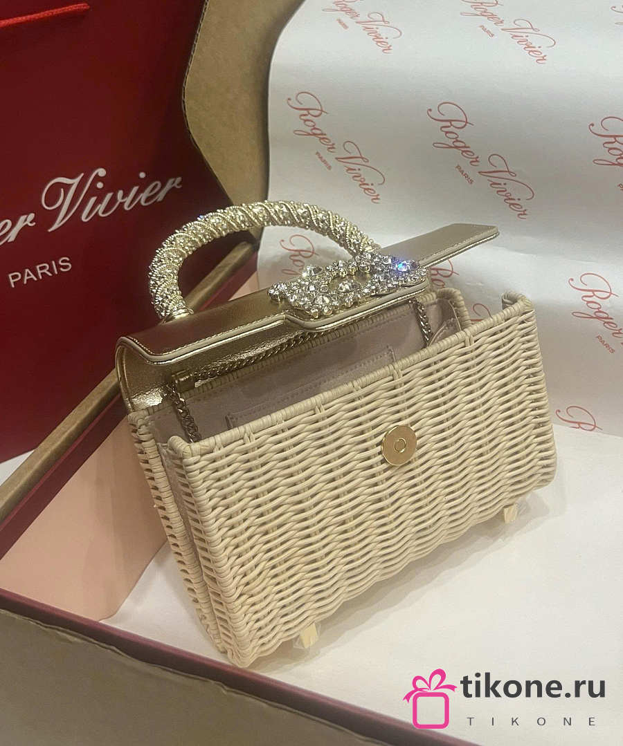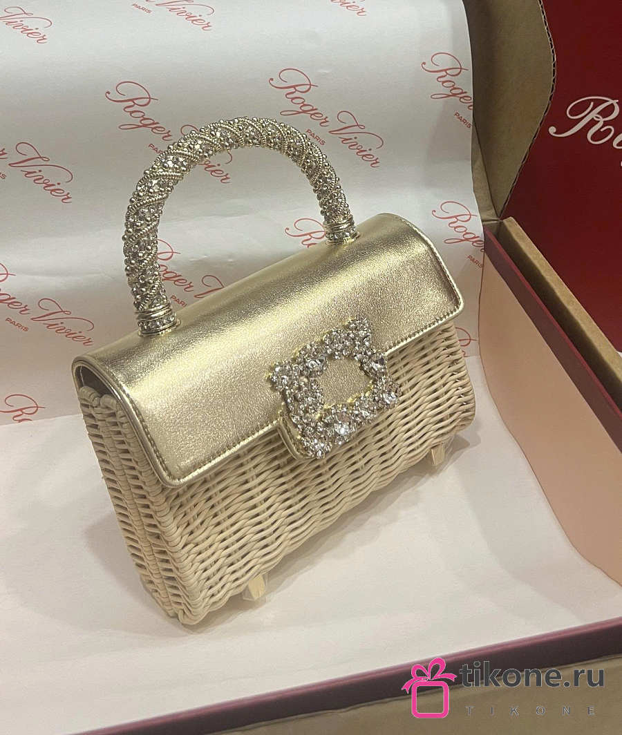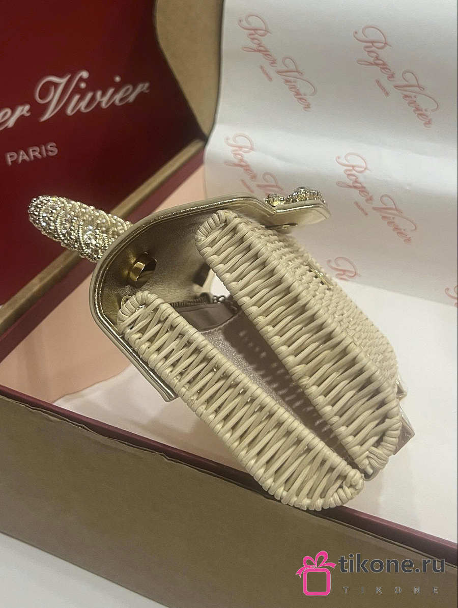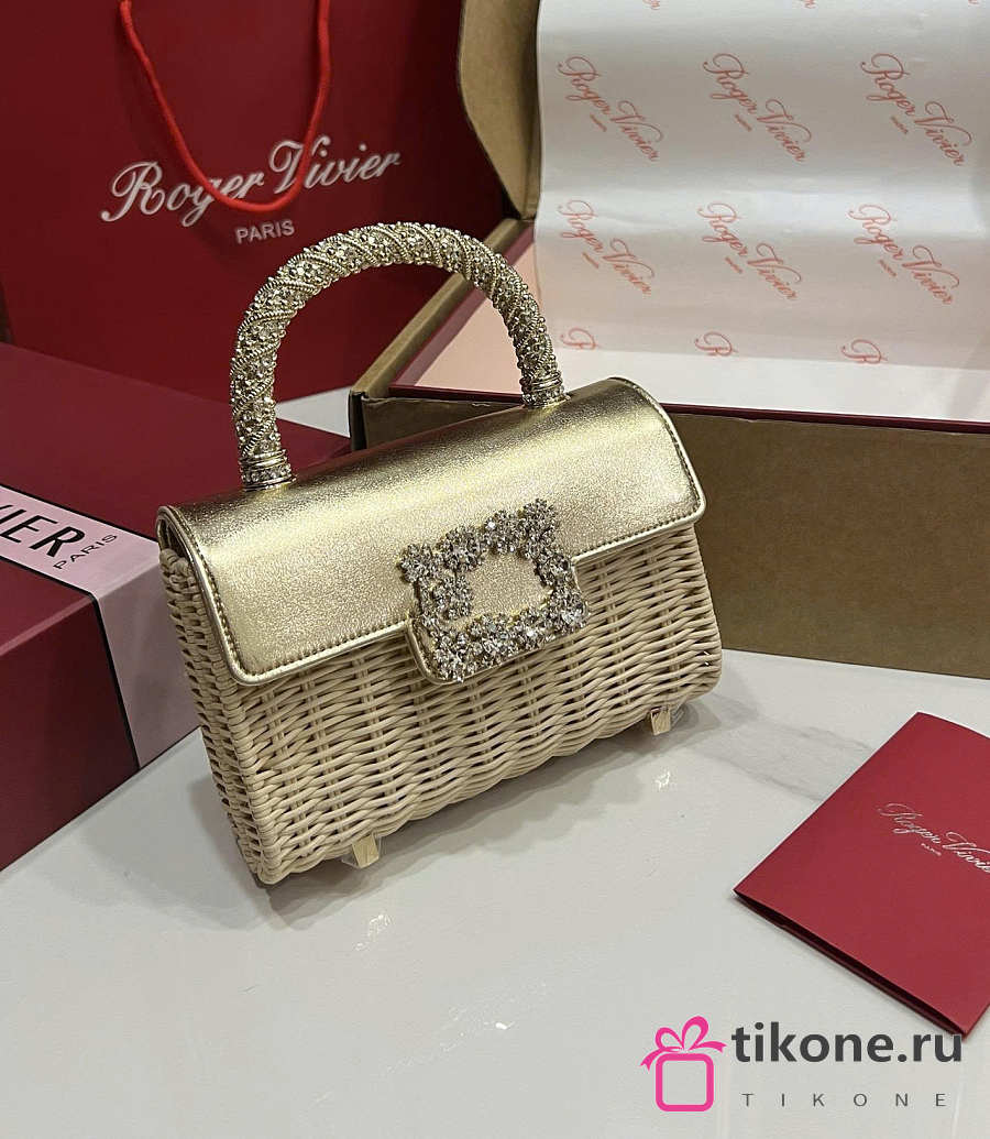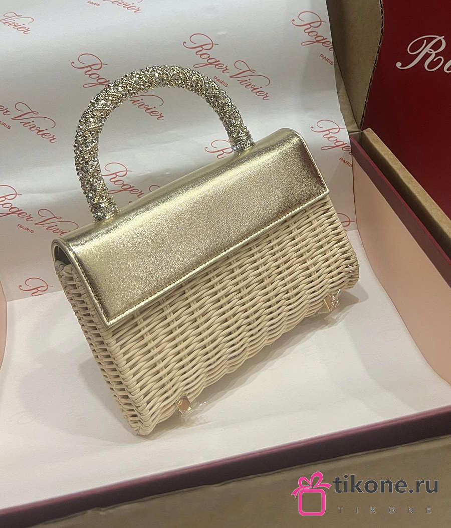 Roger Vivier Jewel Efflorescence Mini Bag in Leather and Rattan Gold - 19x12x6cm