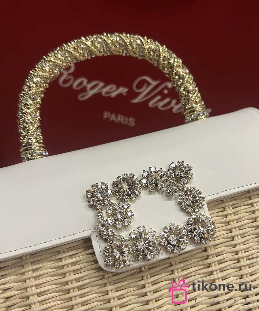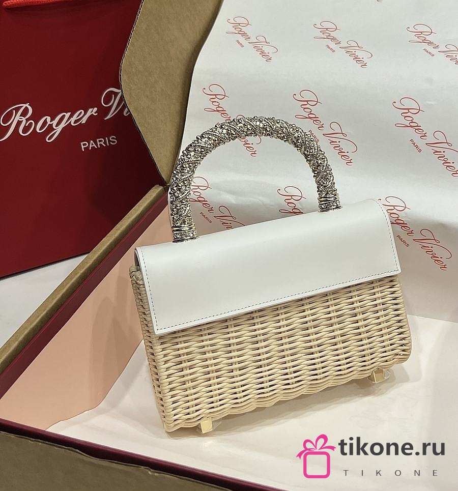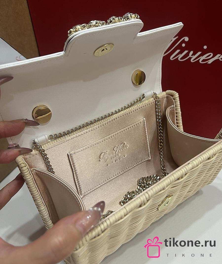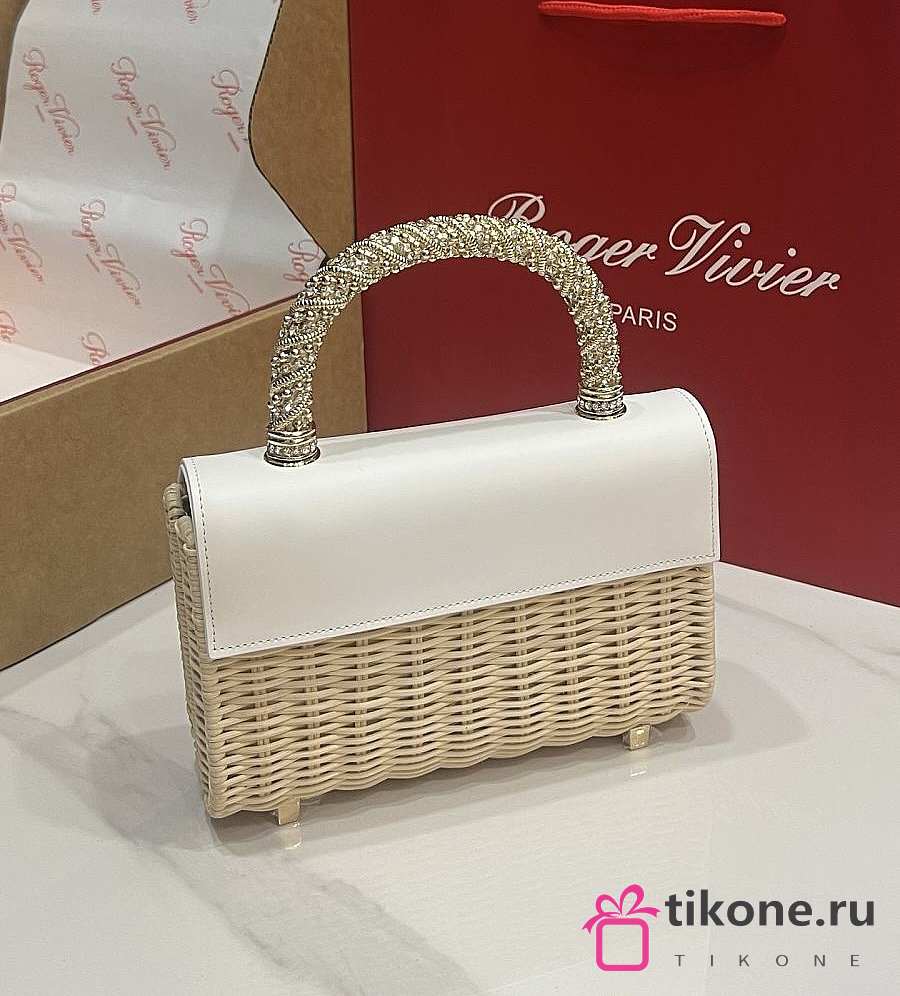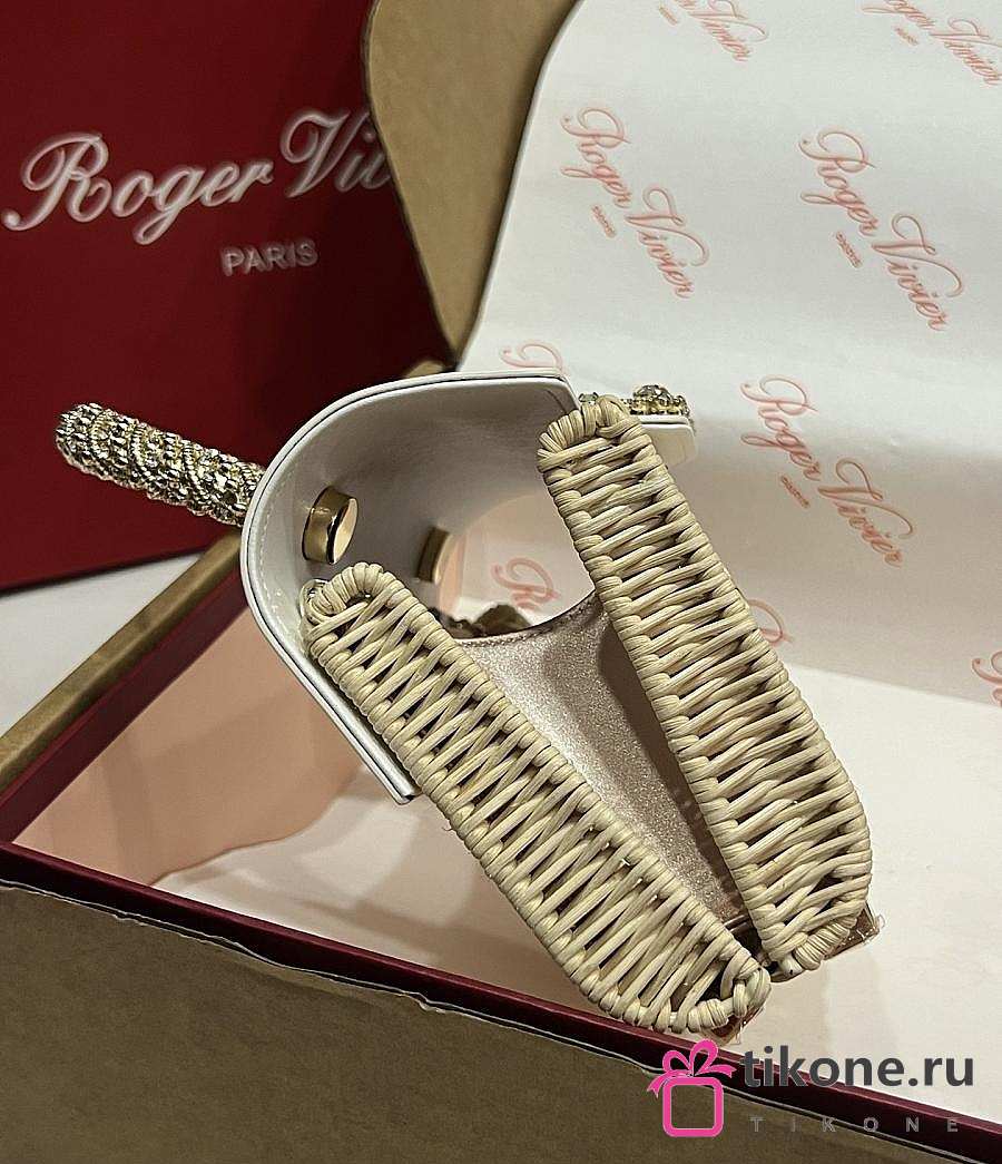 Roger Vivier Jewel Efflorescence Mini Bag in Leather and Rattan White - 19x12x6cm