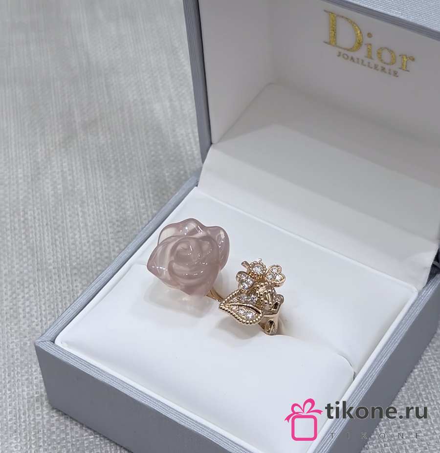 Rose Dior Pre Catelan Ring Pink Gold Diamonds and Rose Quartz
