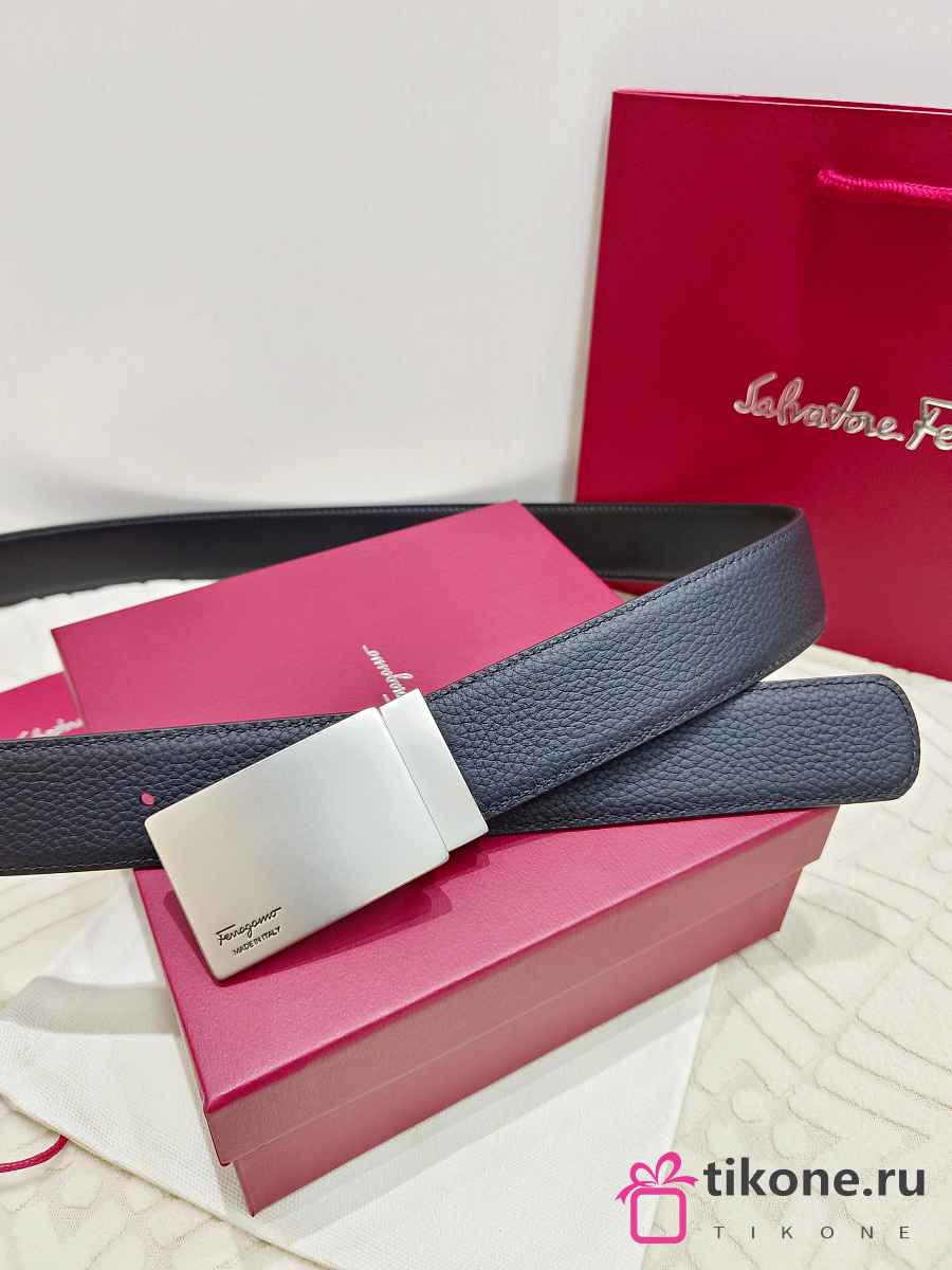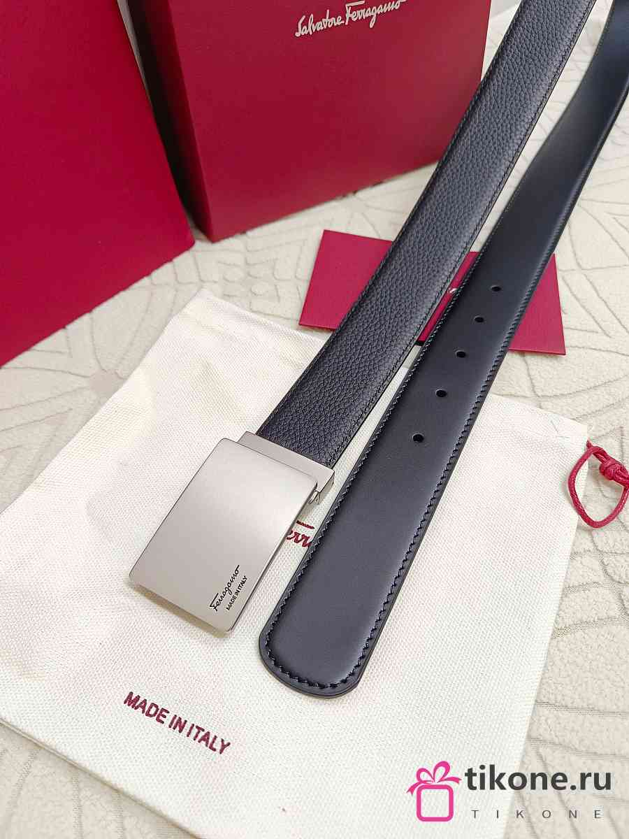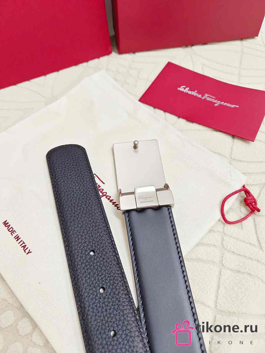 Salvatore Ferragamo Reversible And Adjustable Belt Smooth/ Grained Calfskin Black 3.5cm