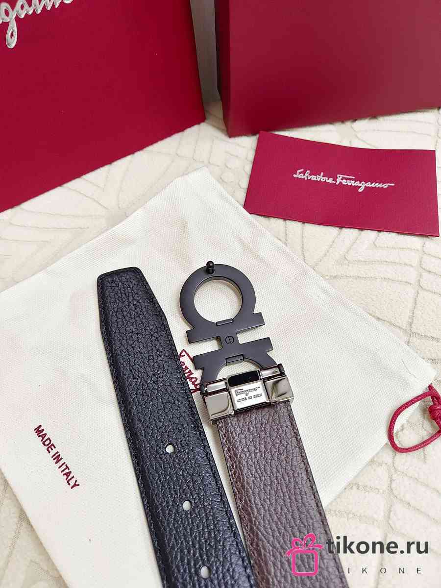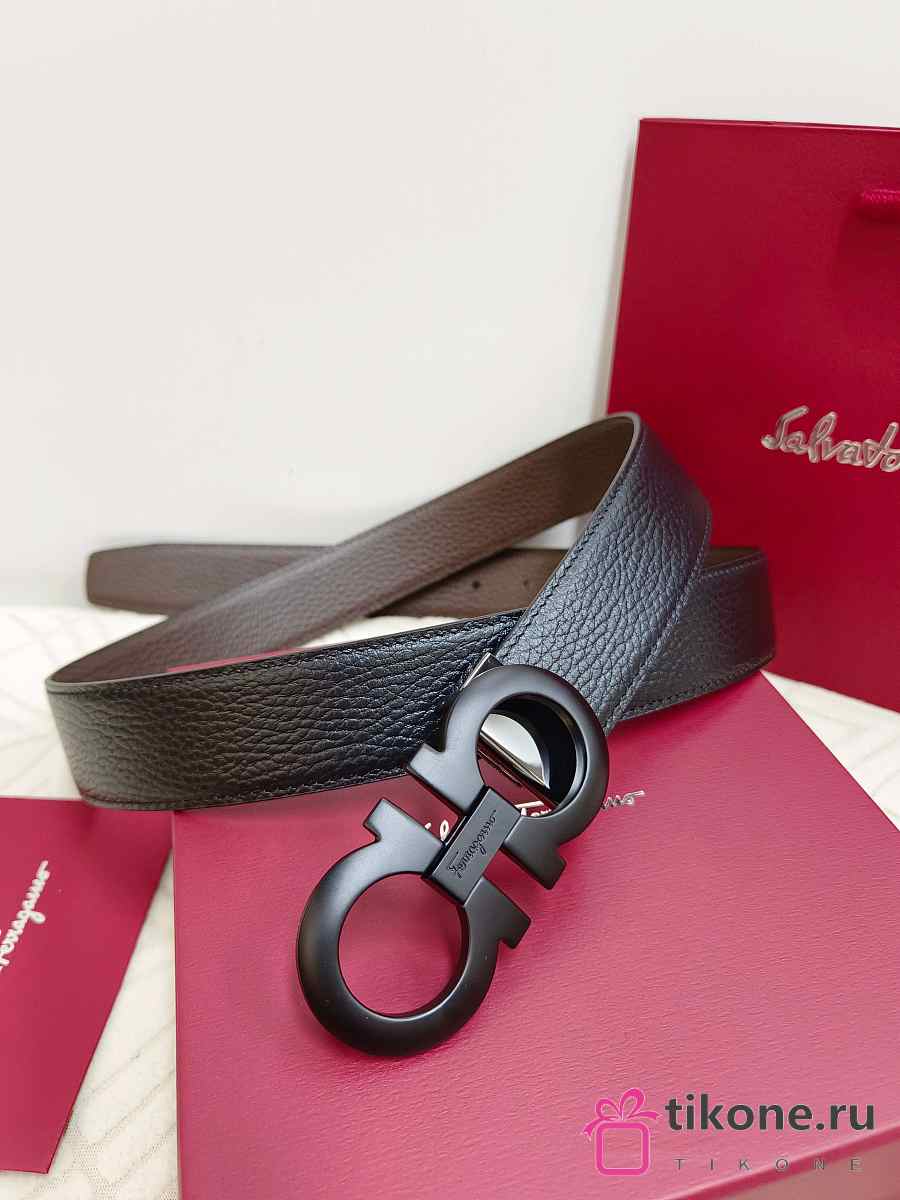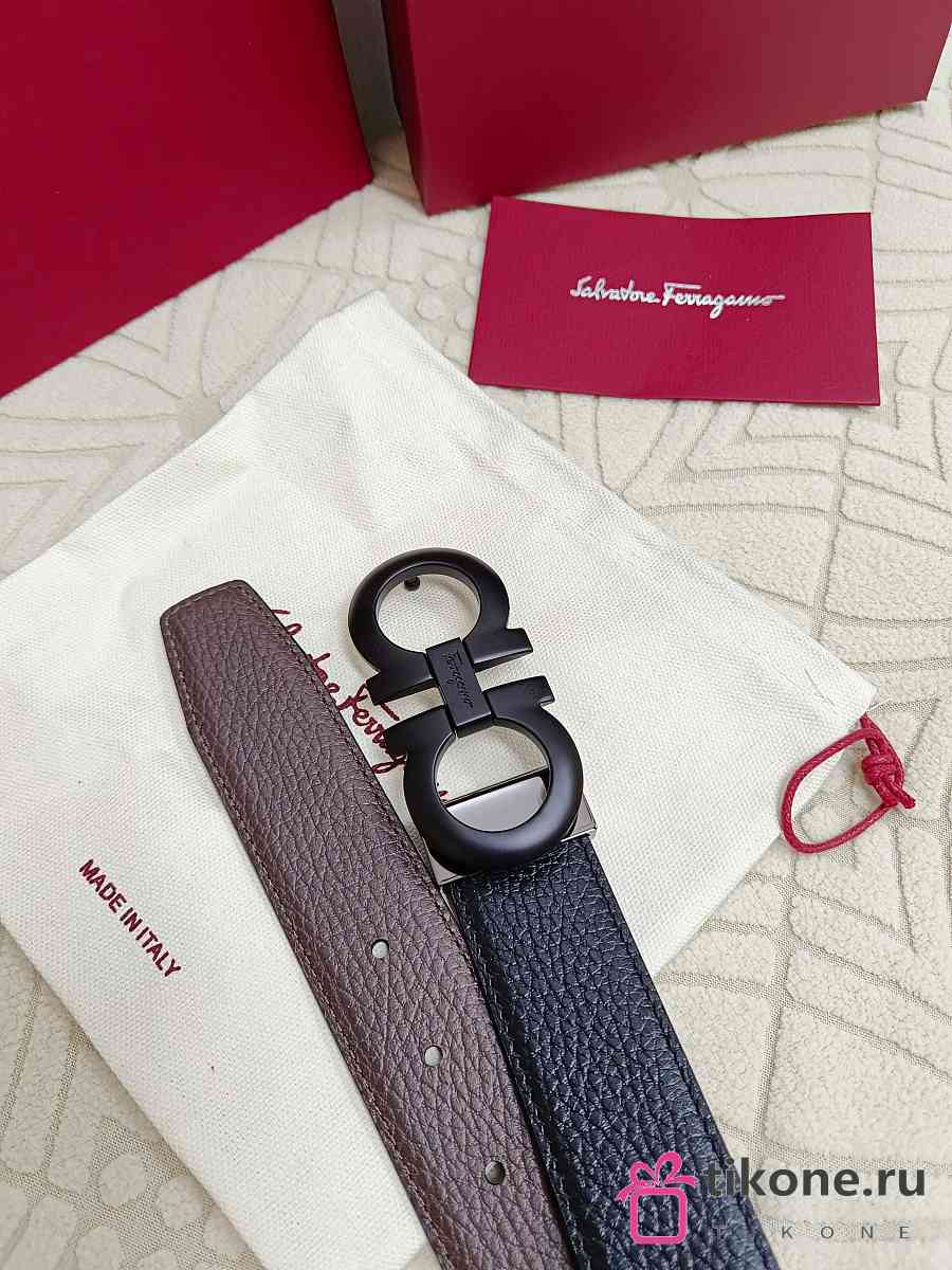 Salvatore Ferragamo Reversible And Adjustable Gancini Belt Grained Calfskin Black/Brown 3.5cm