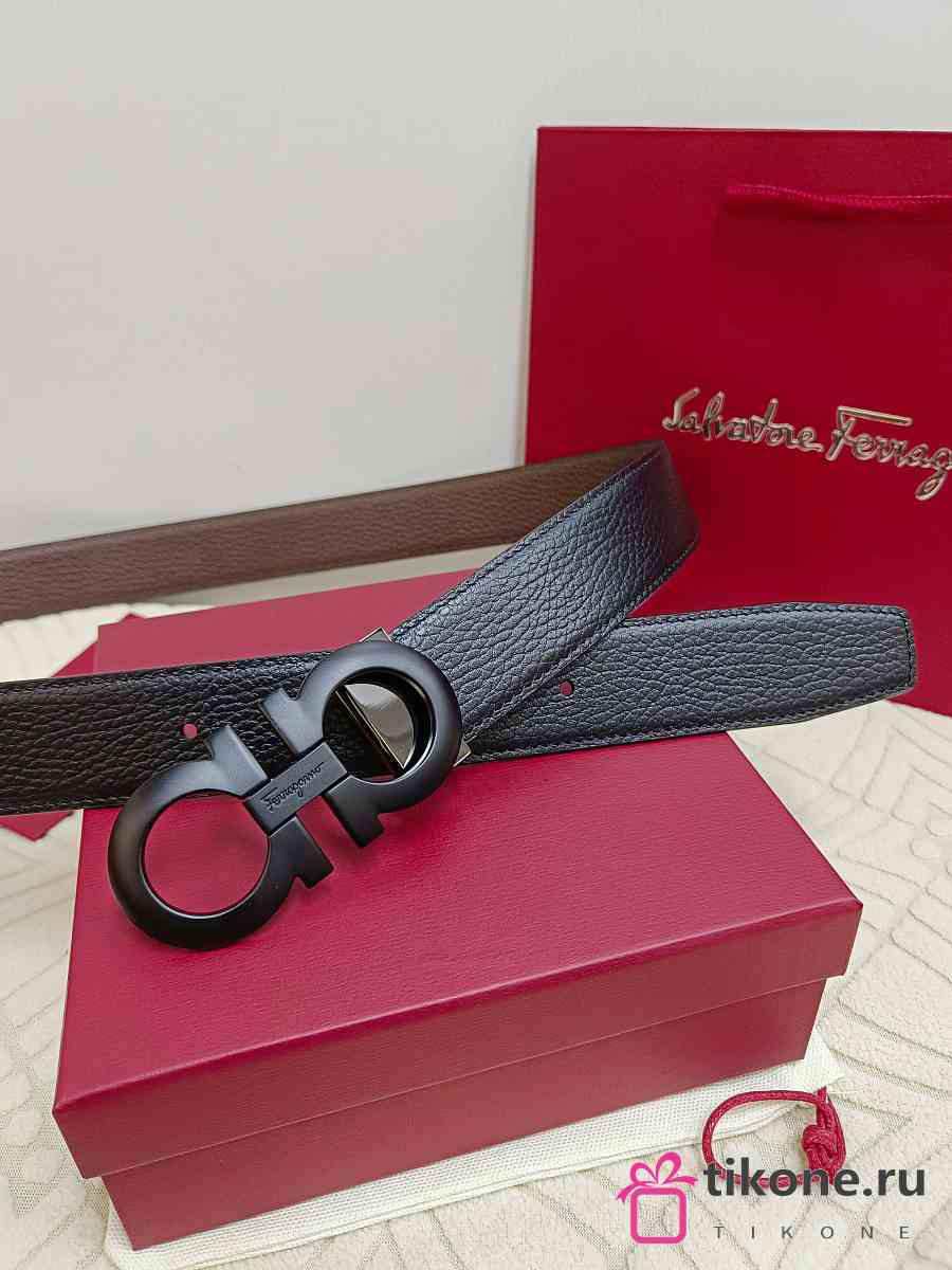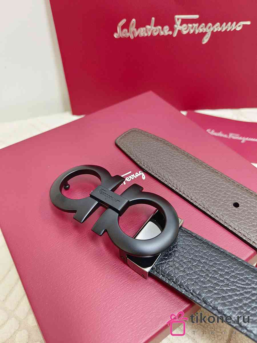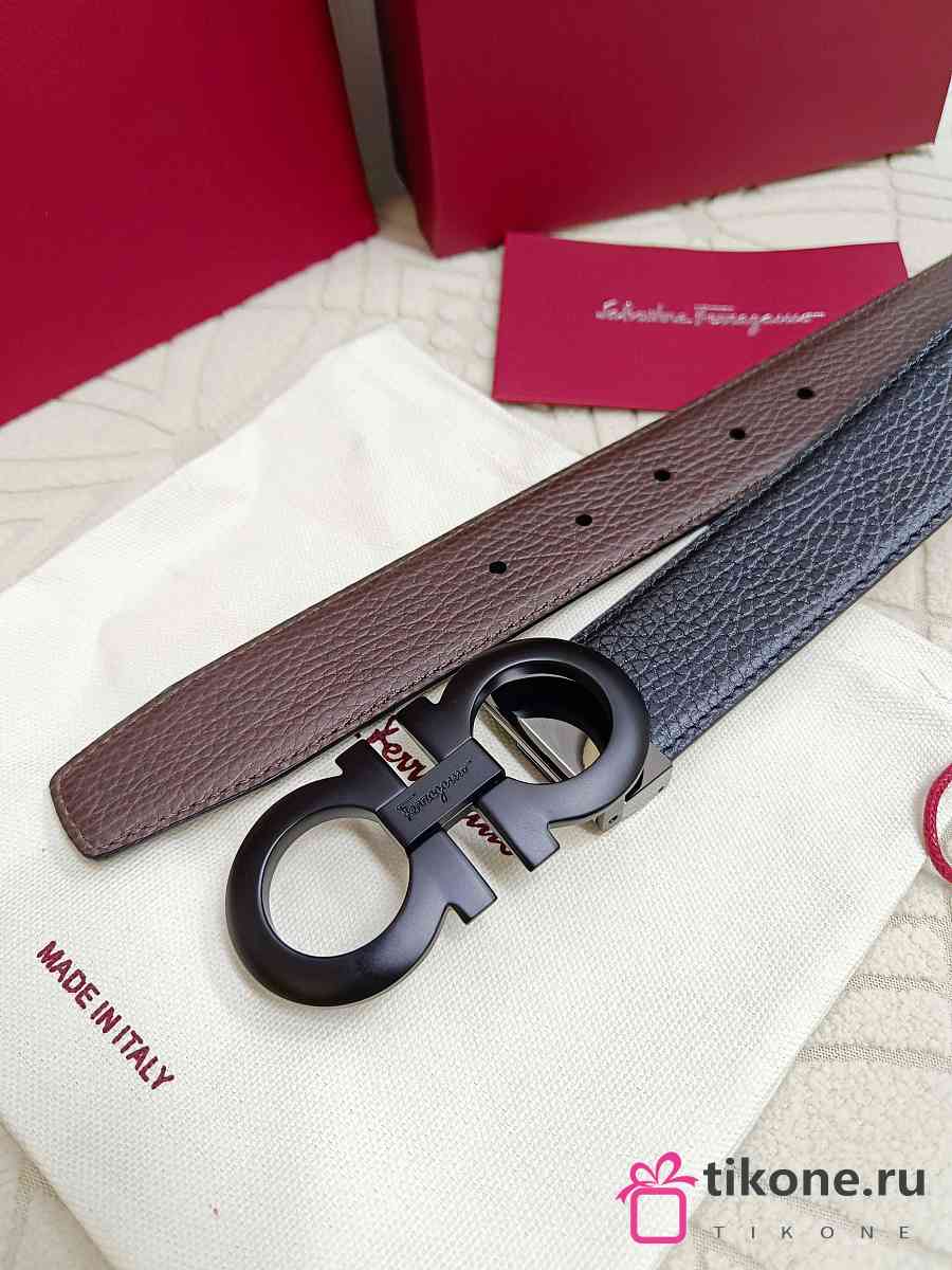 Salvatore Ferragamo Reversible And Adjustable Gancini Belt Grained Calfskin Black/Brown 3.5cm