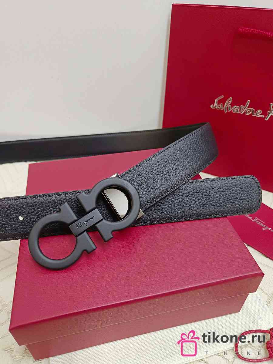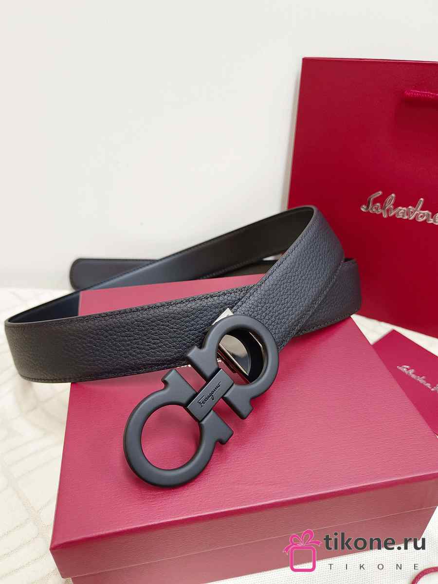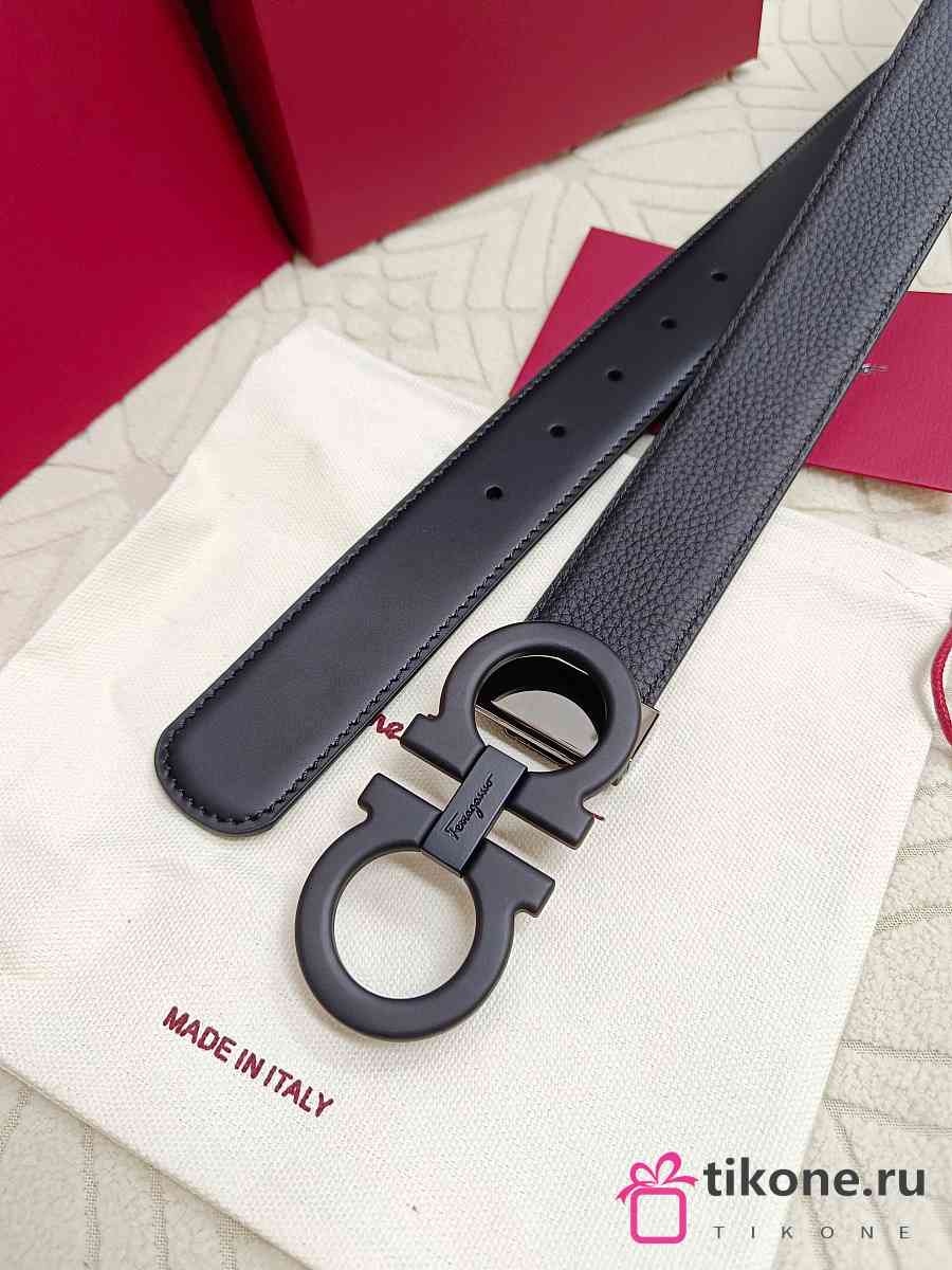 Salvatore Ferragamo Reversible And Adjustable Gancini Belt Smooth/ Grained Calfskin Black 3.5cm