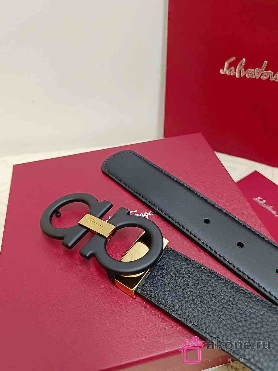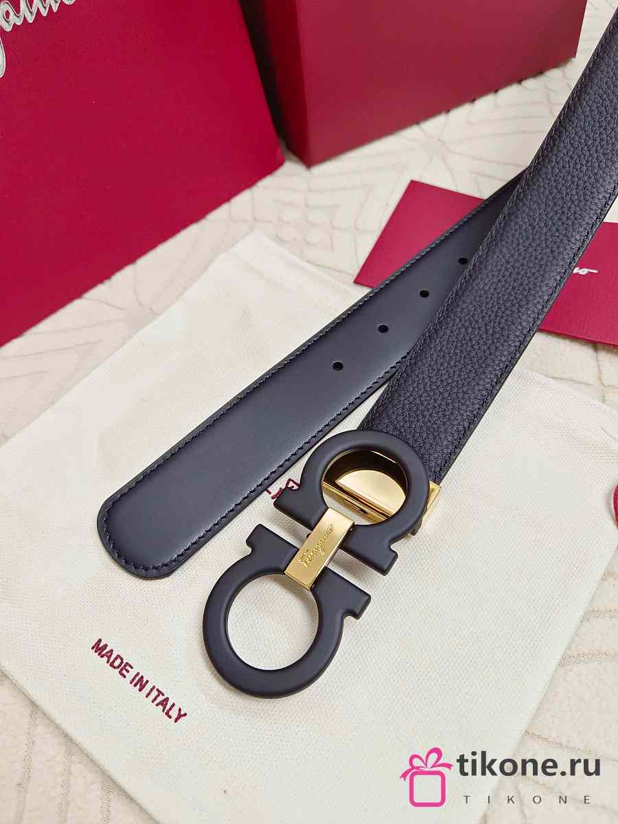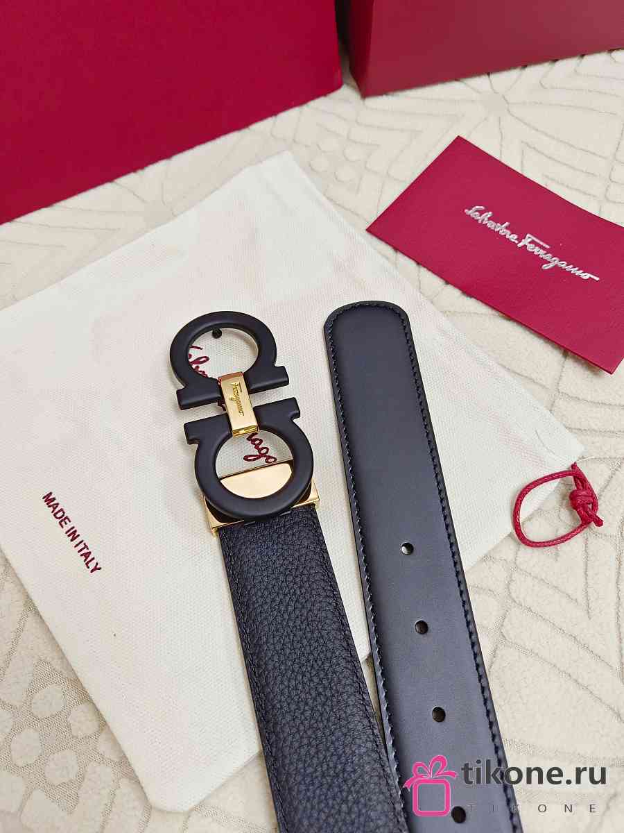 Salvatore Ferragamo Reversible And Adjustable Gancini Belt Smooth/ Grained Calfskin Black Gold 3.5cm