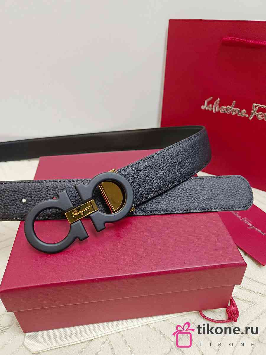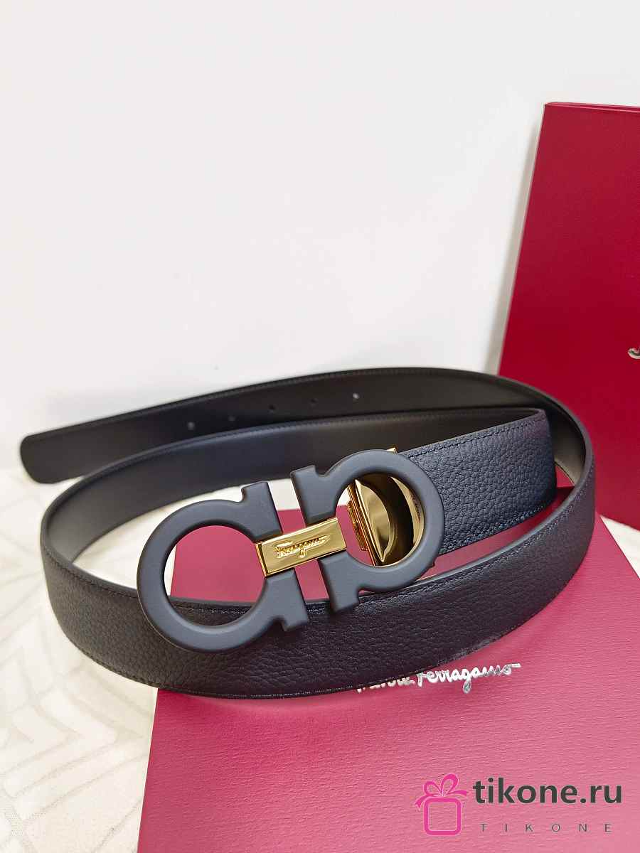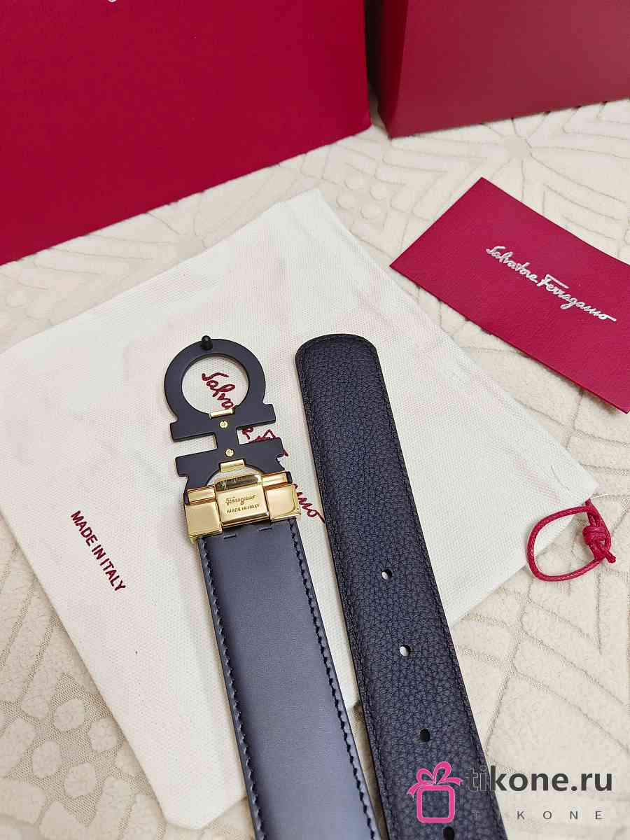 Salvatore Ferragamo Reversible And Adjustable Gancini Belt Smooth/ Grained Calfskin Black Gold 3.5cm