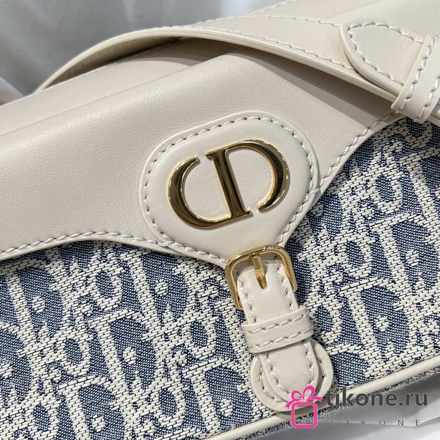 Small 30 Montaigne Pocket Bag Blue Dior Oblique Chambray with Raffia Effect and Light Biscuit Smooth Calfskin - 19.5x11x6.5cm