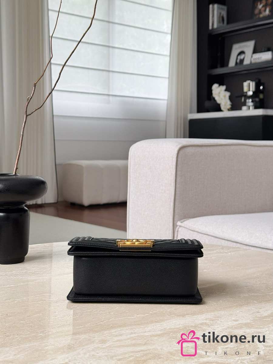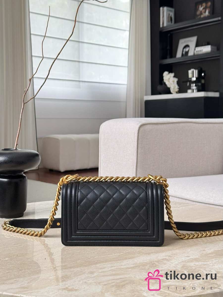Small Boy Chanel Handbag Grained Calfskin & Gold-Tone Metal Black - 20.5x12x8.5cm