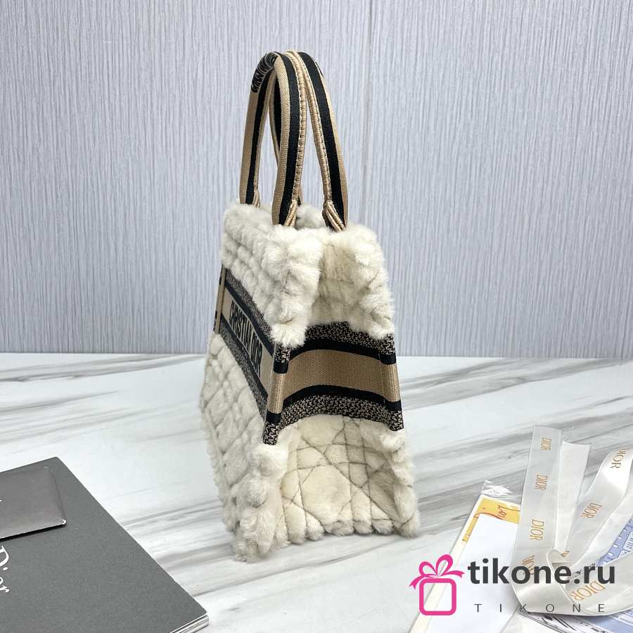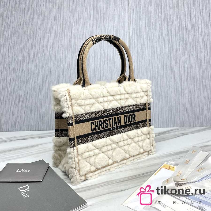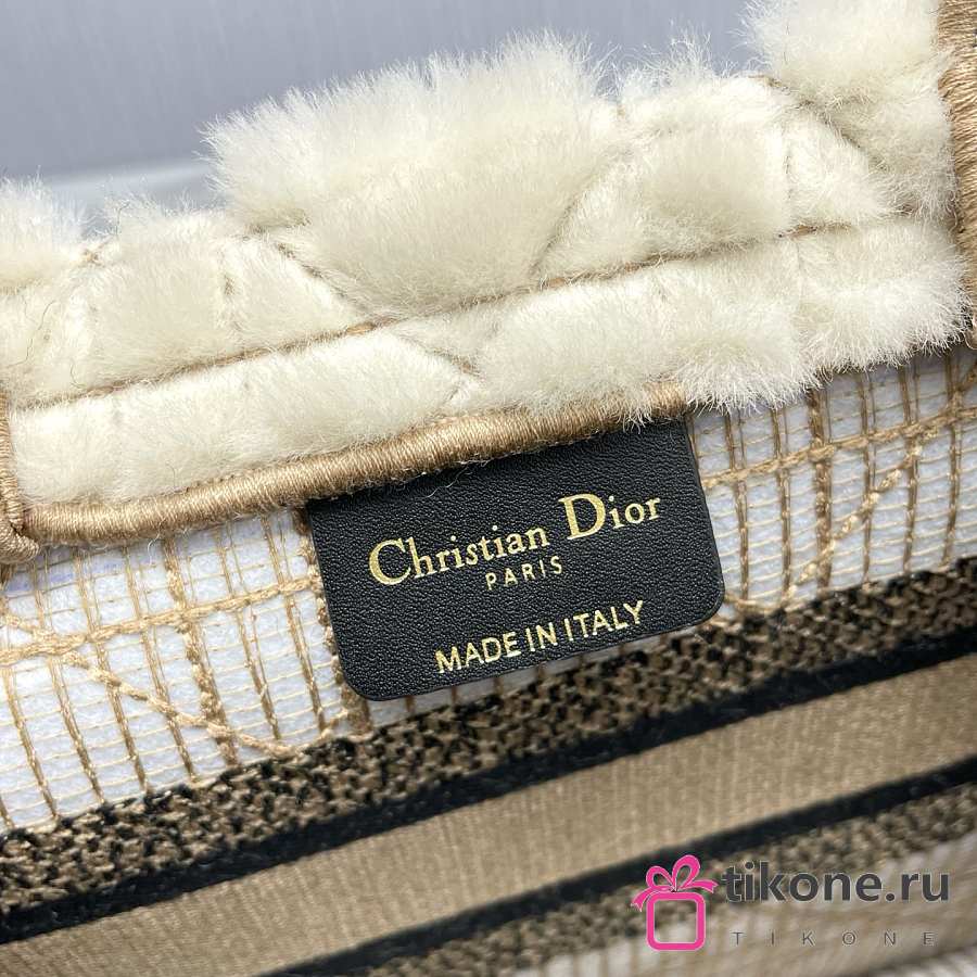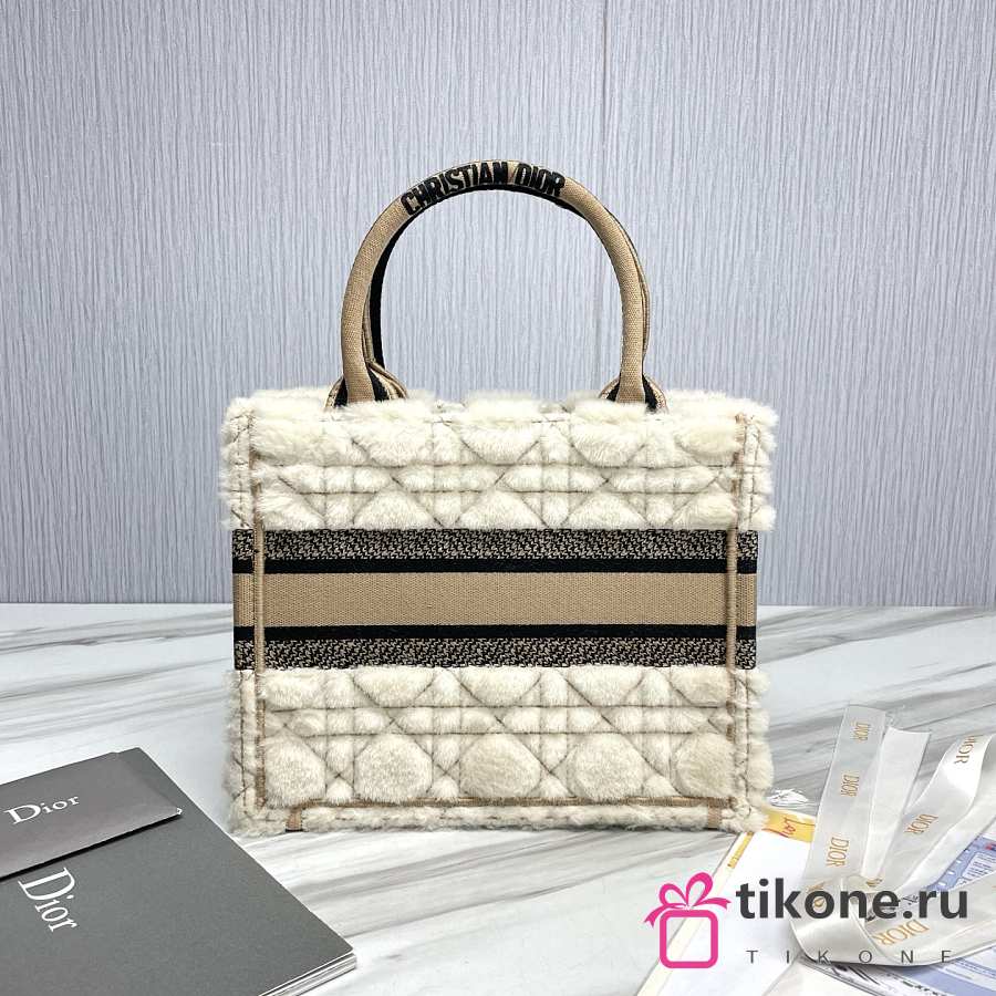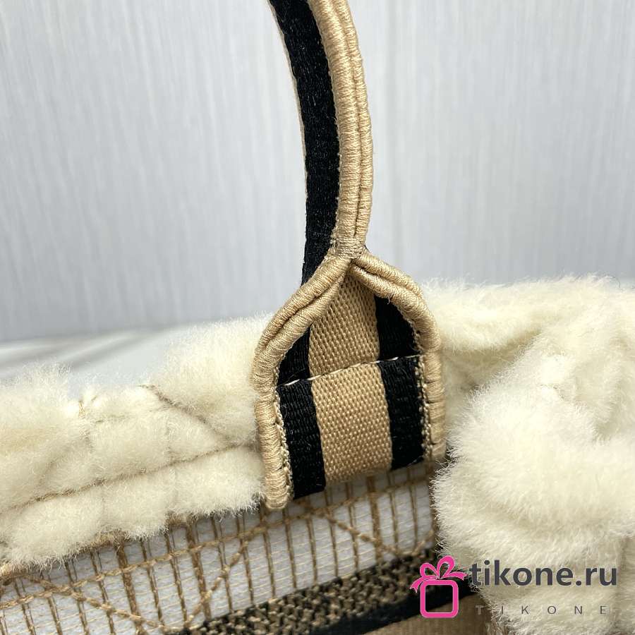Small Dior Book Tote Lambskin Wool Unbleached Caning Beige - 26.5x22x14cm