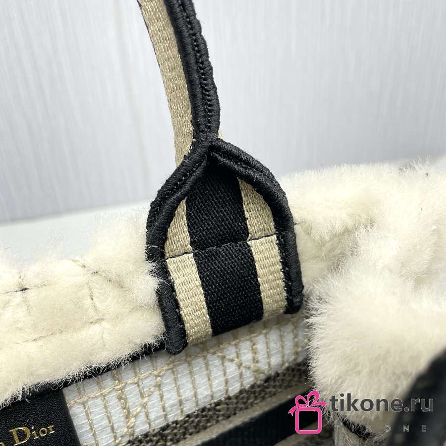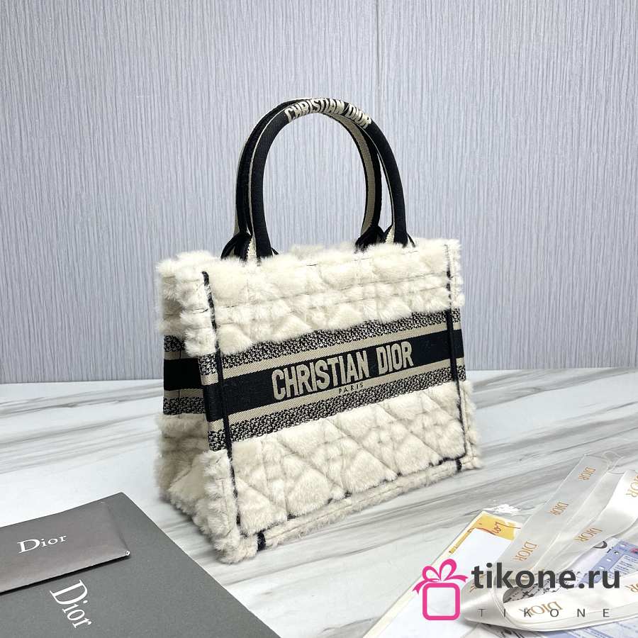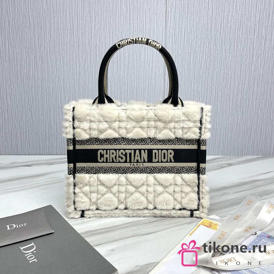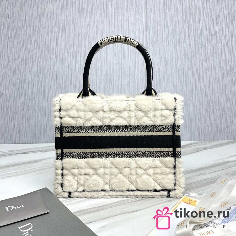 Small Dior Book Tote Lambskin Wool Unbleached Caning White - 26.5x22x14cm