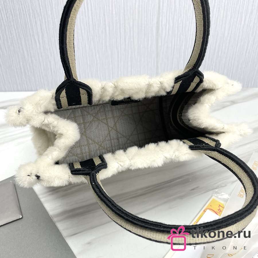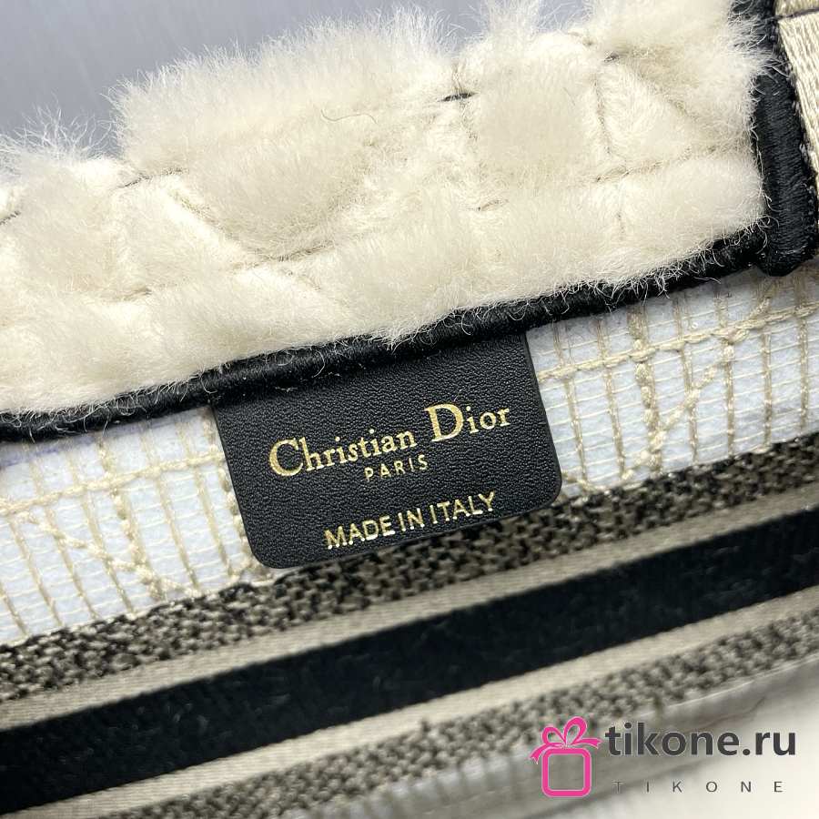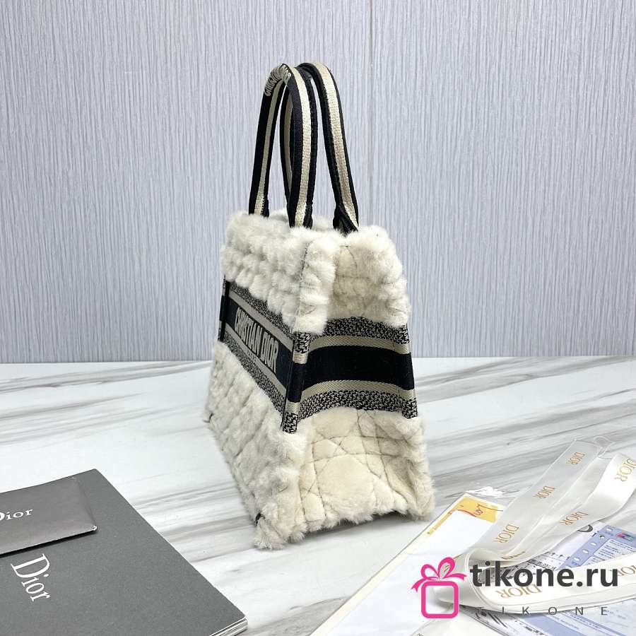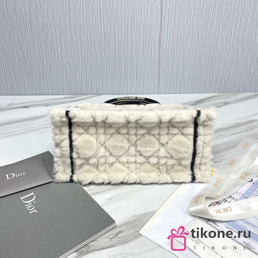 Small Dior Book Tote Lambskin Wool Unbleached Caning White - 26.5x22x14cm