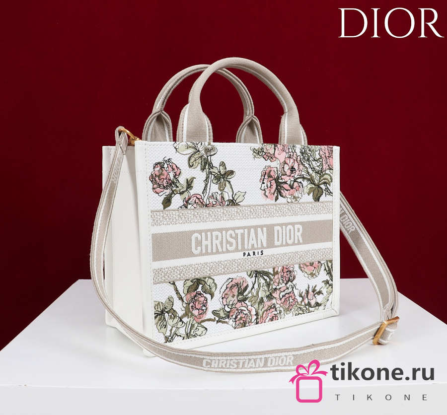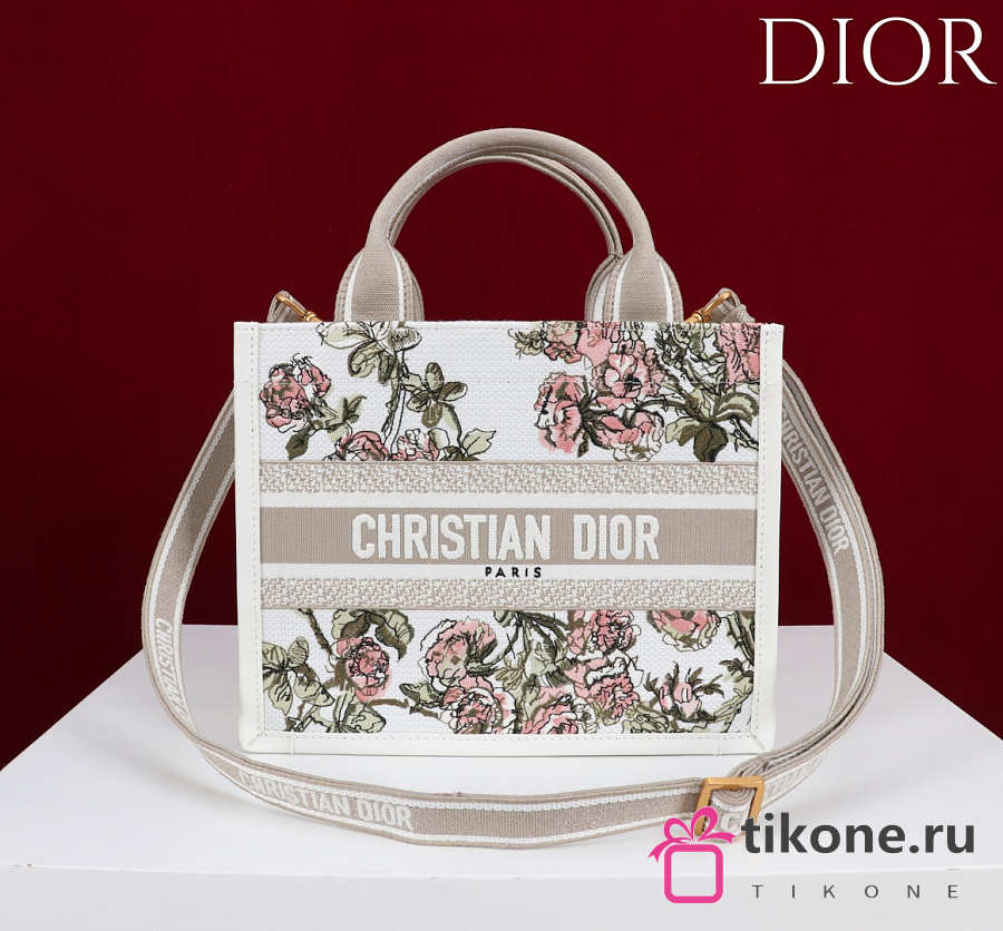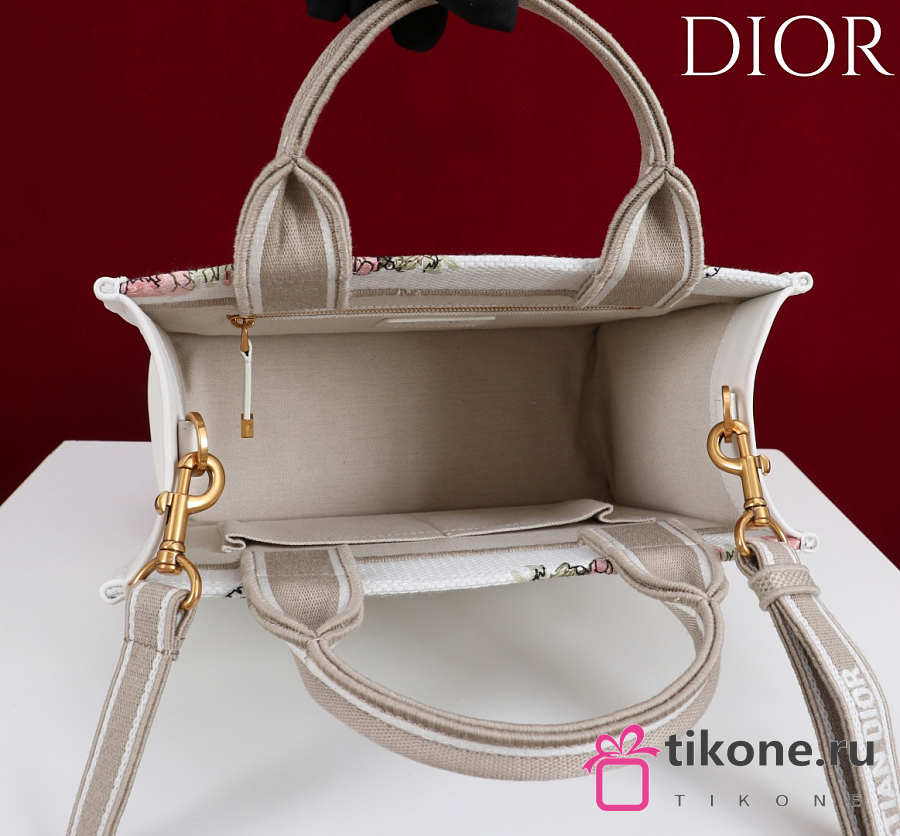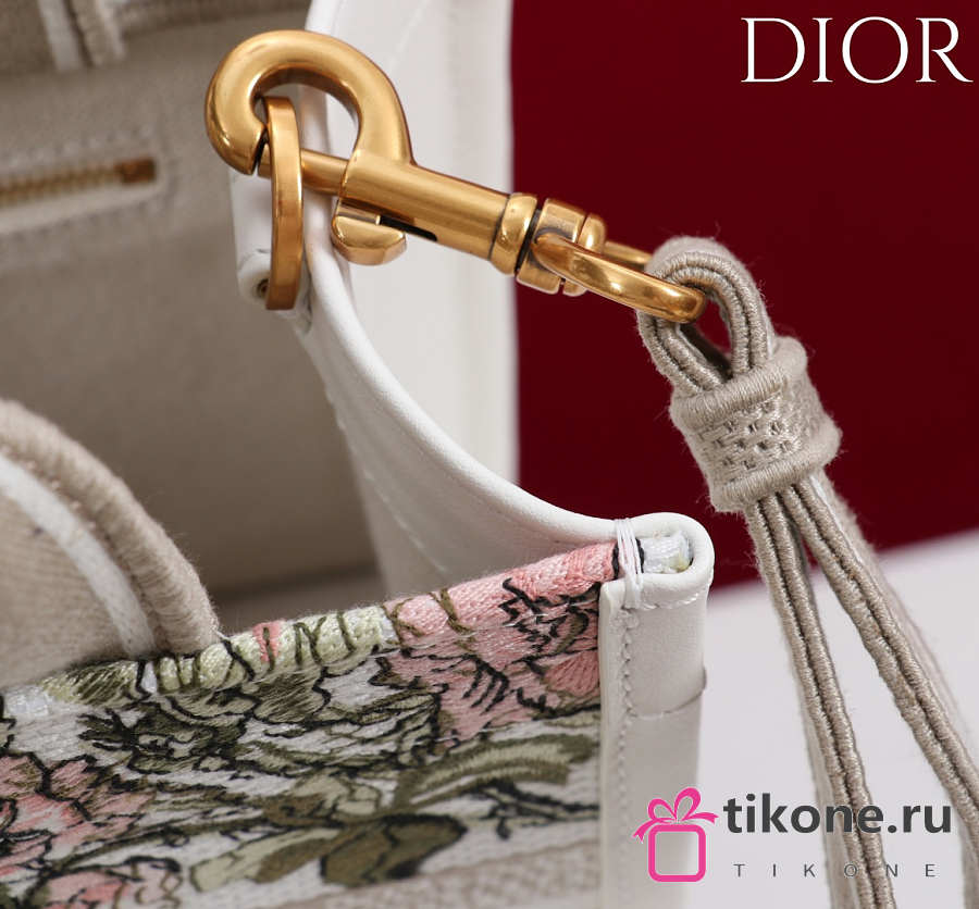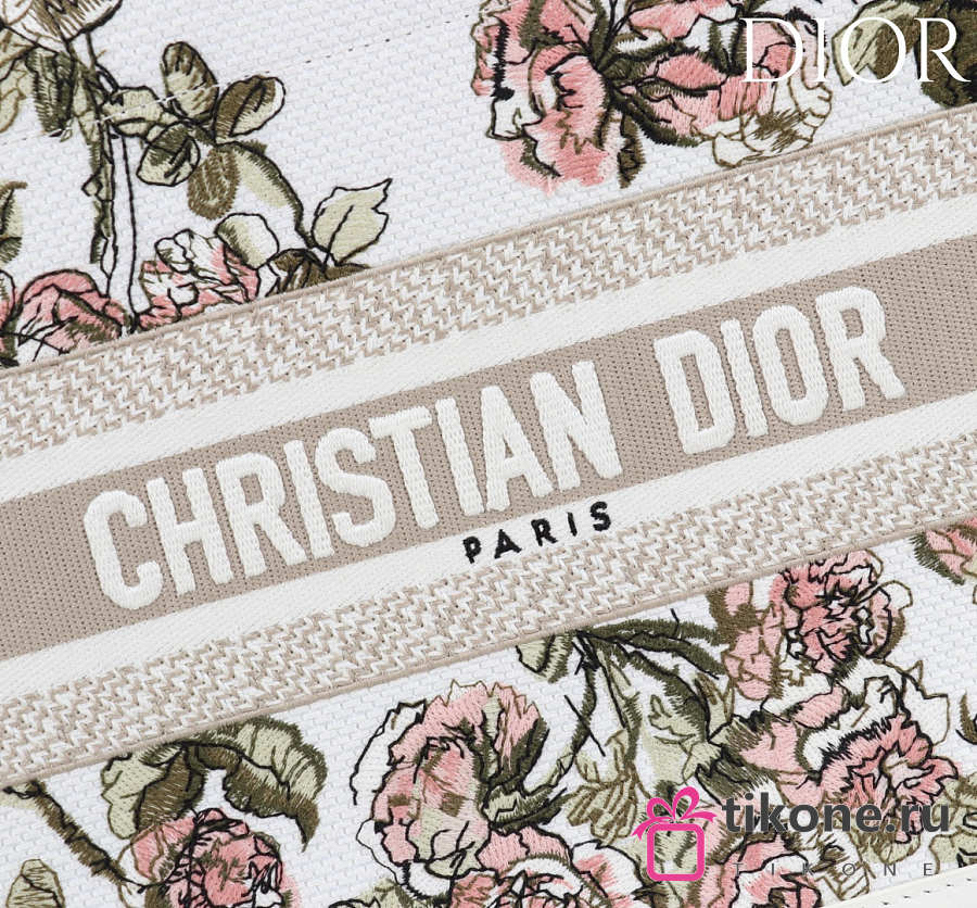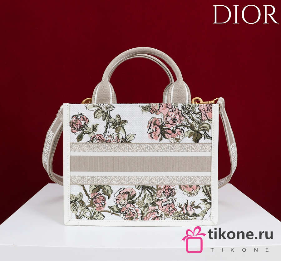 Small Dior Book Tote Multicolor Rosier de Dior Embroidery and Latte Calfskin - 26.5x22x14cm