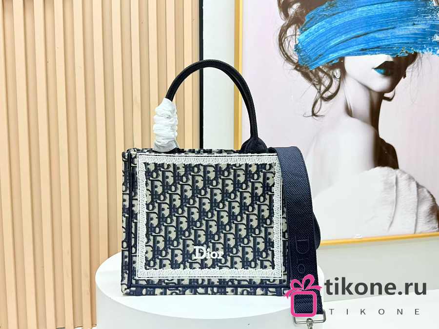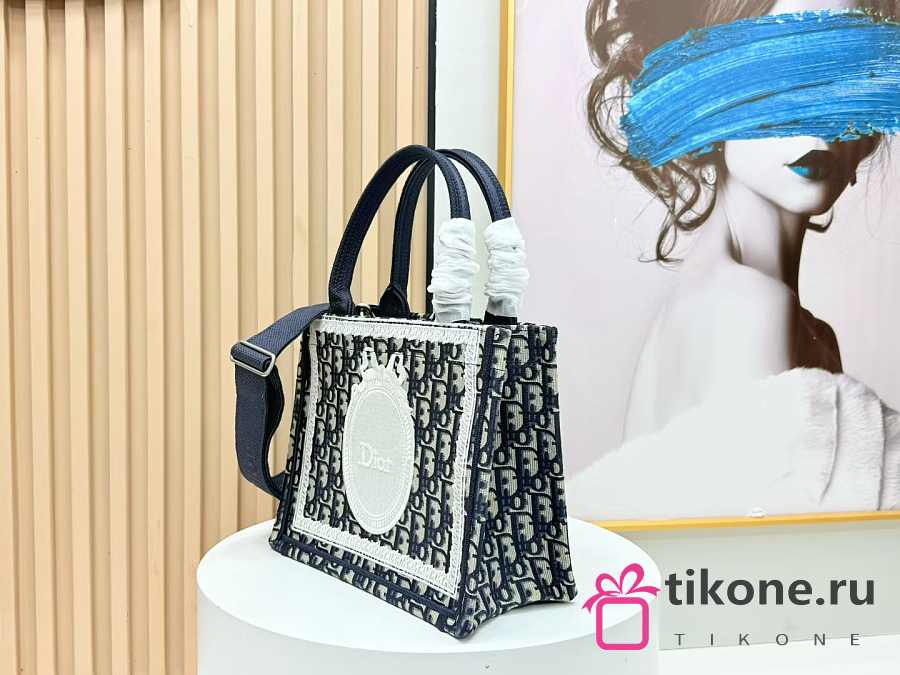 Medium Dior Book Tote Blue Dior Oblique Chambray Effect Embroidery - 36x27.5x16.5cm