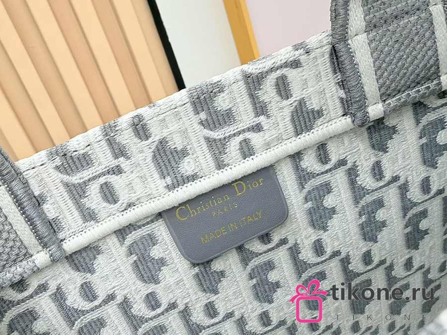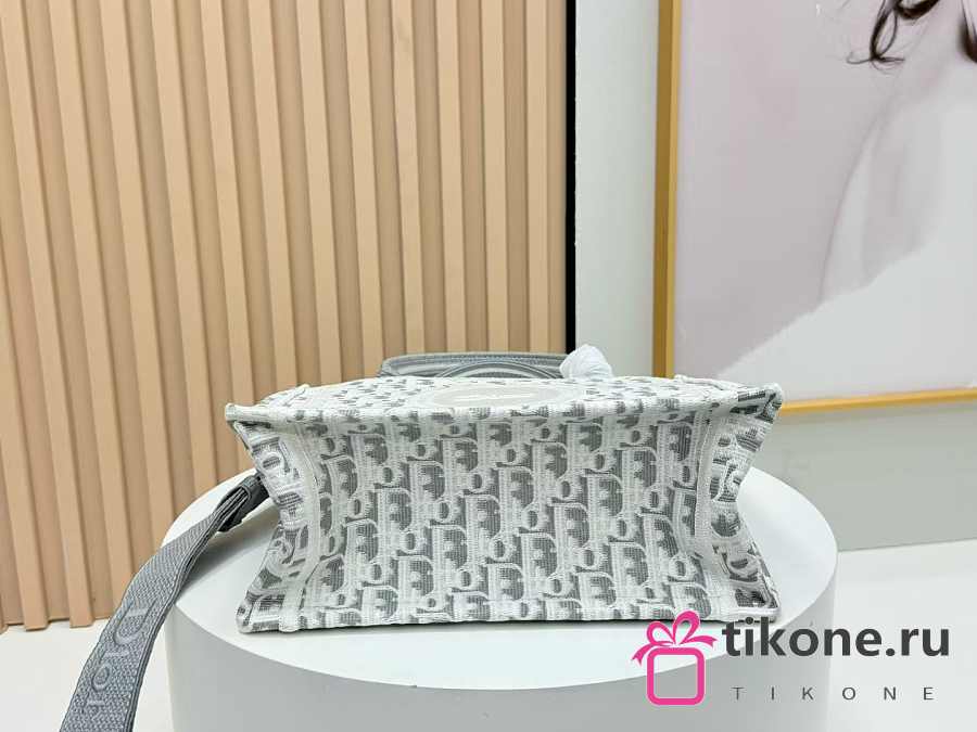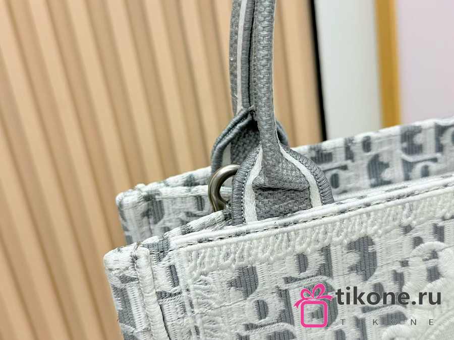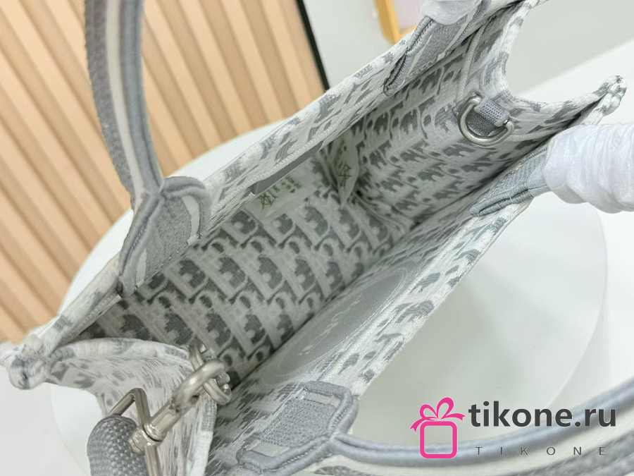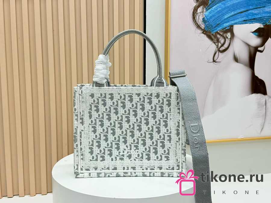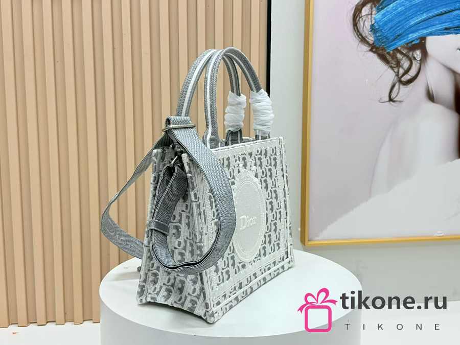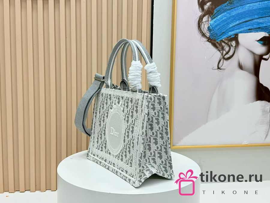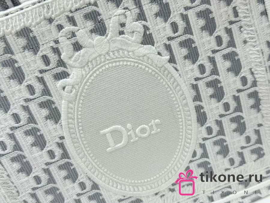 Small Dior Book Tote with Strap Latte and Gray Dior Oblique Embroidery and White Lace - 26.5x22x14cm