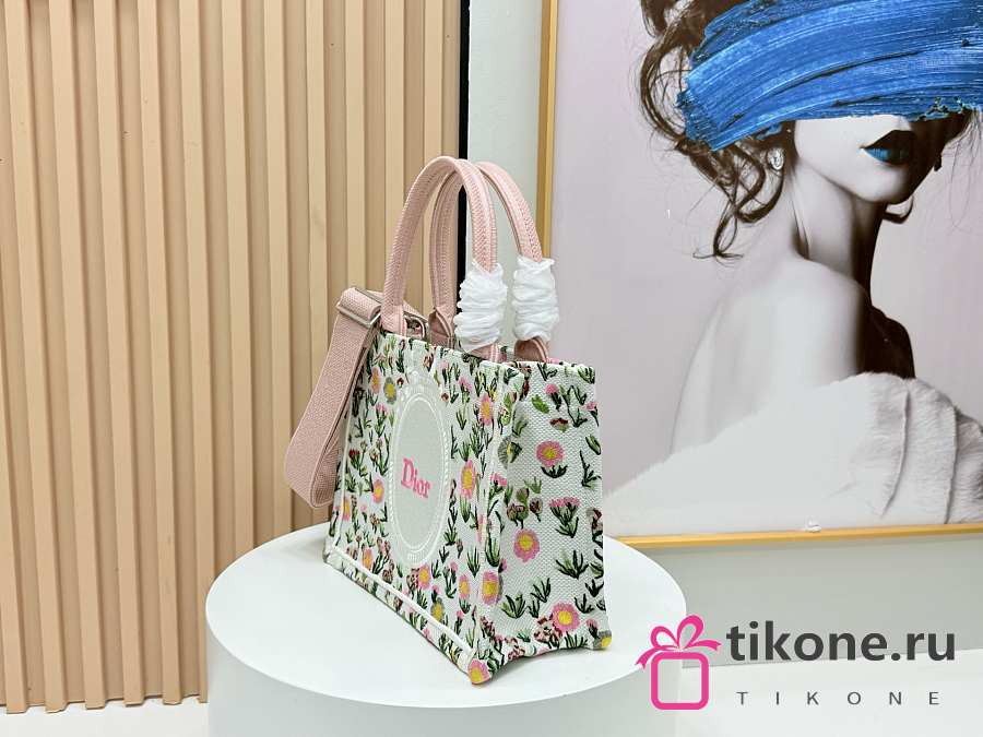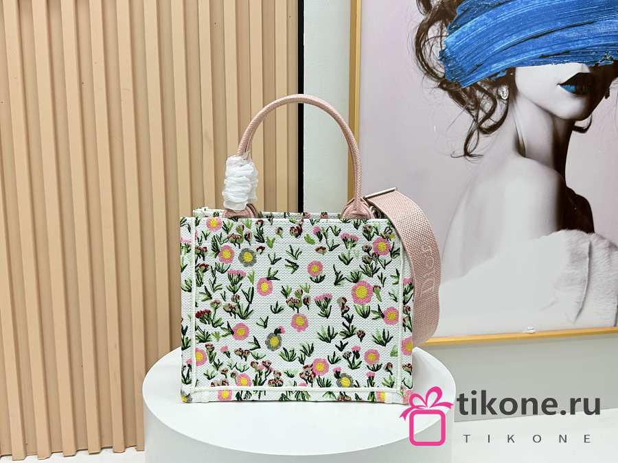Small Dior Book Tote Beige Millefiori Embroidery - 26.5x22x14cm