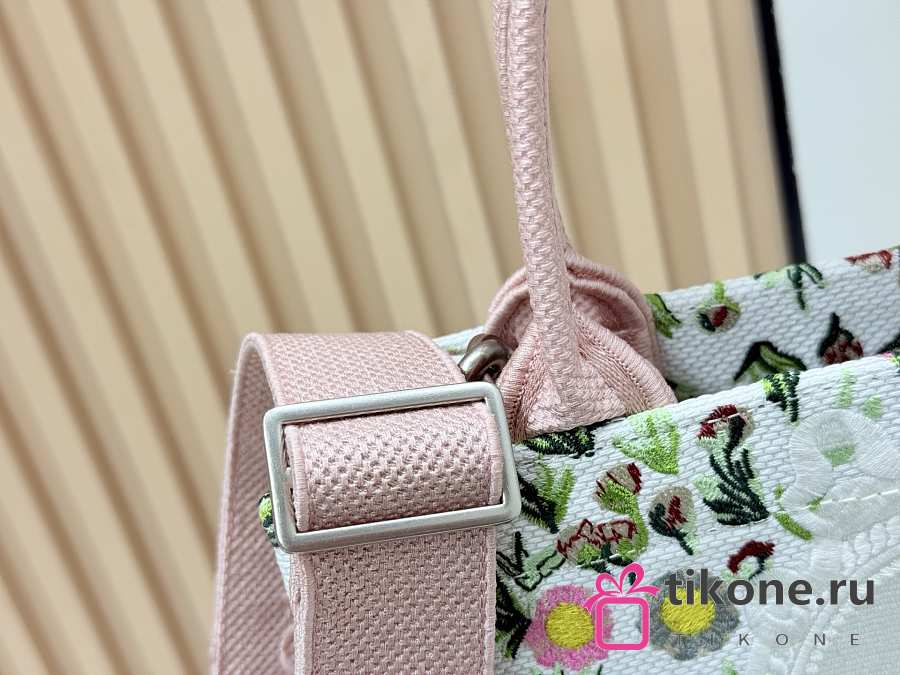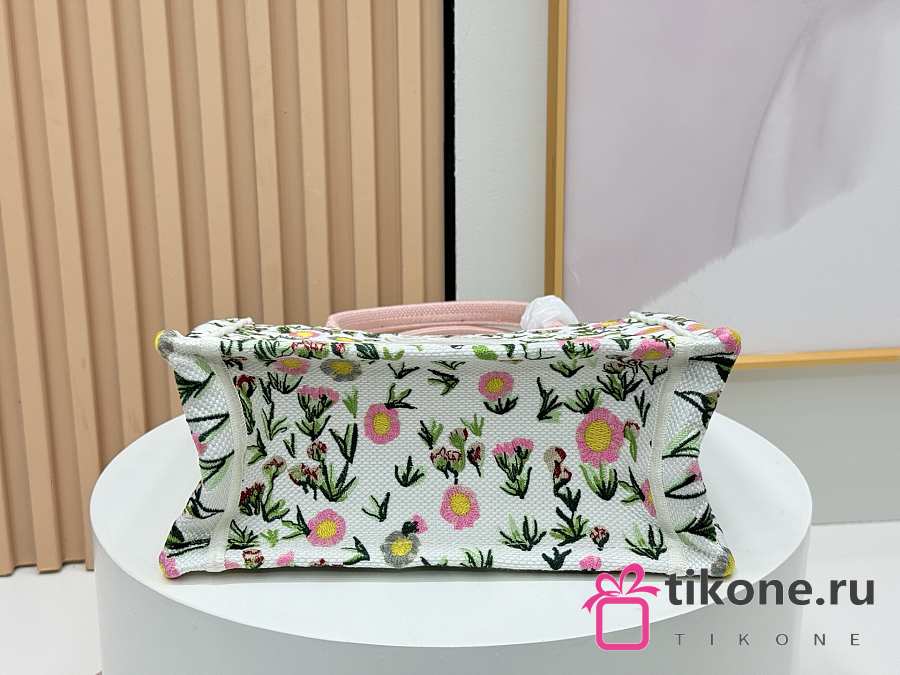 Small Dior Book Tote with Strap White Multicolor Daisy Garden Embroidery with Dior Medaillon - 26.5x22x14cm