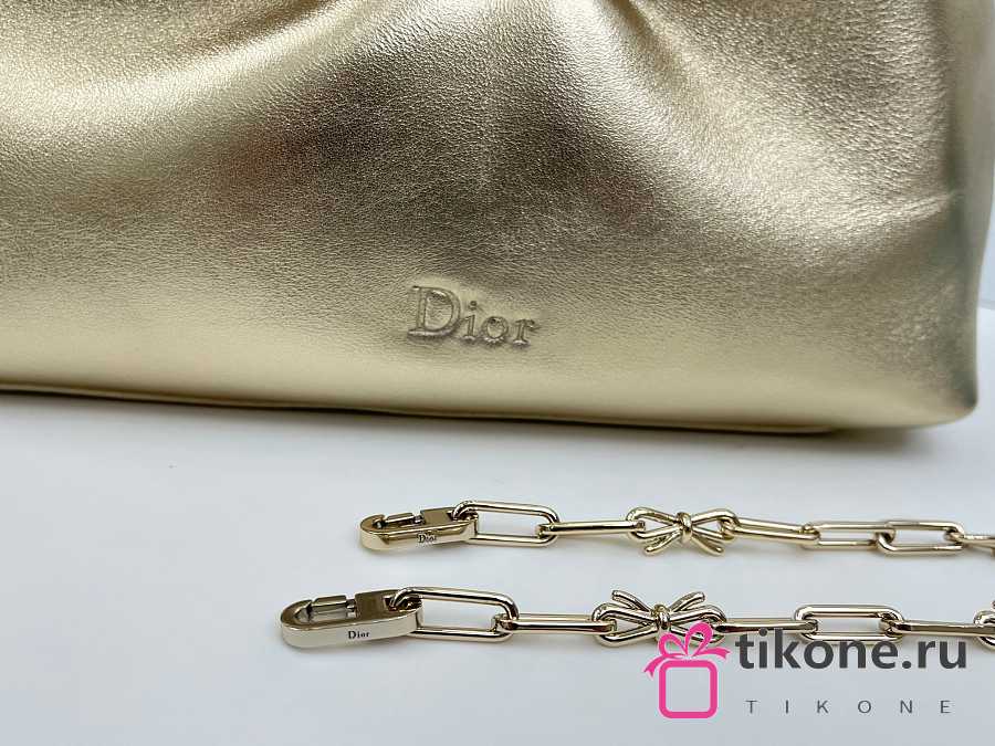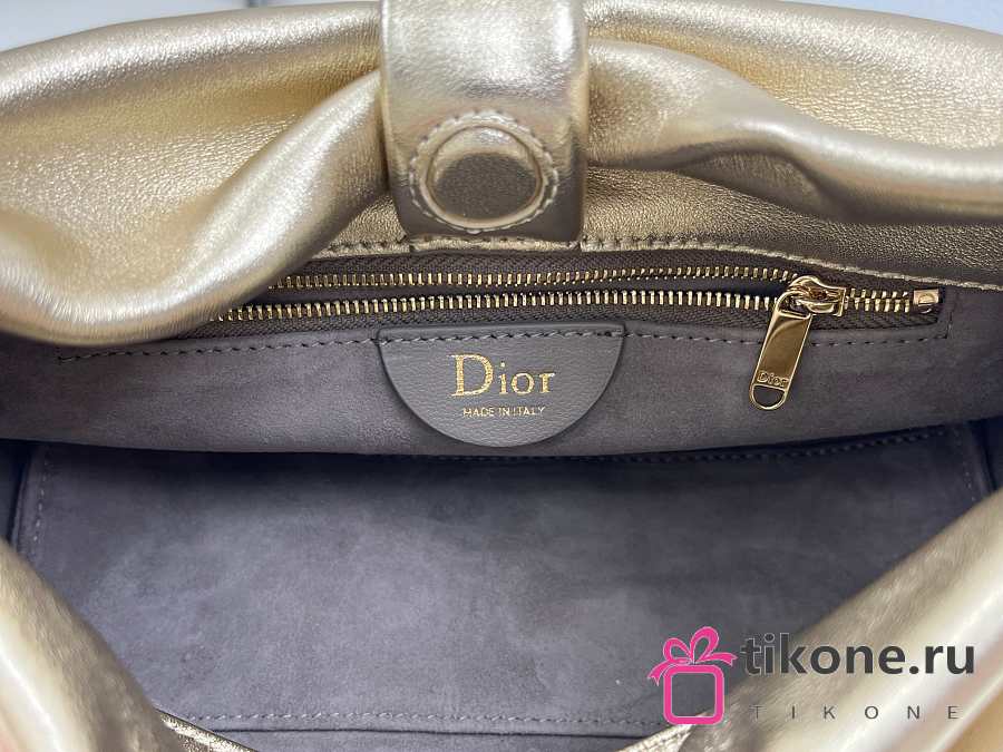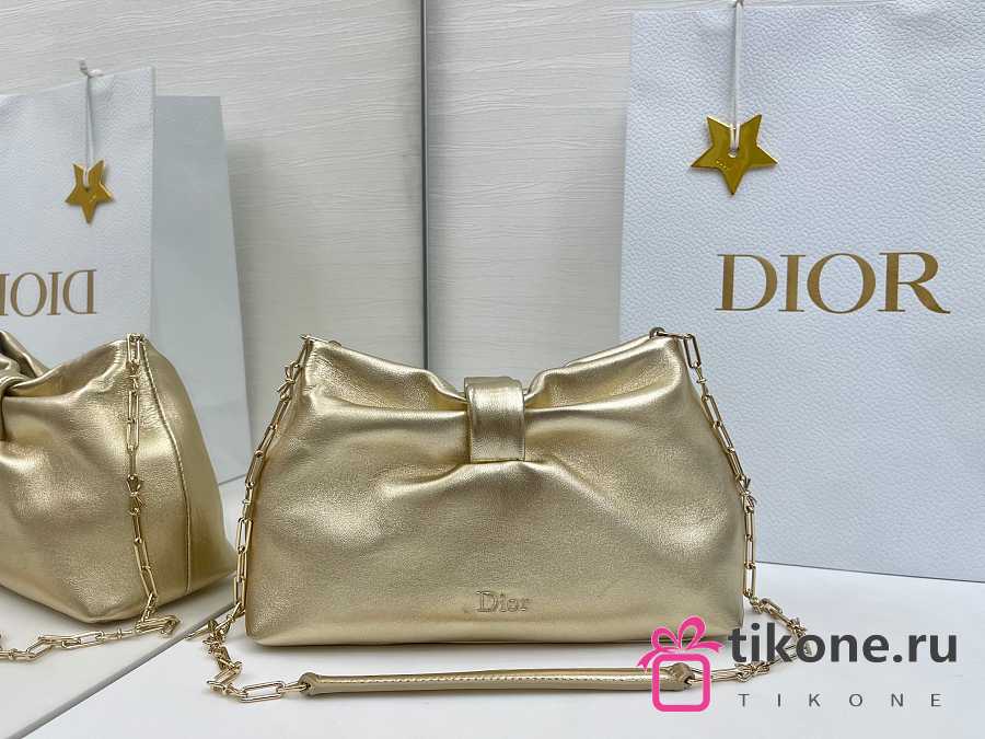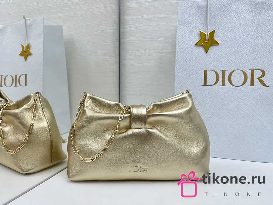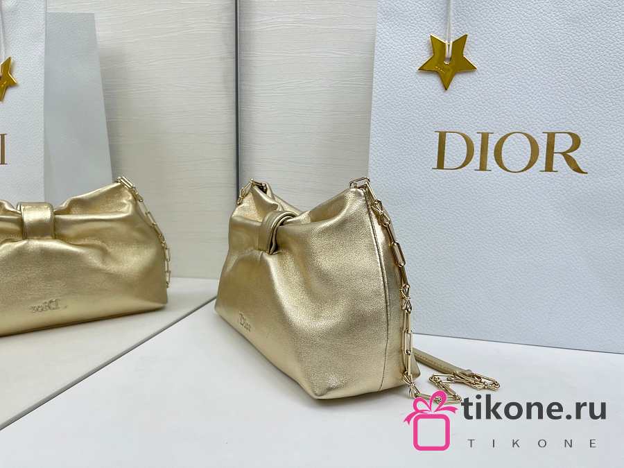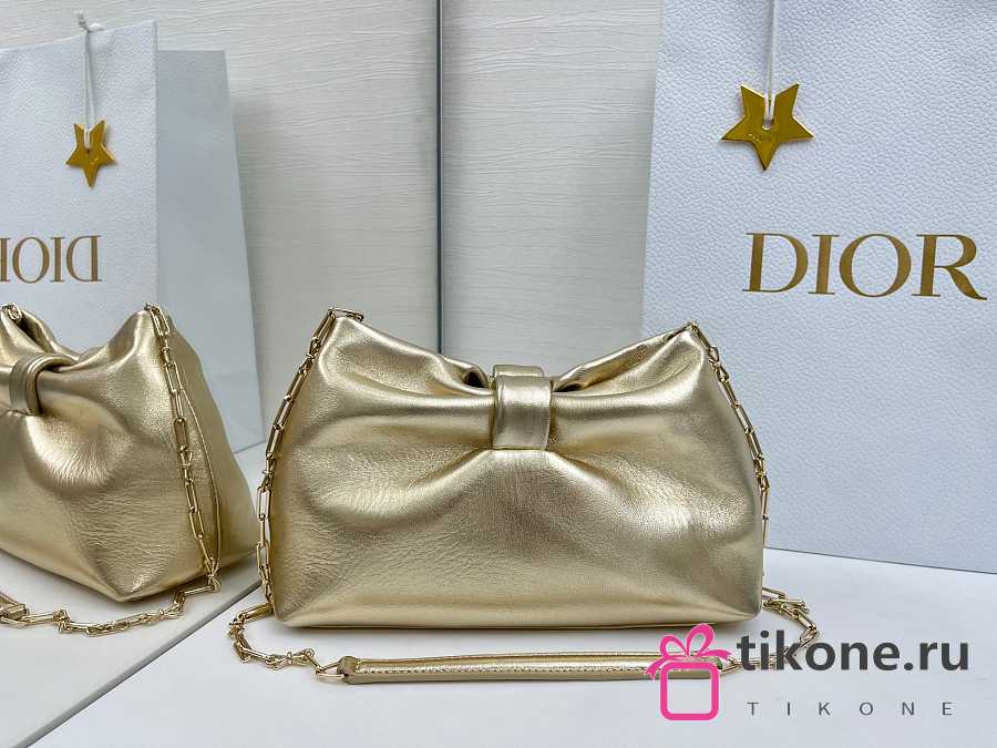 Small Dior Bow Bag Gold Laminated Lambskin - 26x16x10cm
