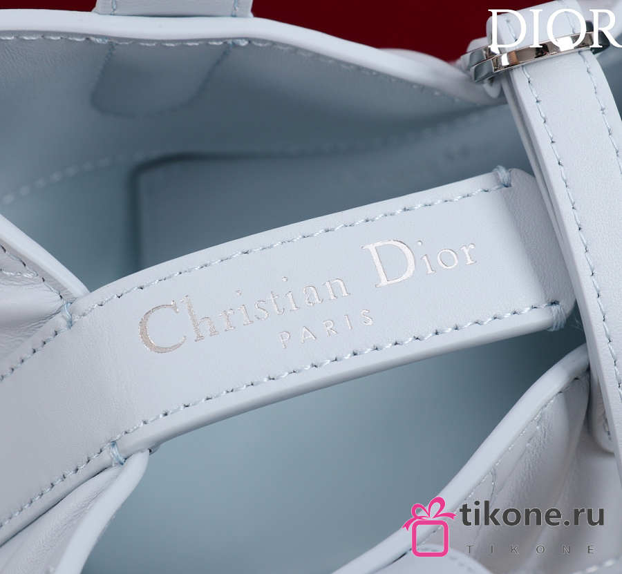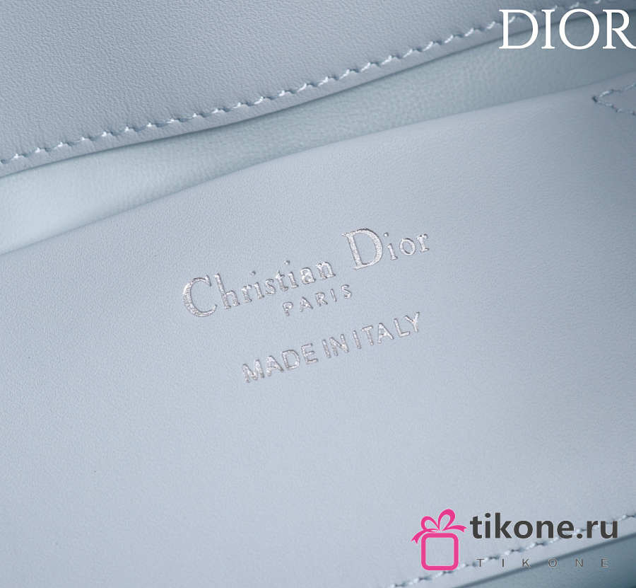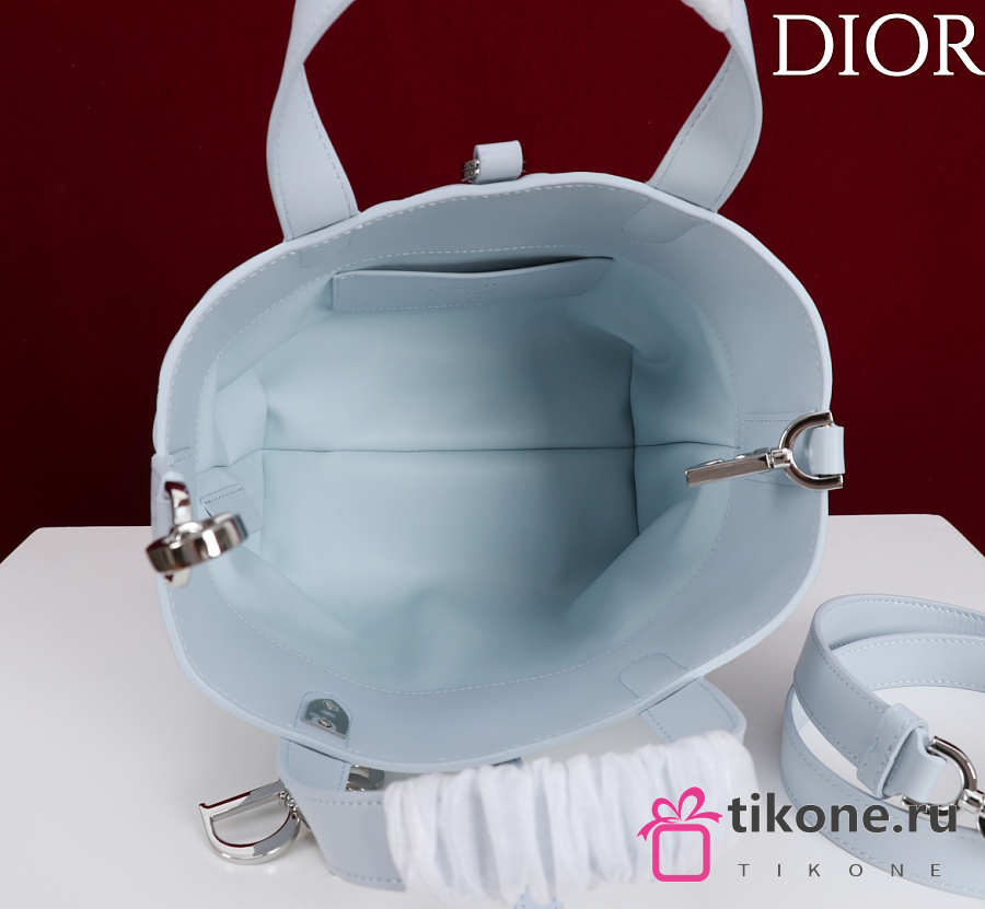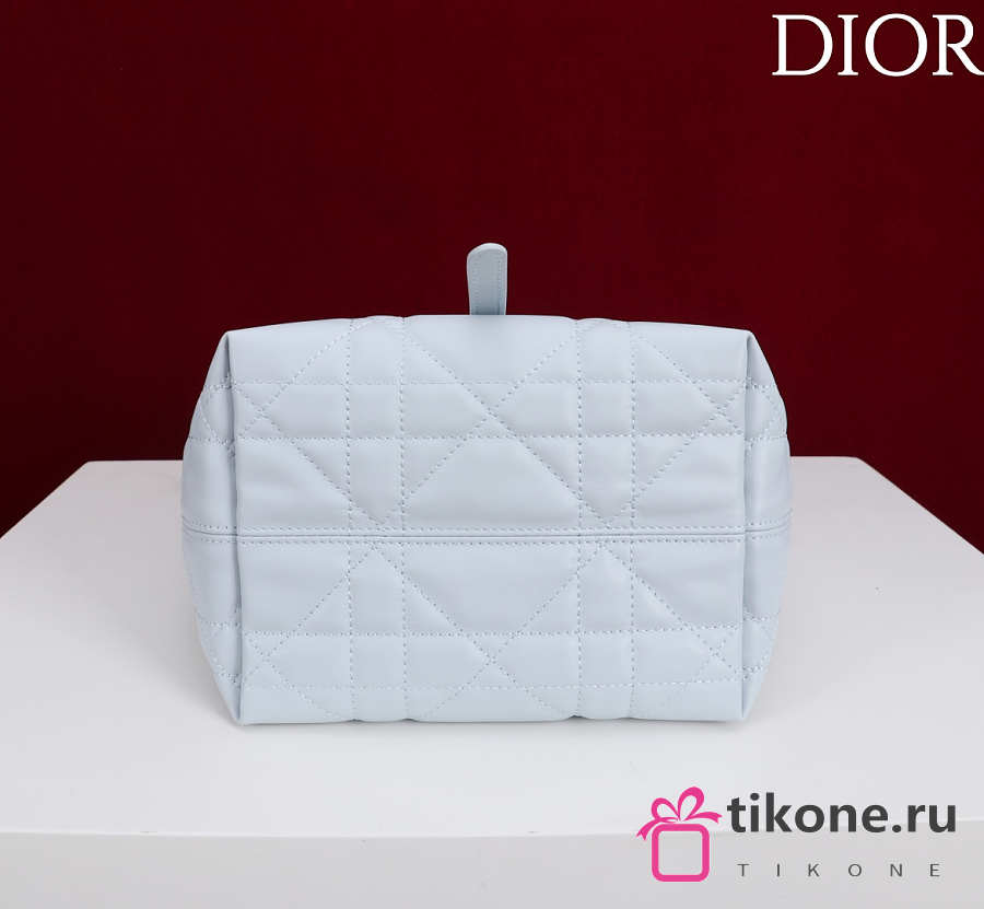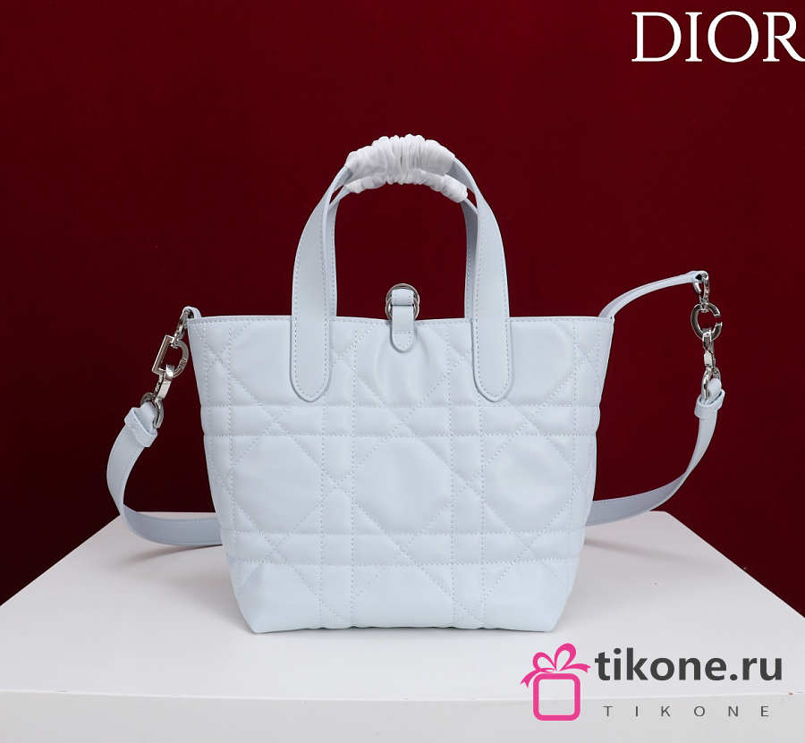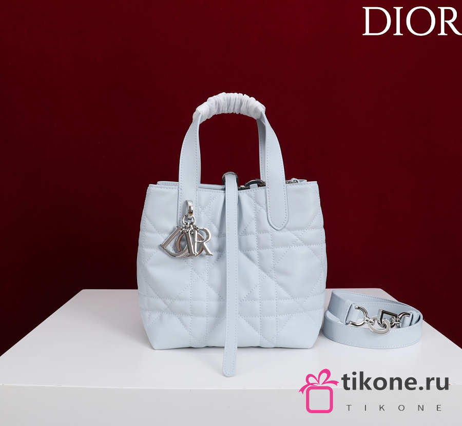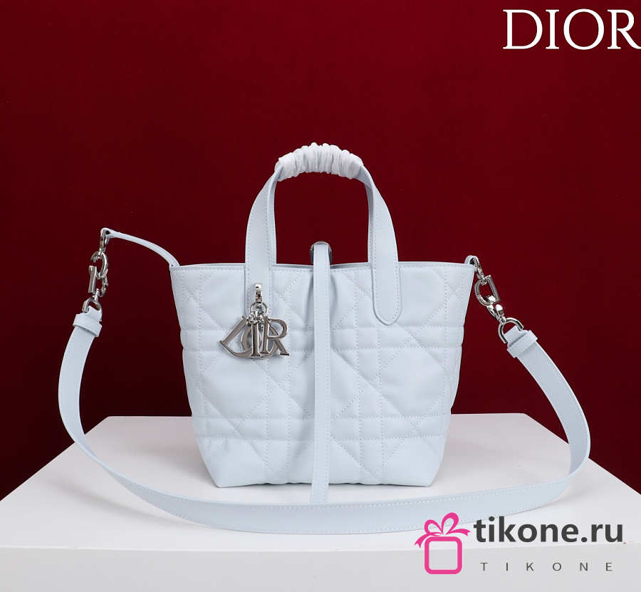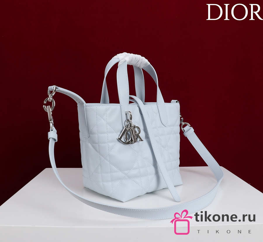 Small Dior Toujours Vertical Tote Bag Ice Blue Macrocannage Calfskin - 18x16x12cm
