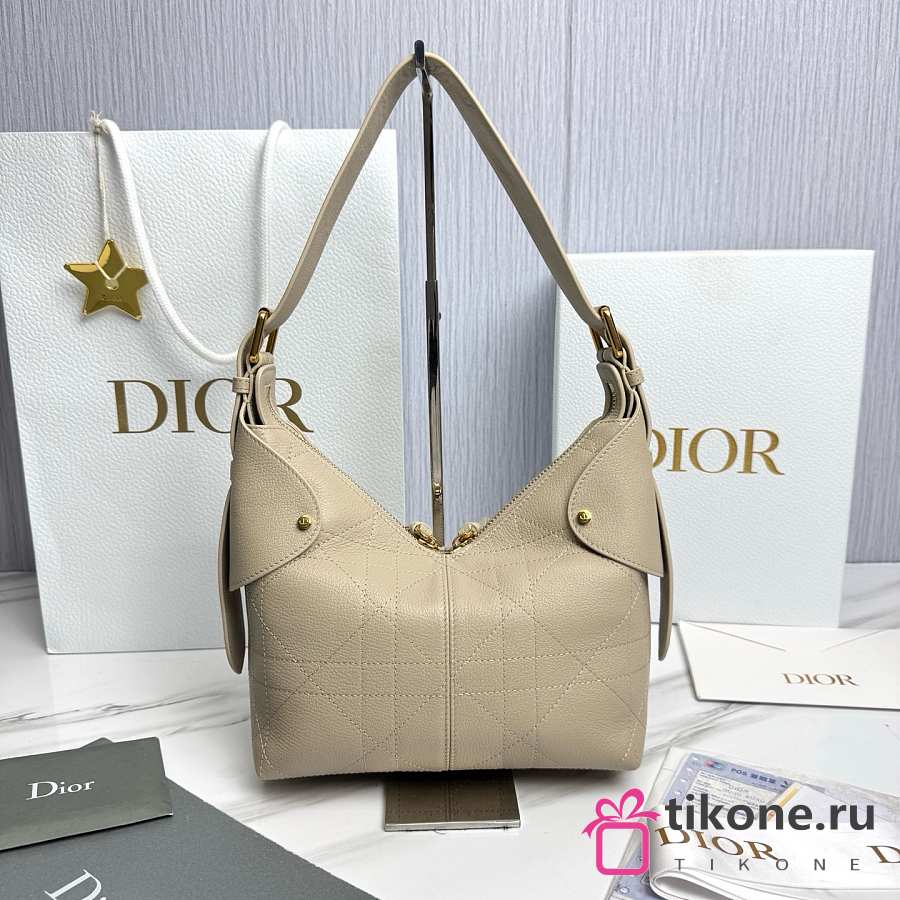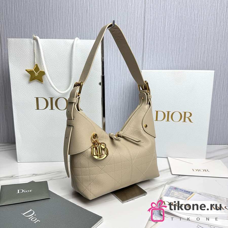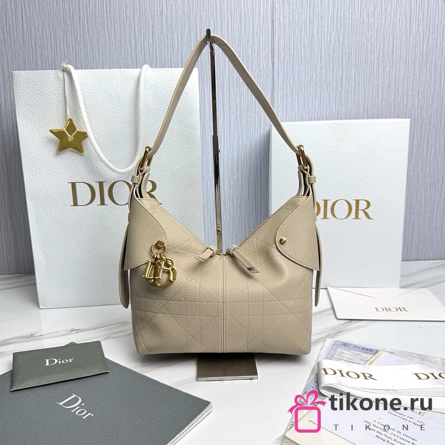 Small Dior Voyage Bag Beige Flat Macrocannage Grained Calfskin - 22x15x9.5cm