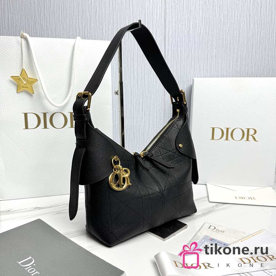 Medium Soft Dior Caro Bag Black Gold Macrocannage Lambskin - 25x16x9cm