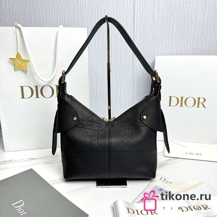 Small Dior Voyage Bag Black Flat Macrocannage Grained Calfskin - 22x15x9.5cm