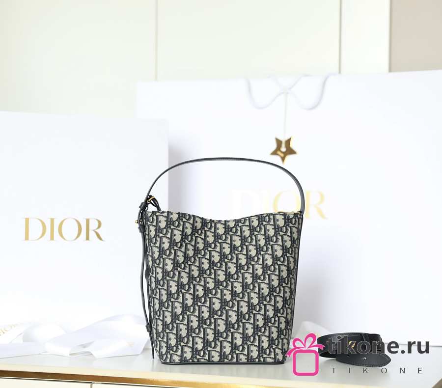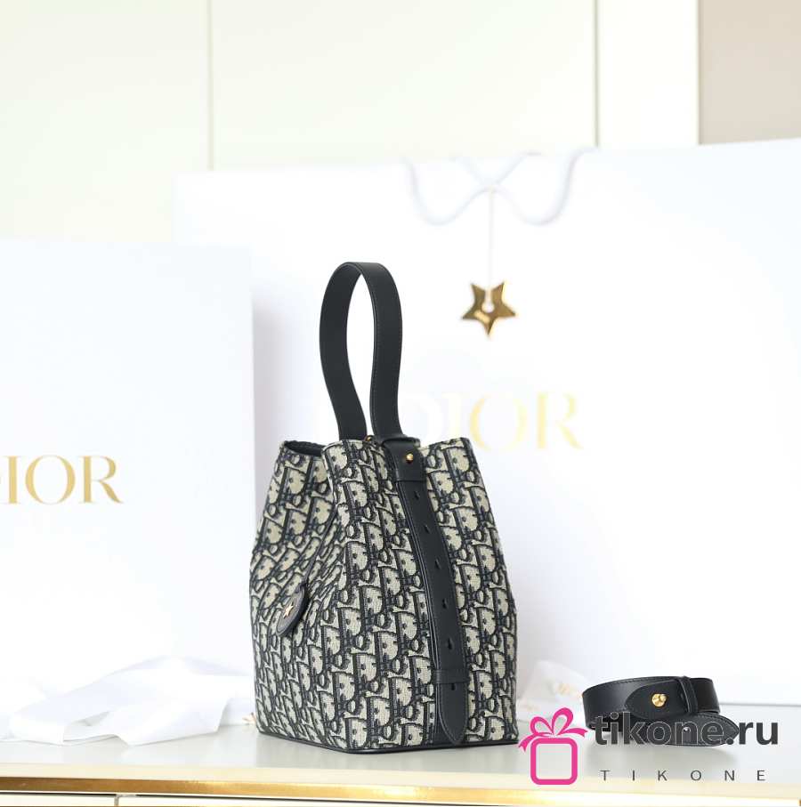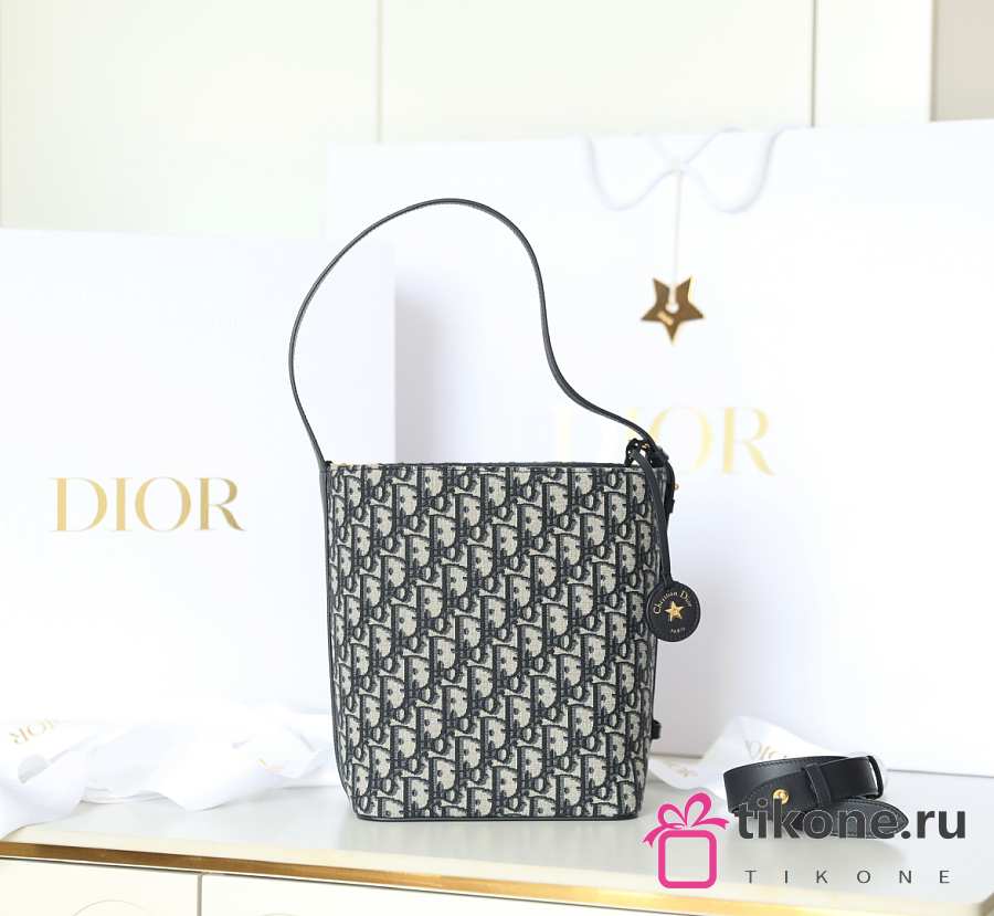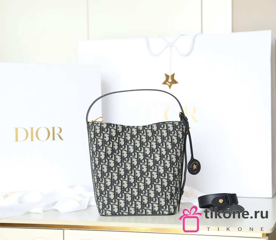 Small Diorstar Bucket Bag Blue Dior Oblique Jacquard - 24x24x15cn