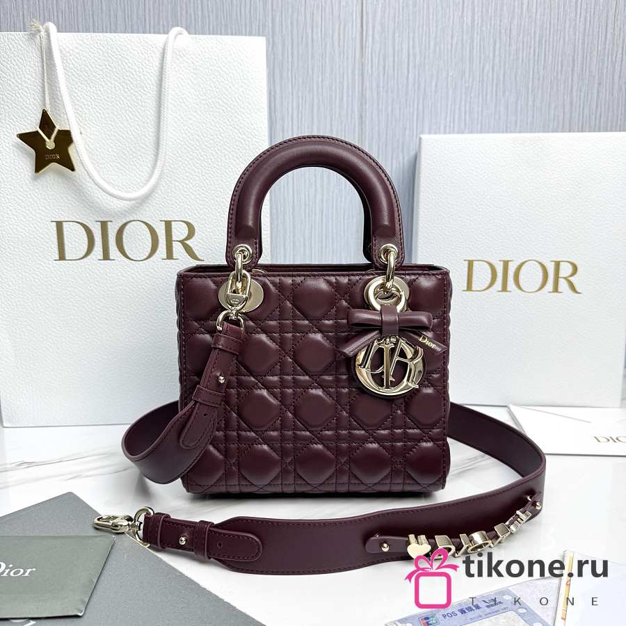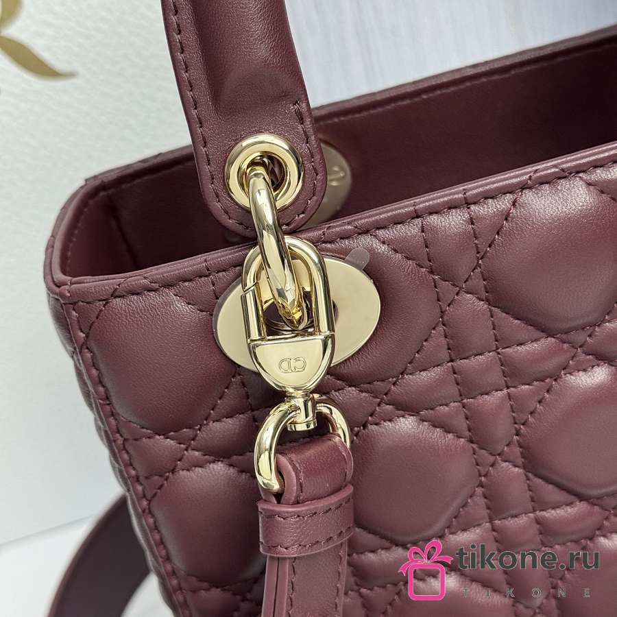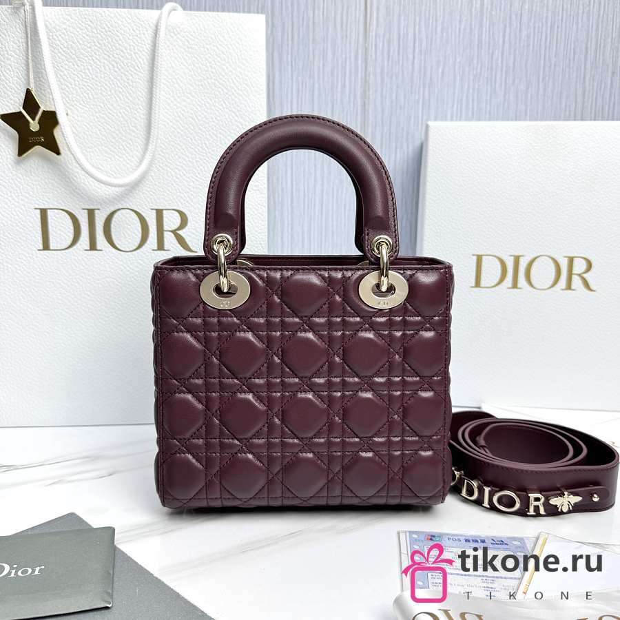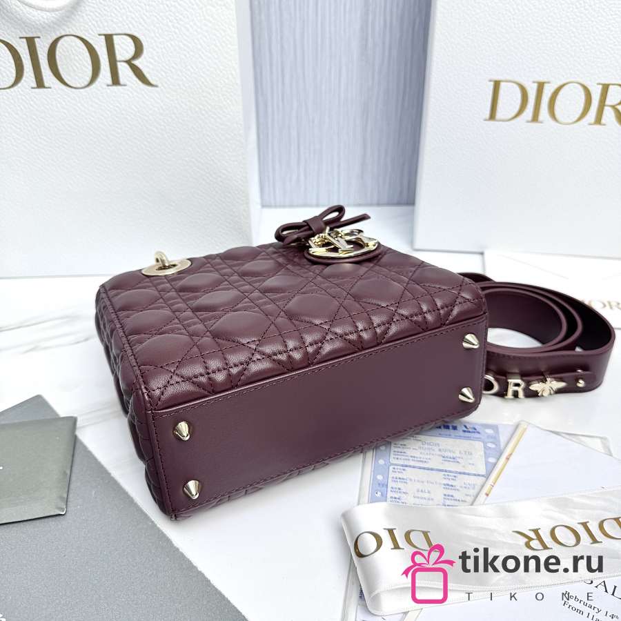 Small Lady Dior Bag with Strap Burgundy Cannage Lambskin - 20x18x8cm