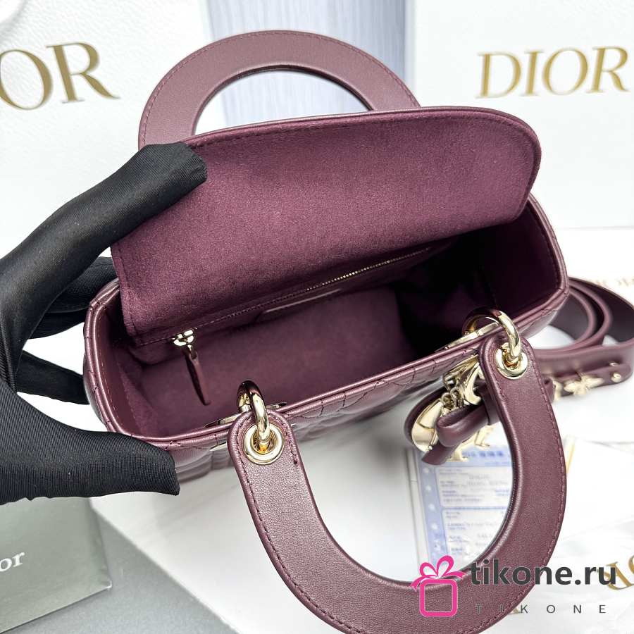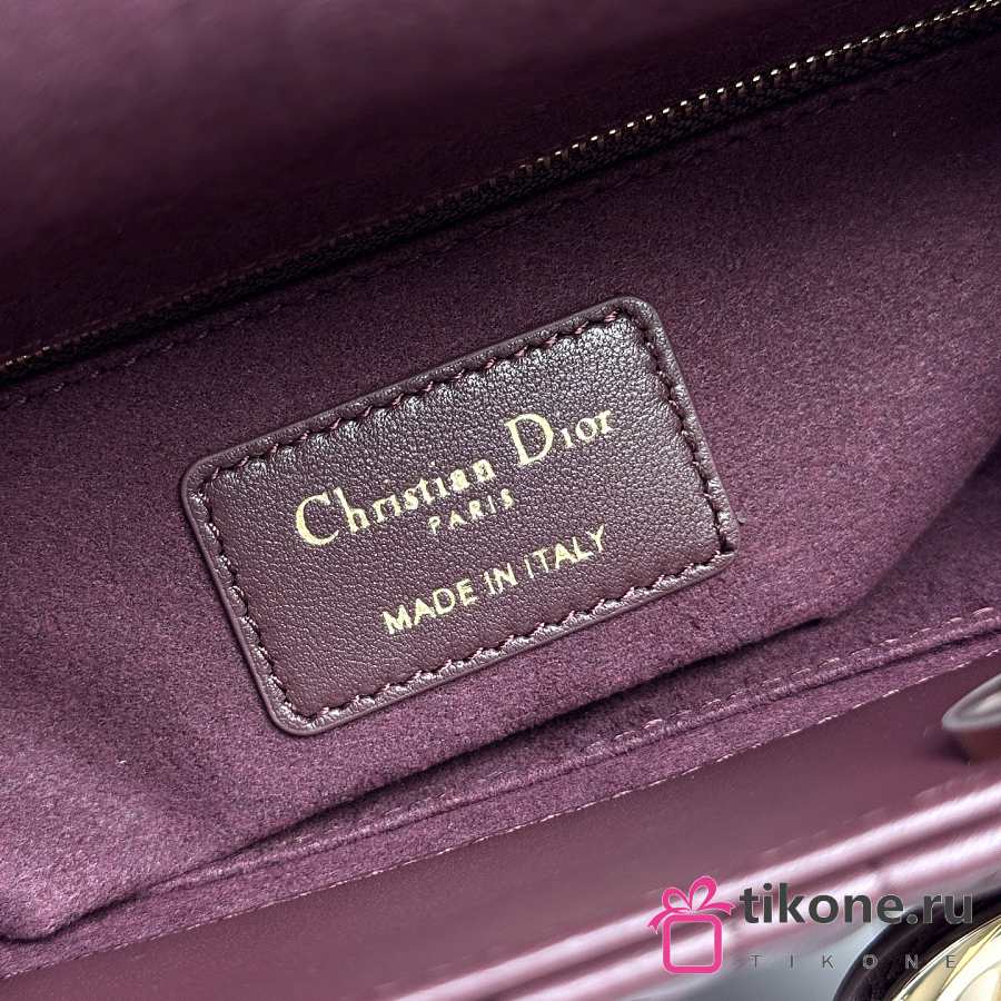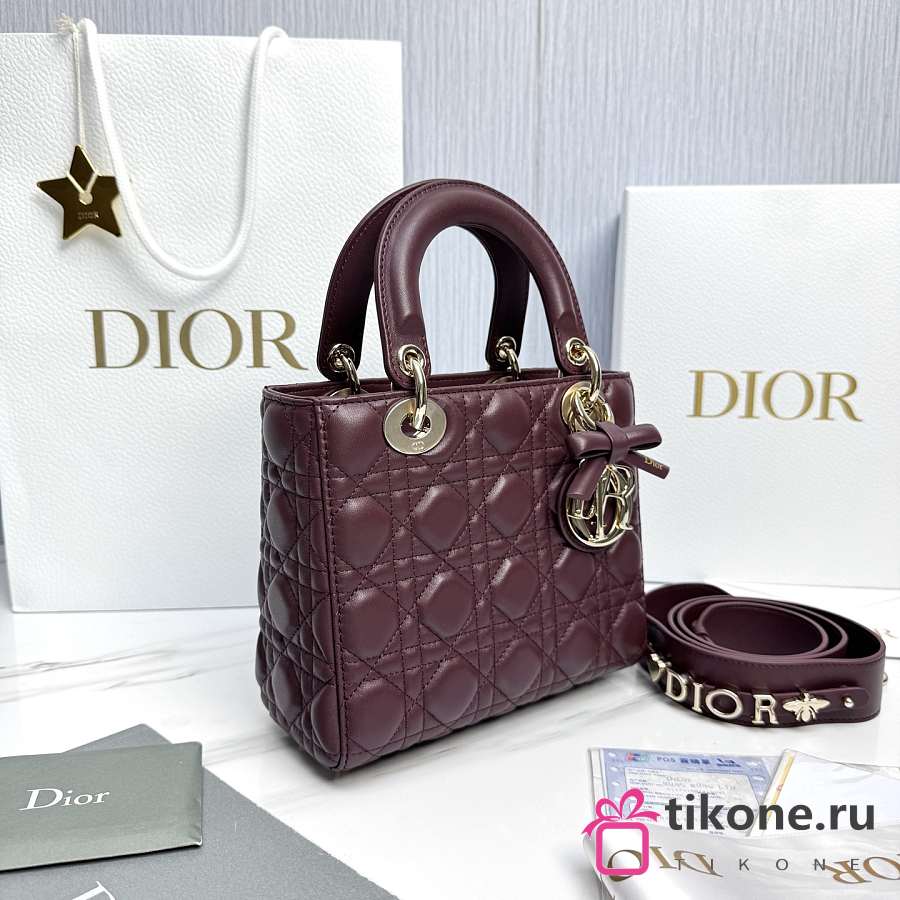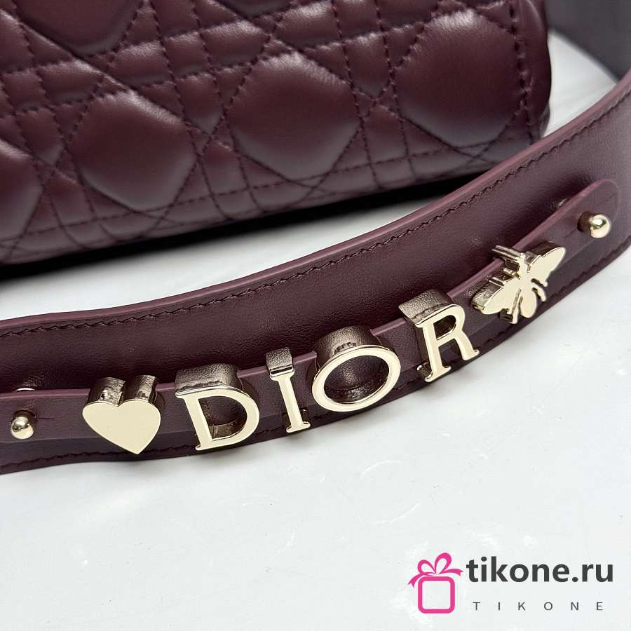Small Lady Dior Bag with Strap Burgundy Cannage Lambskin - 20x18x8cm