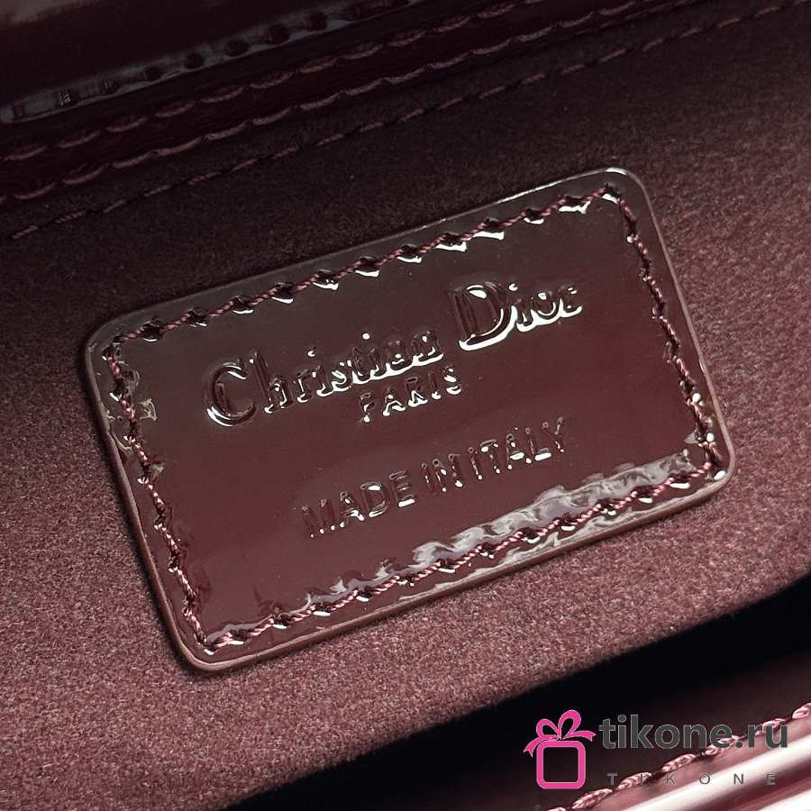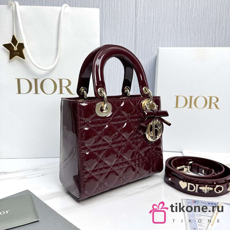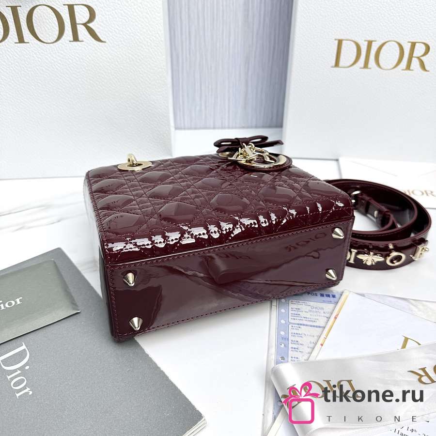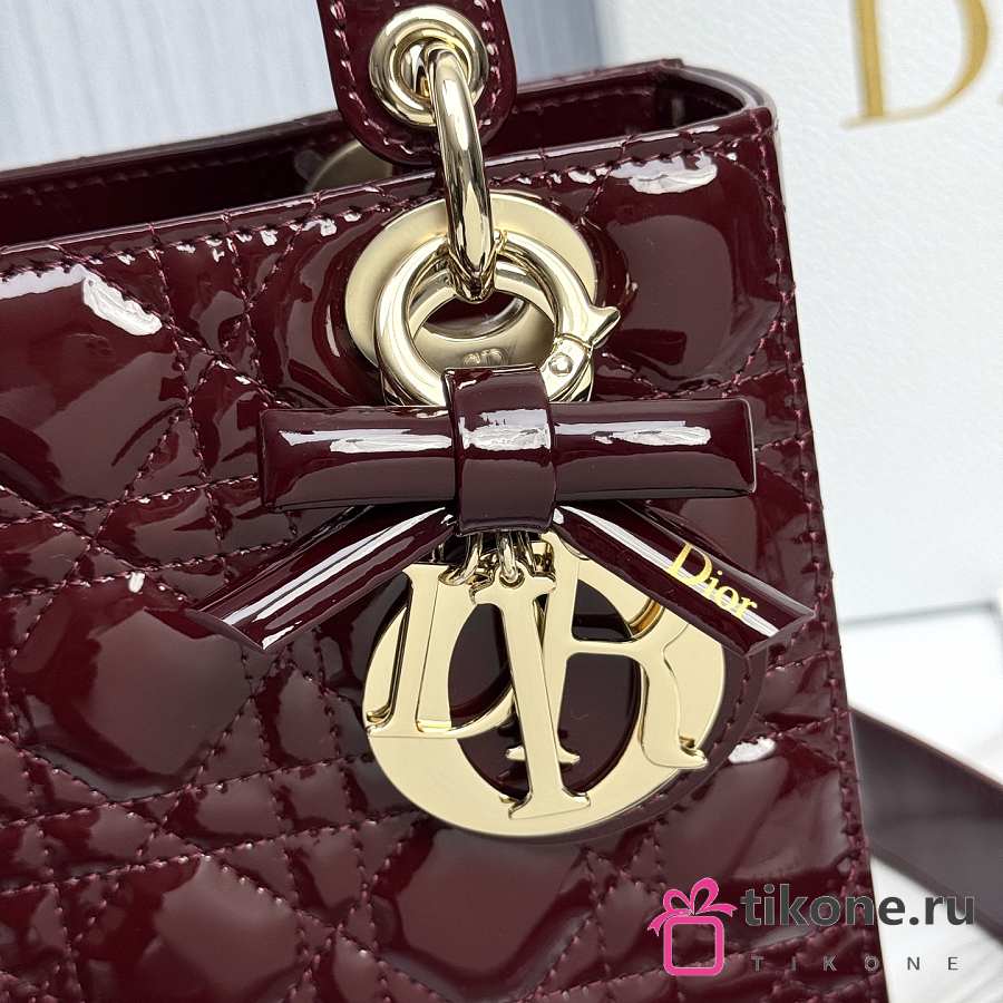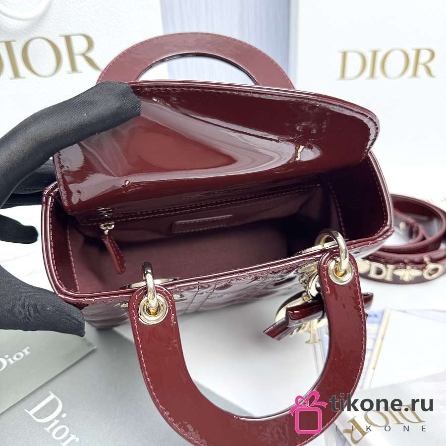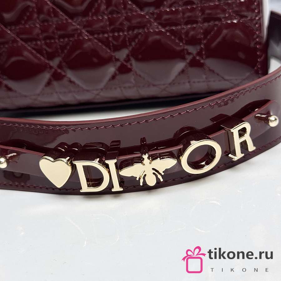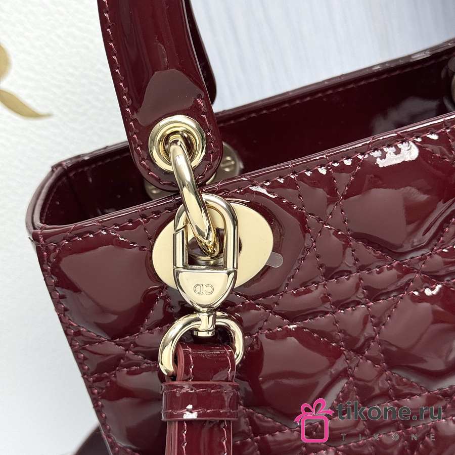 Small Lady Dior Bag with Strap Burgundy Patent Cannage Calfskin - 20x18x8cm