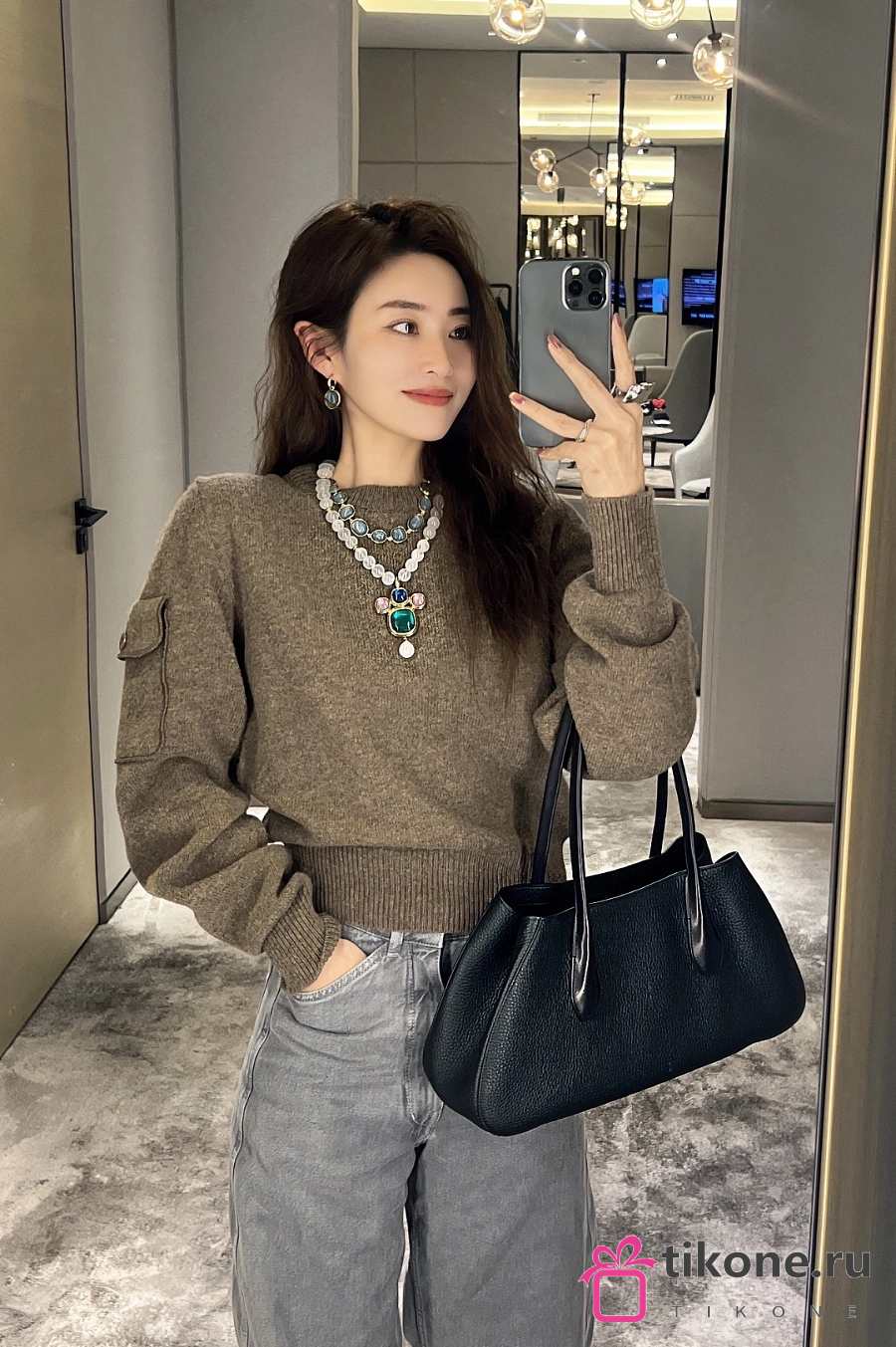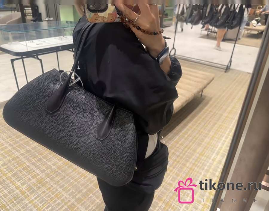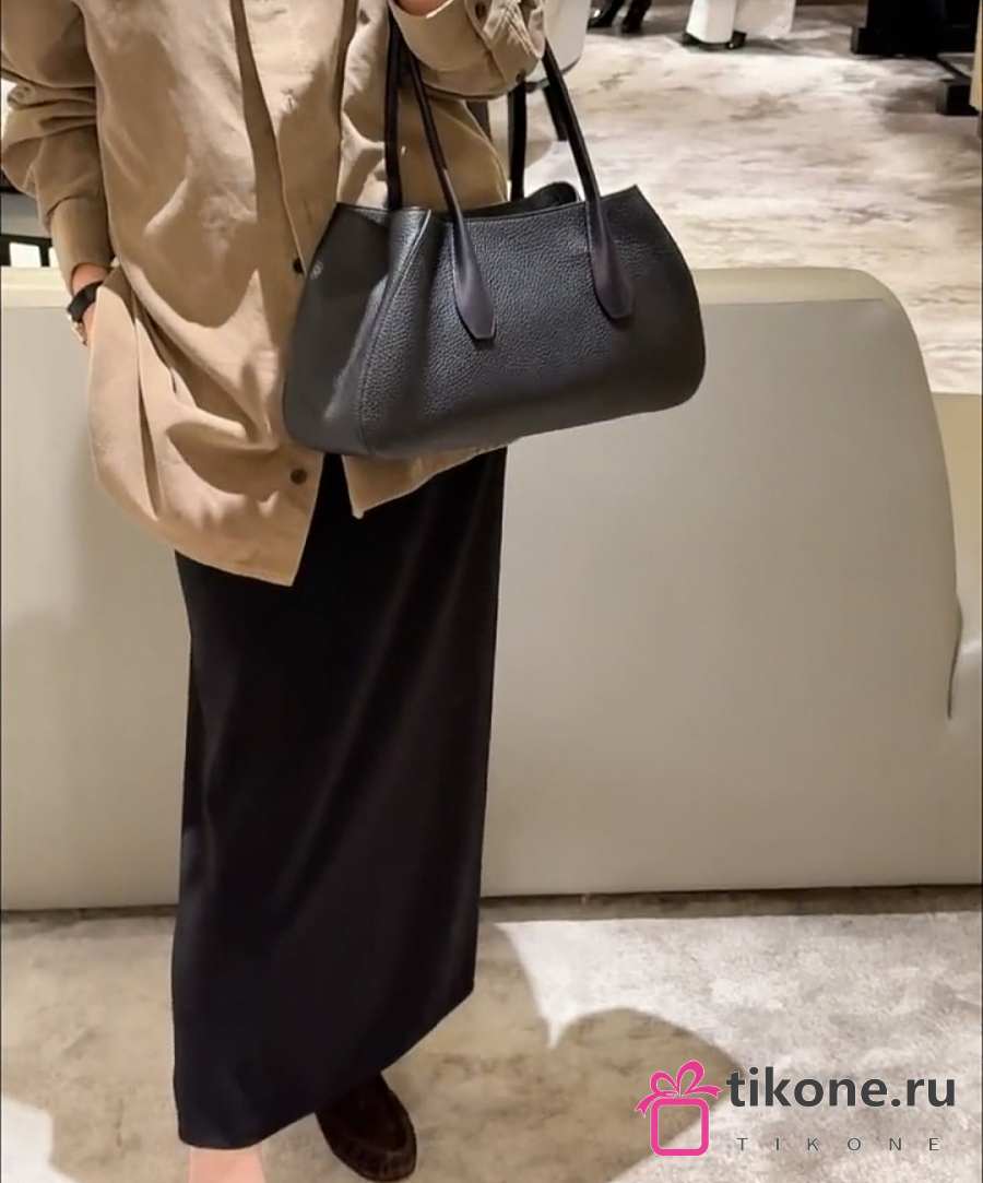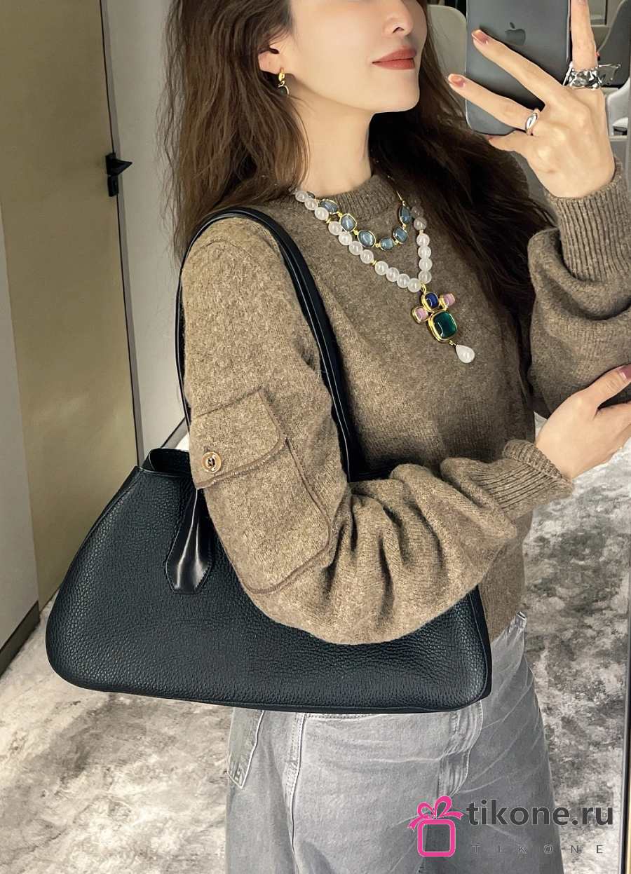 The Row Alger Shoulder Bag Textured Calfskin Leather in Black - 39x9.5x19cm