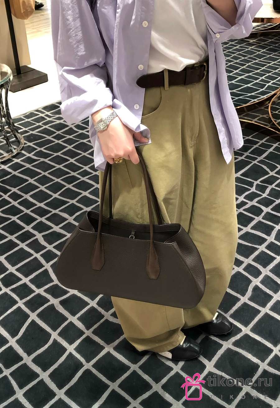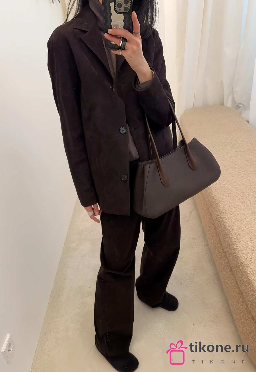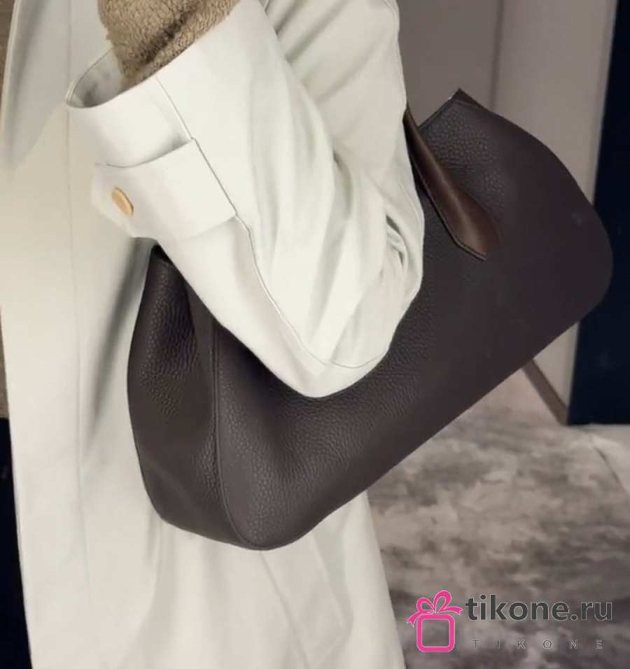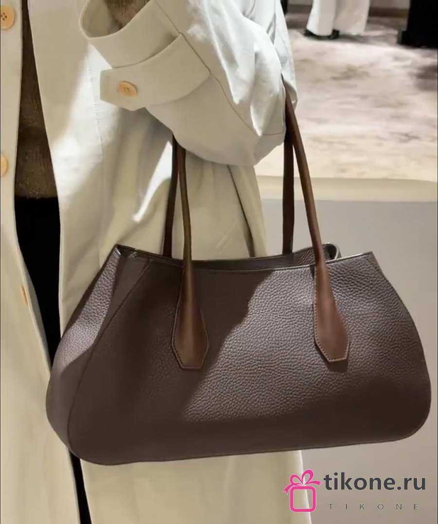 The Row Alger Shoulder Bag Textured Calfskin Leather in Brown - 39x9.5x19cm