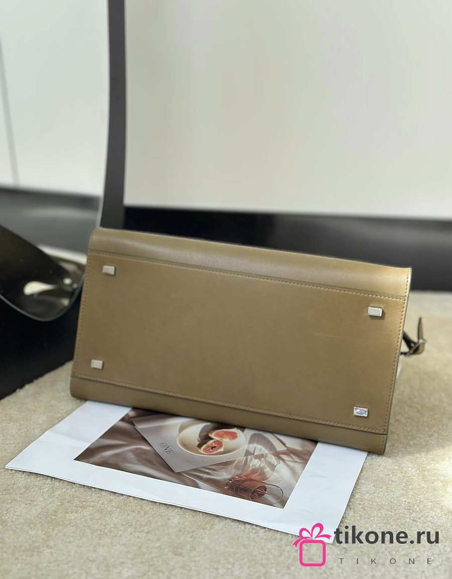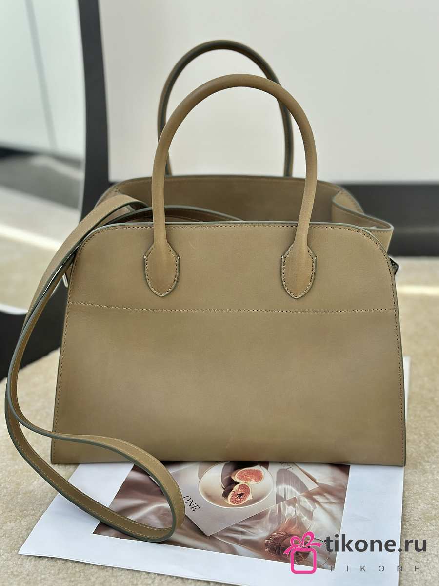 The Row Soft Margaux 12 Bag in Calfskin Leather Beige Brown - 30.5x23x19cm