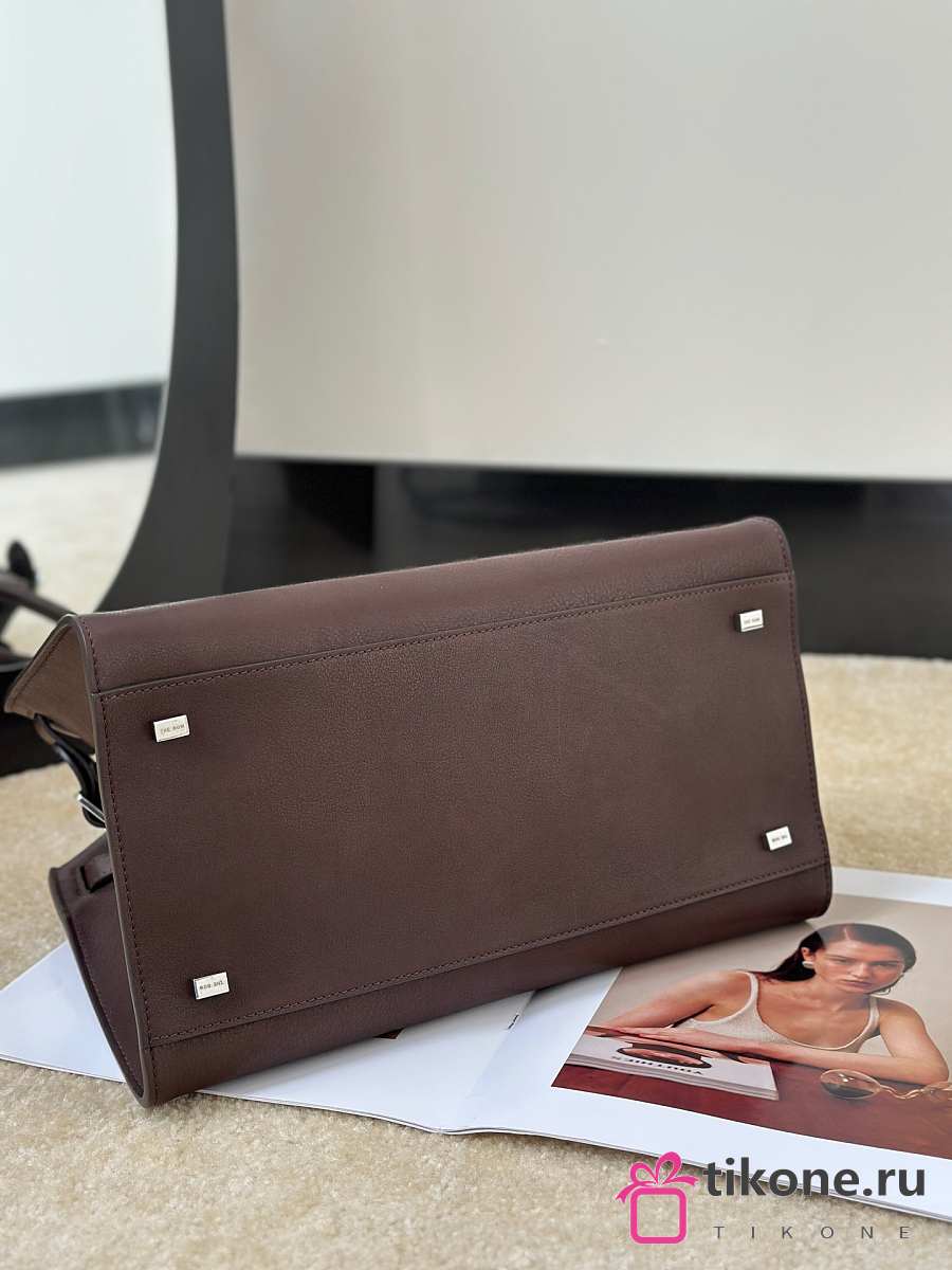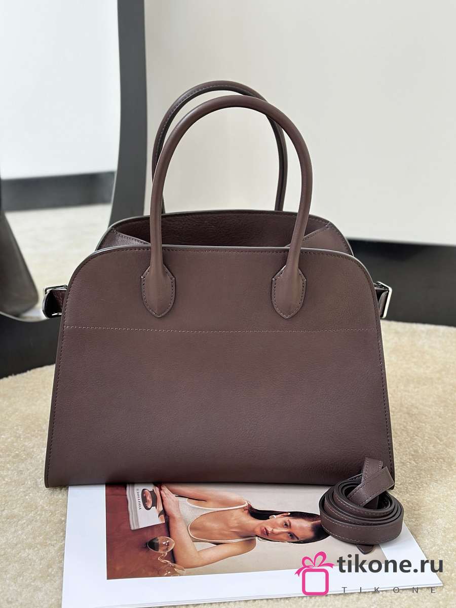 The Row Soft Margaux 12 Bag in Calfskin Leather Chocolate - 30.5x23x19cm