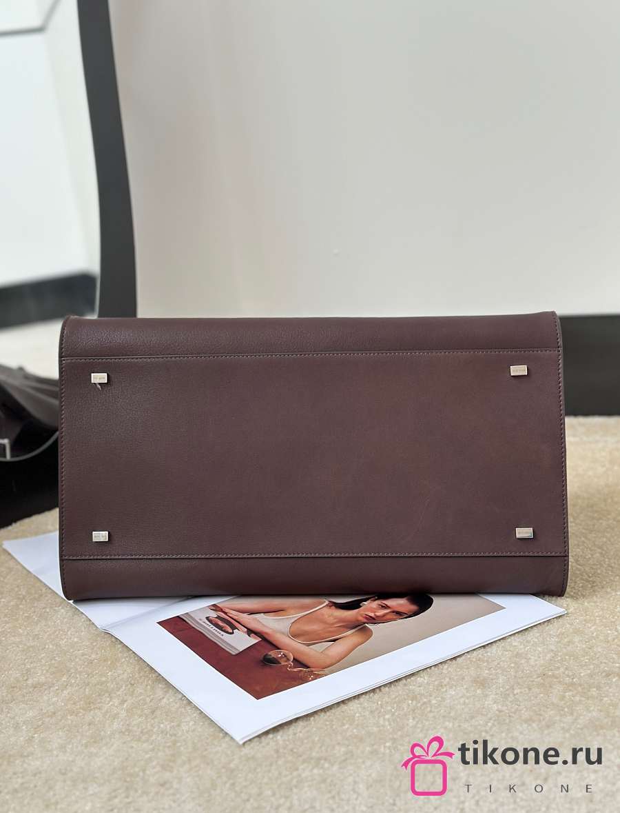 The Row Soft Margaux 15 Bag in Calfskin Leather Chocolate - 38x24x27cm