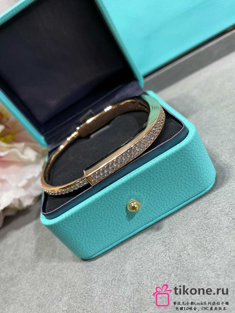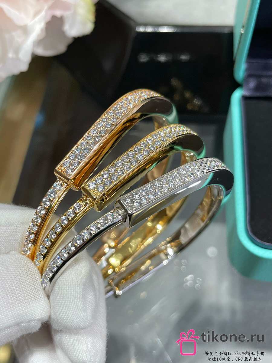 Tiffany Lock Bangle in Yellow/Rose/White with Full Pavé Diamonds