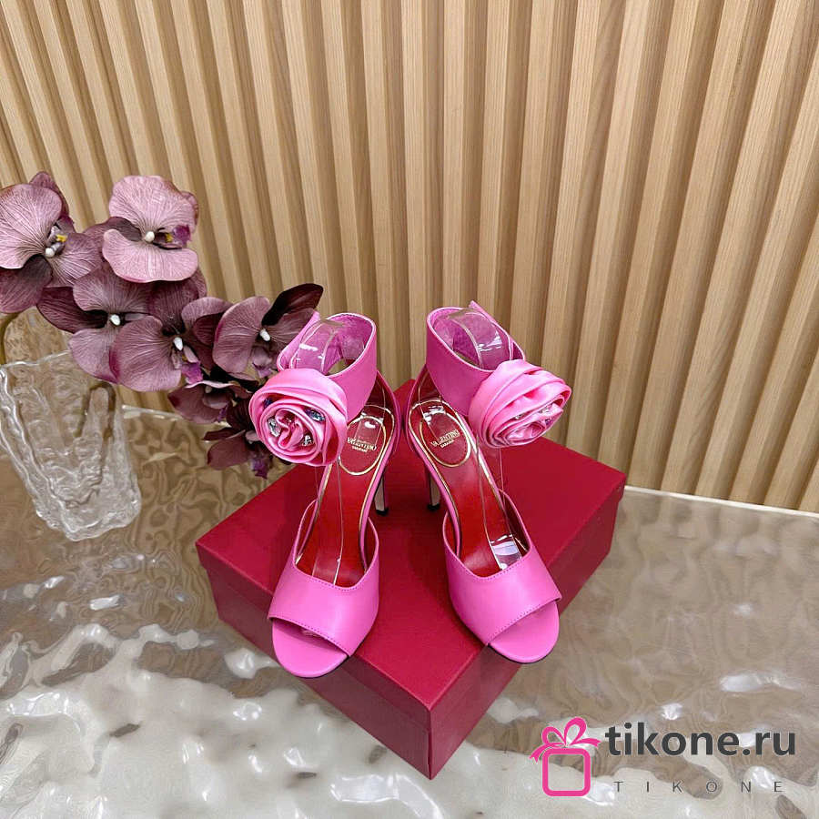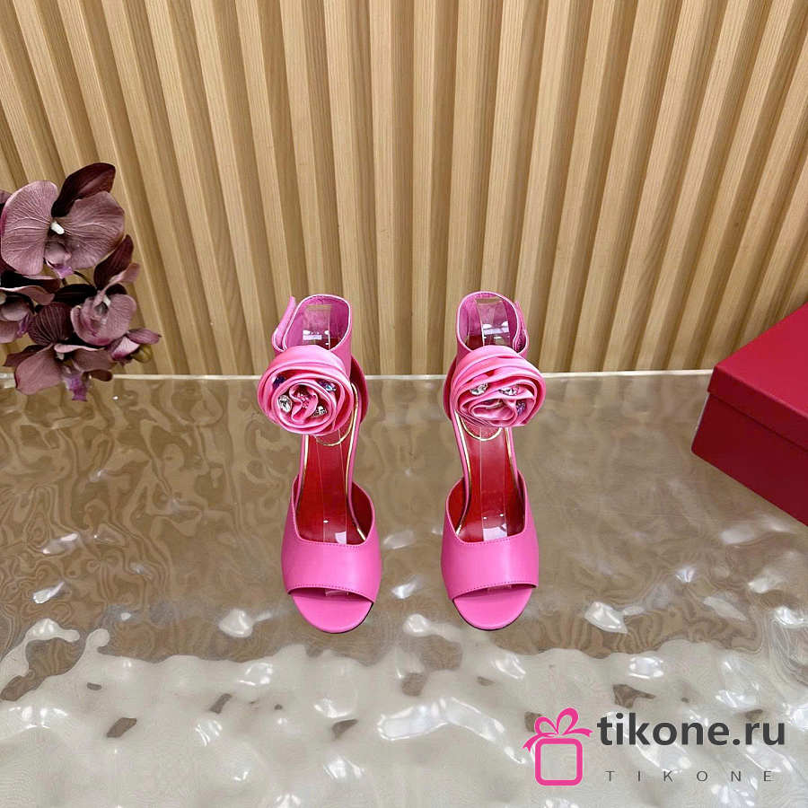 Valentino Drip Rose Kidskin Sandal With Crystals 105mm Pink