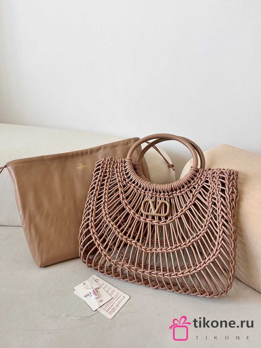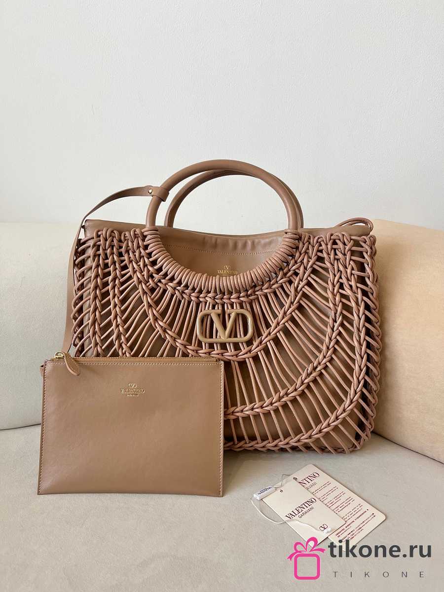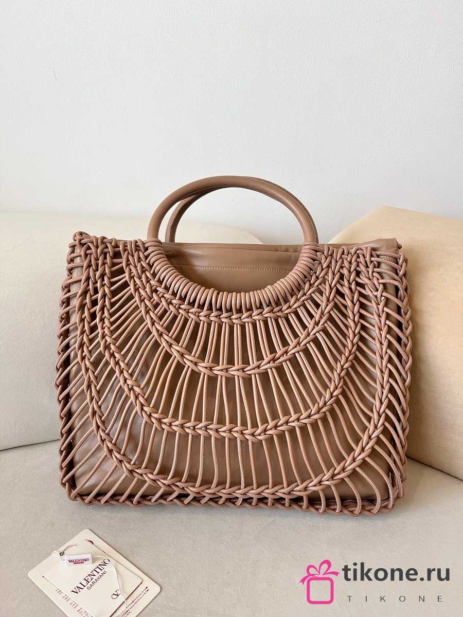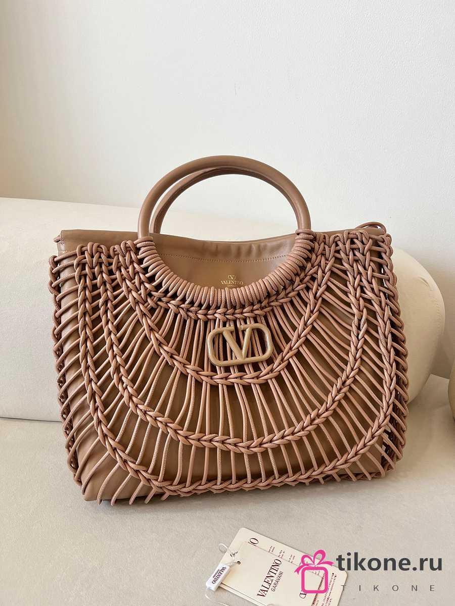 Valentino Garavani AllKnots Woven Leather Shopper in Beige - 38x34x7cm