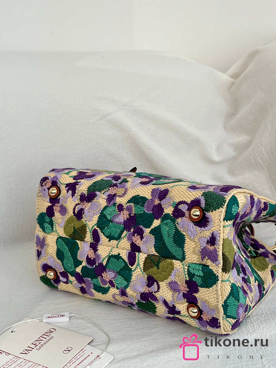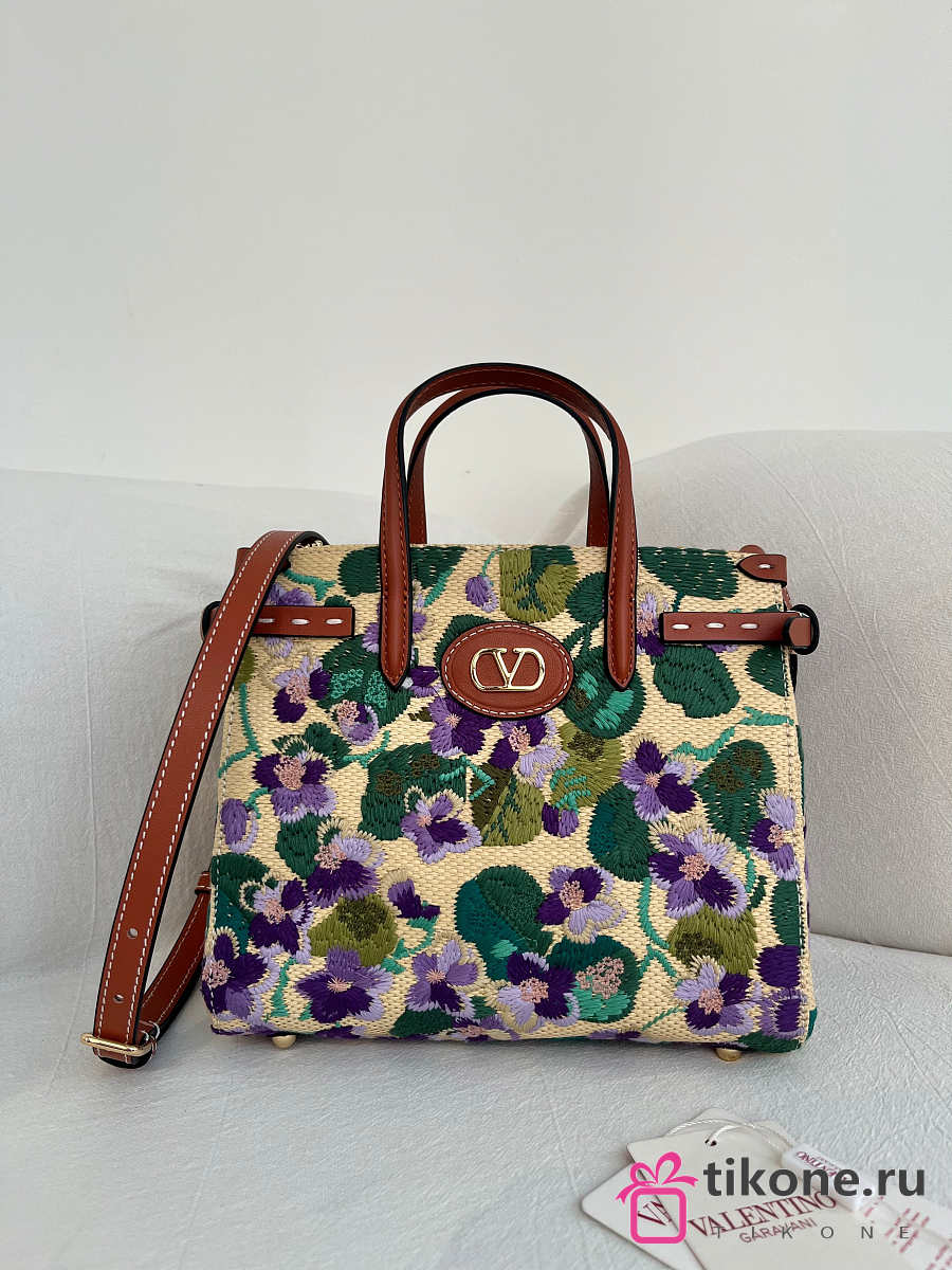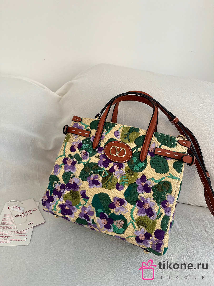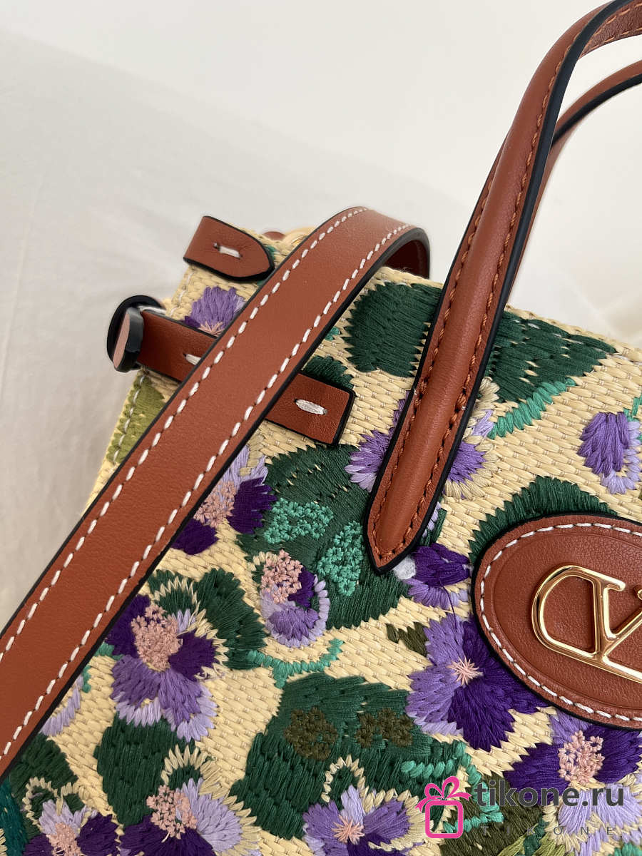Valentino Garavani Antibes Small Raffia Shopping Bag With Embroidery - 22x19x12cm