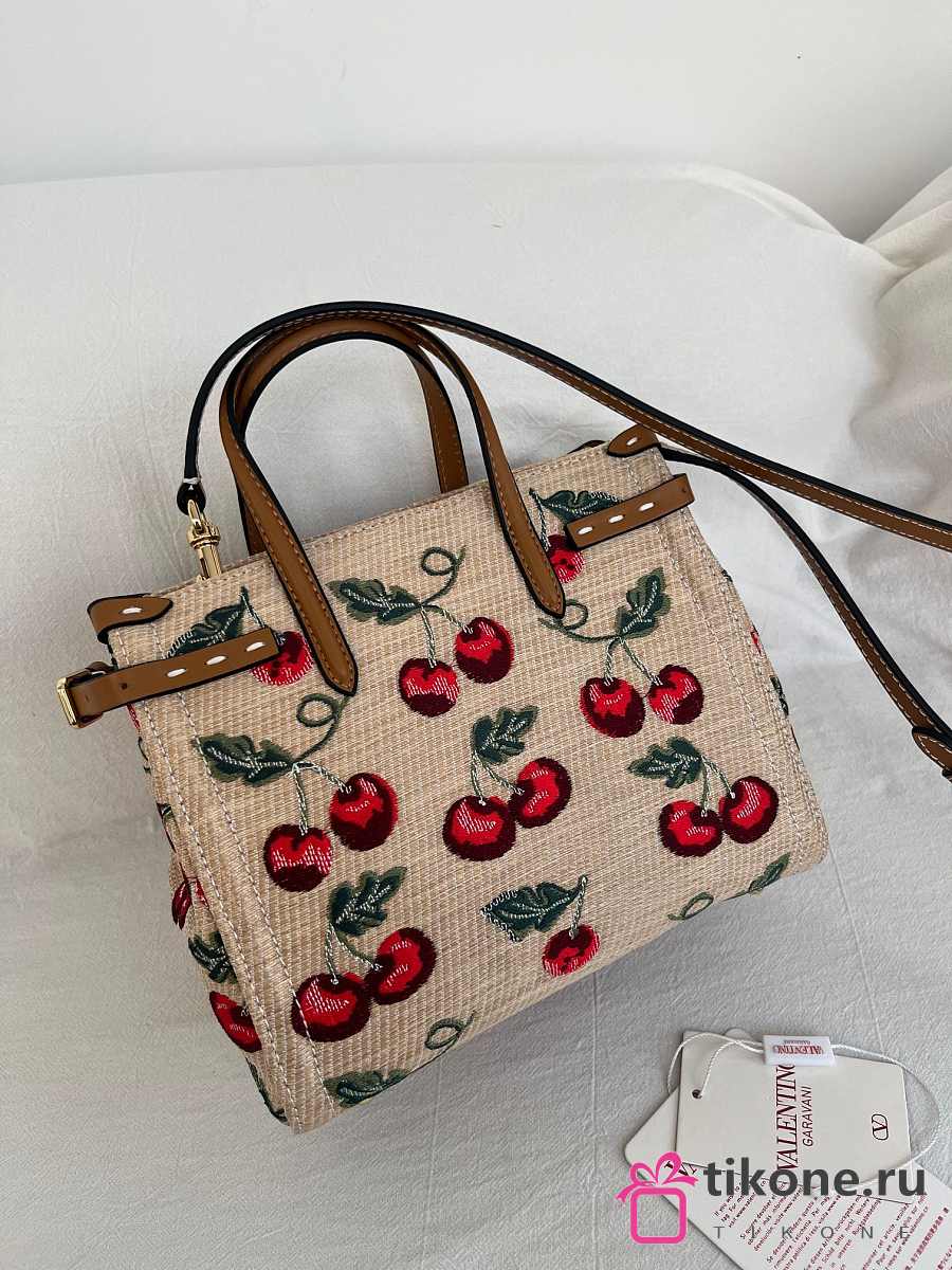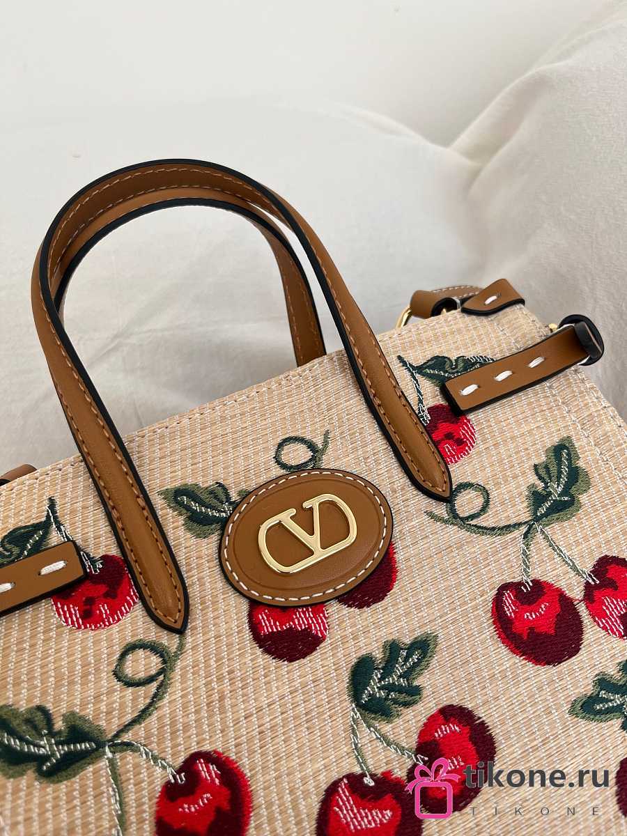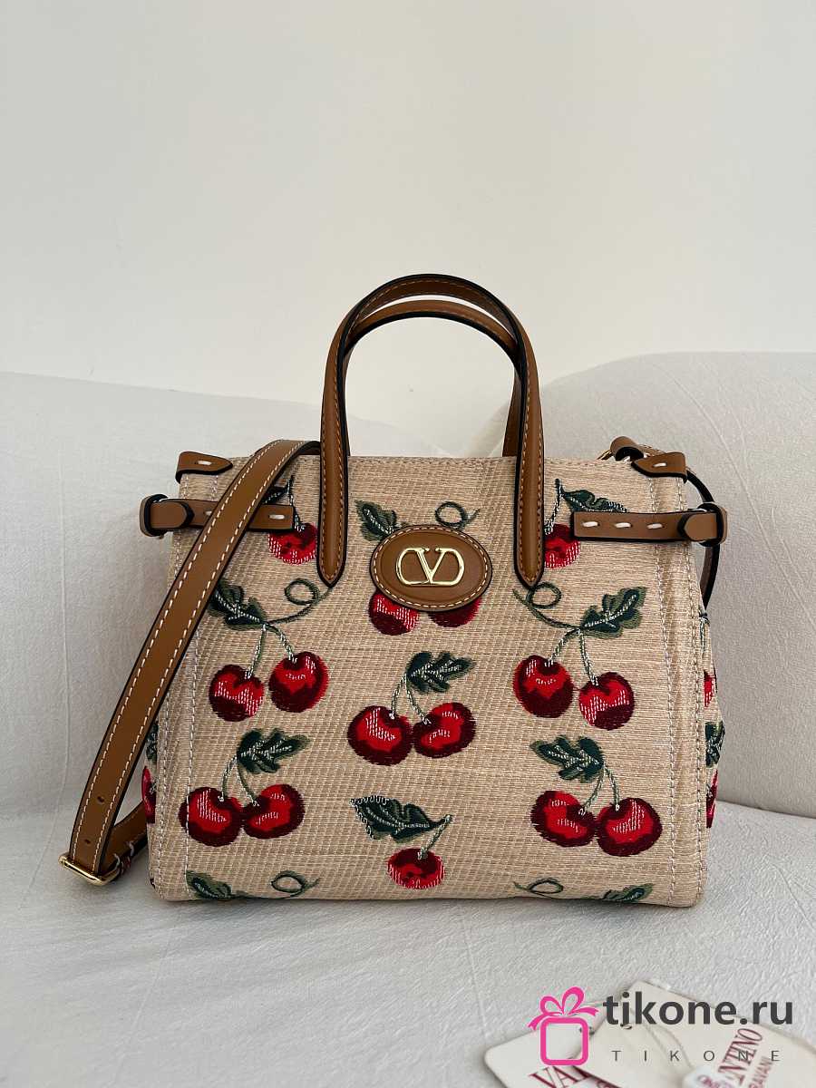 Valentino Garavani Antibes Small Shopping Bag In Jacquard Raffia With Cherryfic Pattern - 22x19x12cm