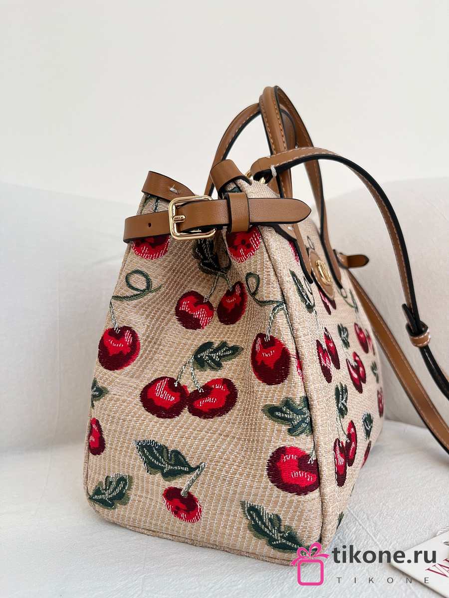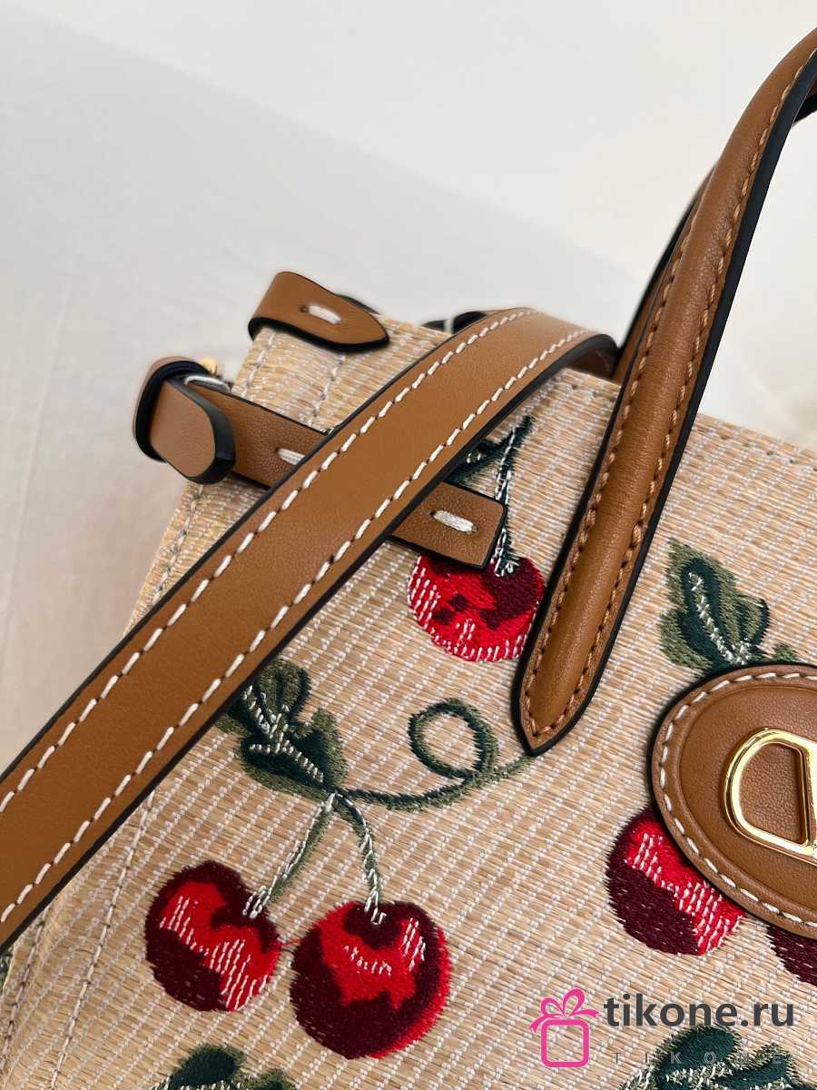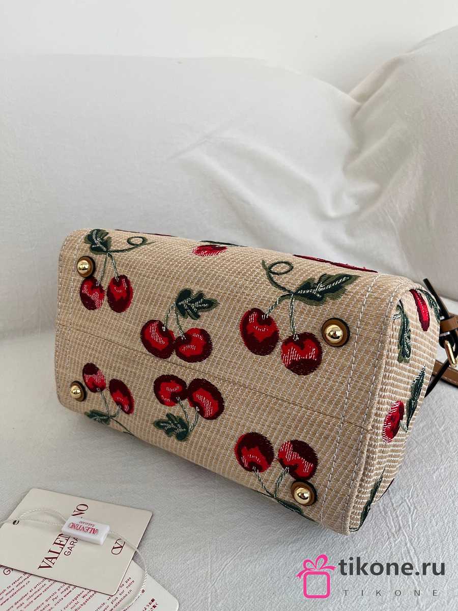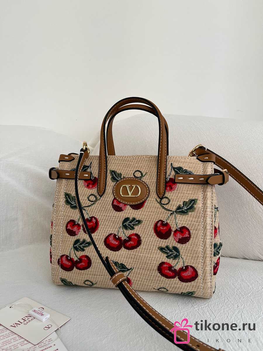 Valentino Garavani Antibes Small Shopping Bag In Jacquard Raffia With Cherryfic Pattern - 22x19x12cm