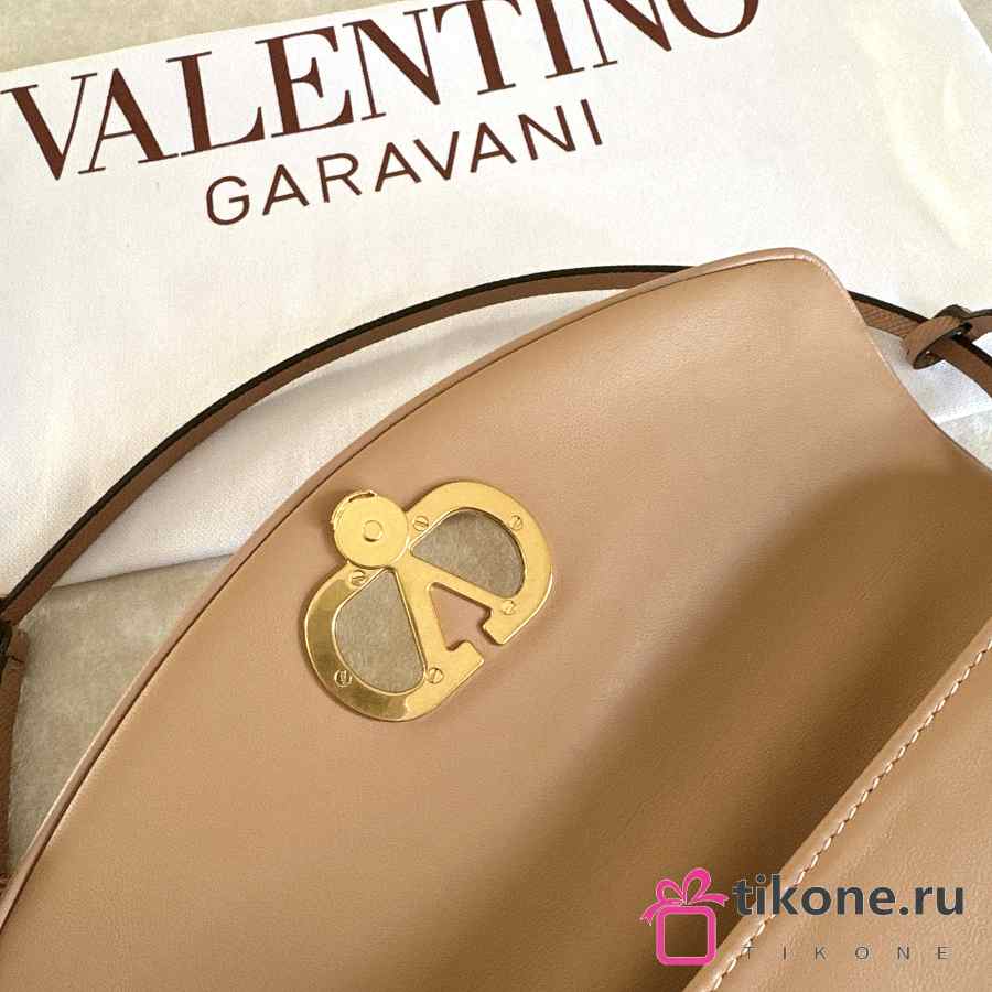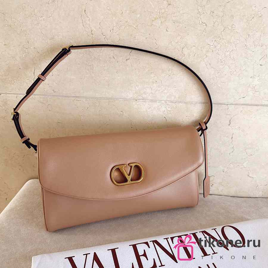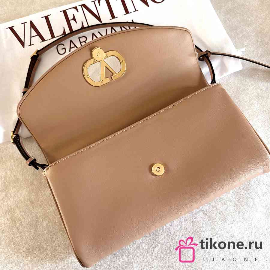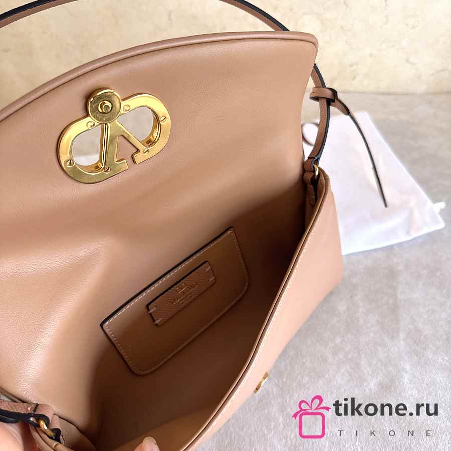 Valentino Garavani DeVain Small Nappa Shoulder Bag Rose Sand- 23.5x12x3cm