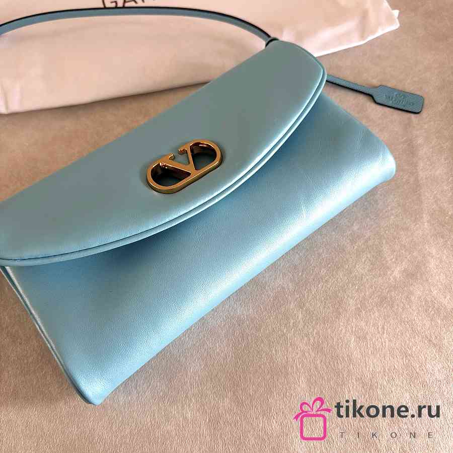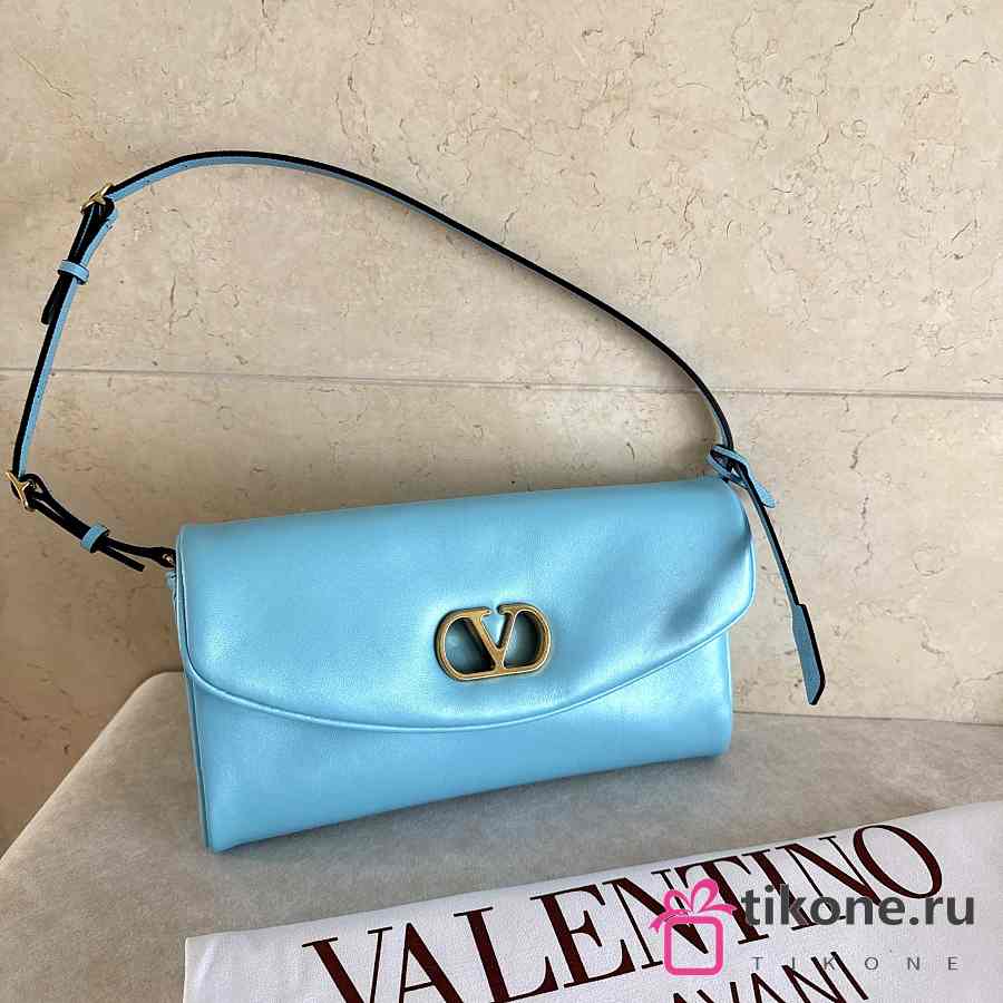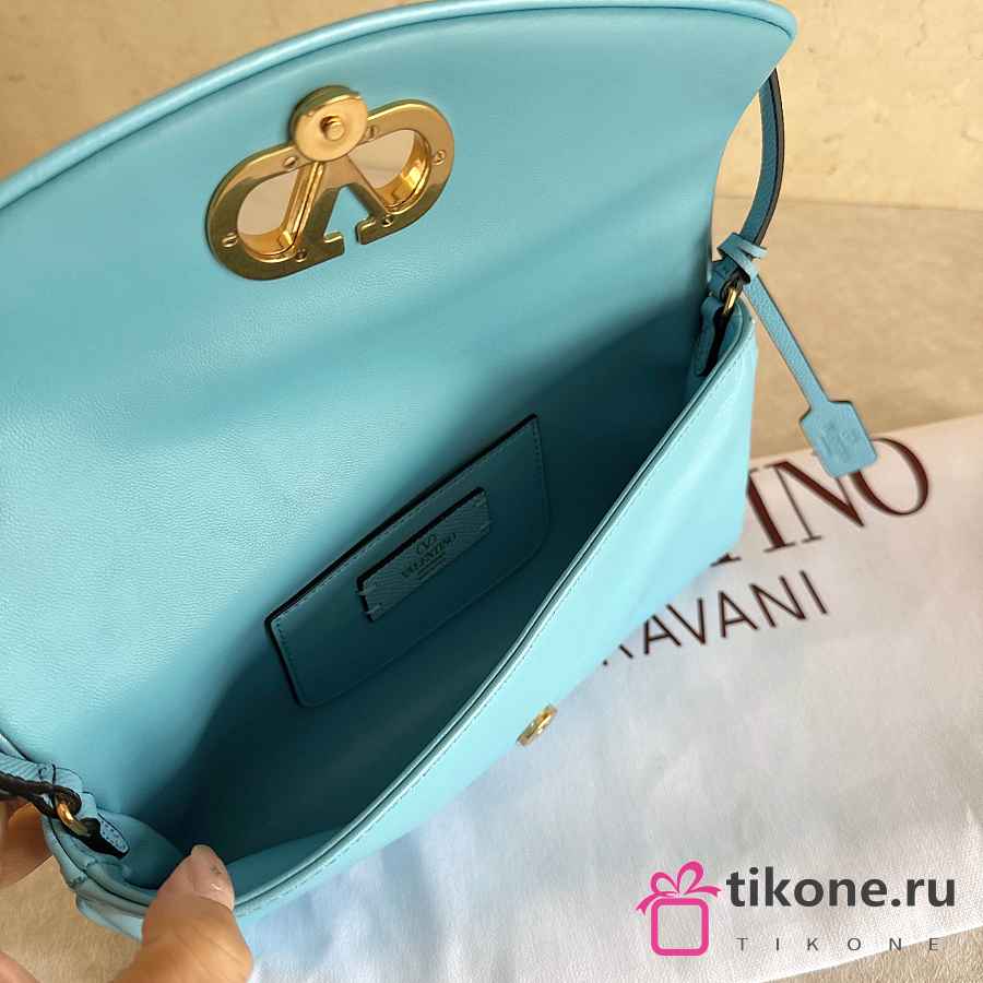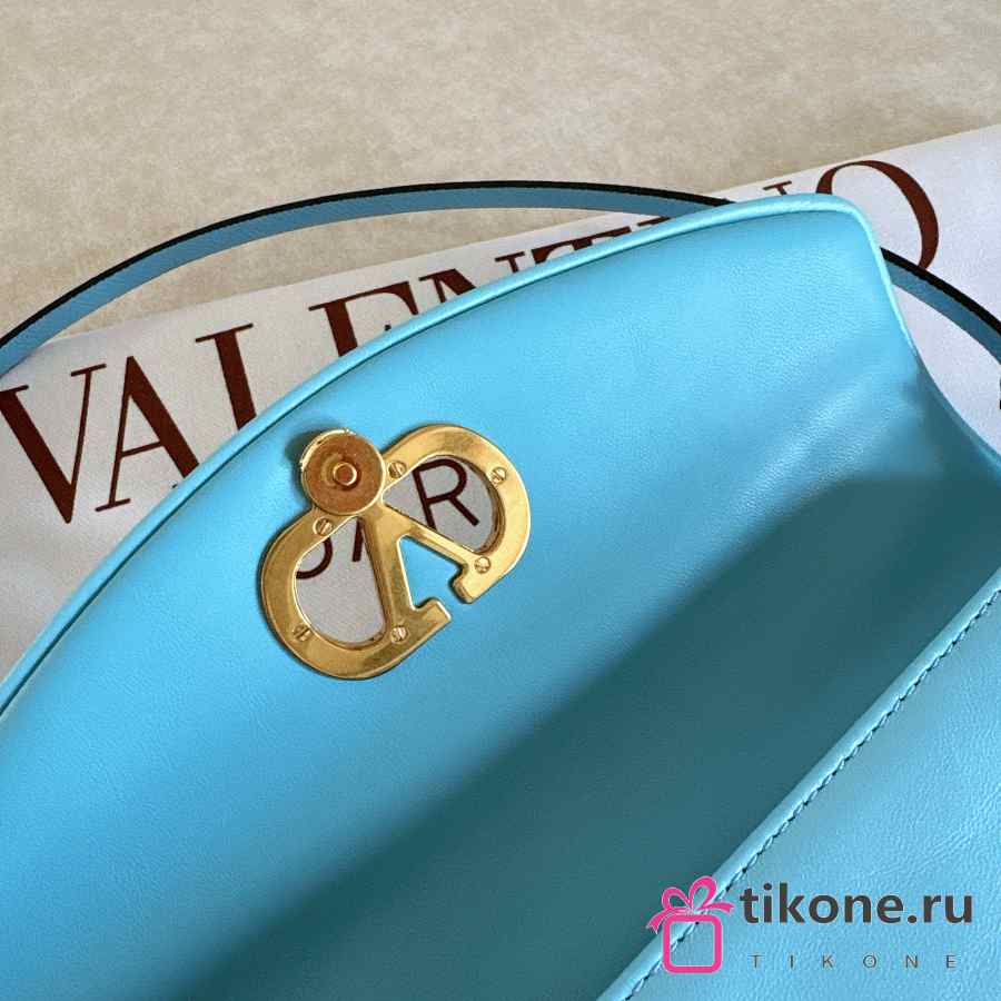Valentino Garavani DeVain Small Shoulder Bag in Laminated Nappa Leather Azure - 23.5x12x3cm